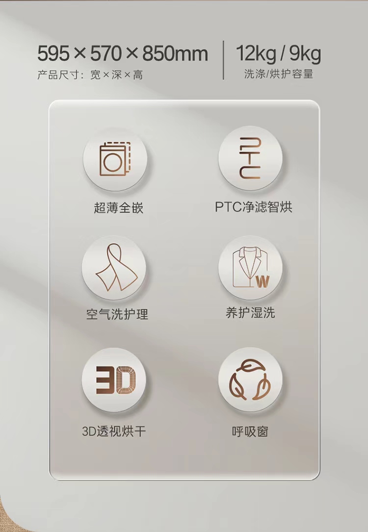 卡萨帝设计师PTC洗烘一体机12HA 超薄全嵌 低温柔烘养护