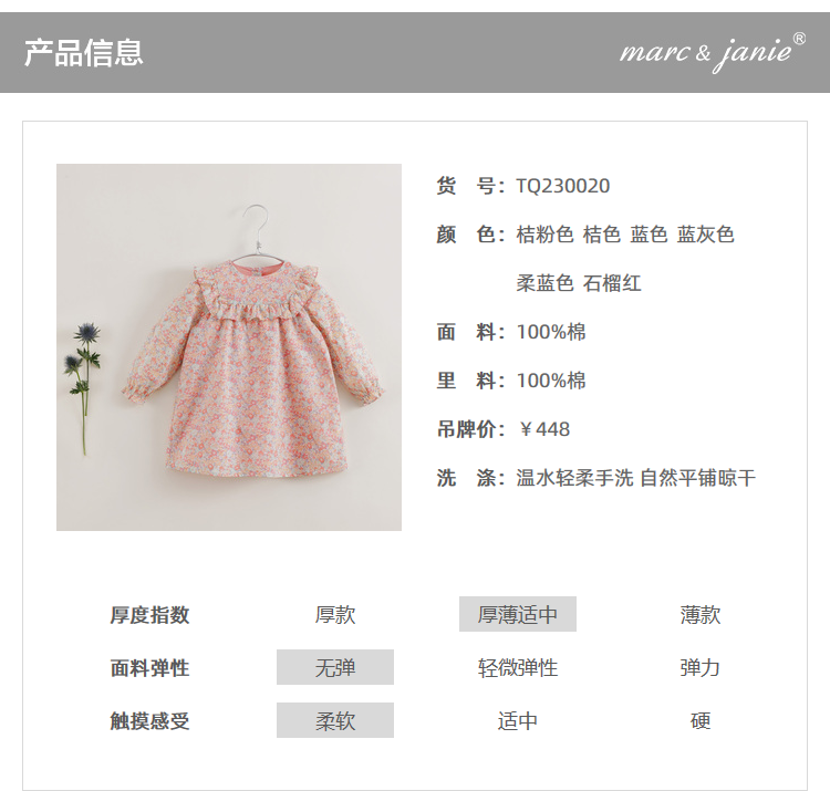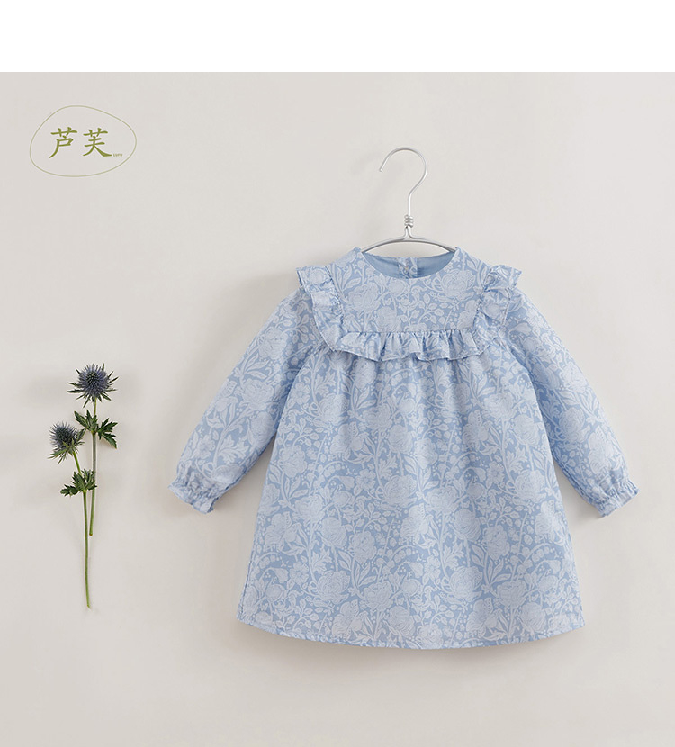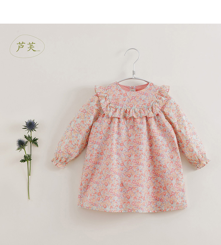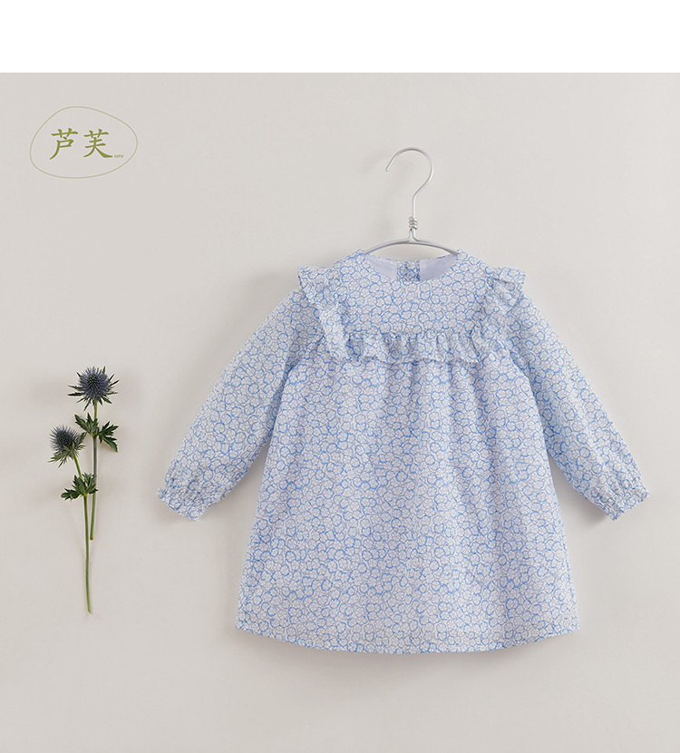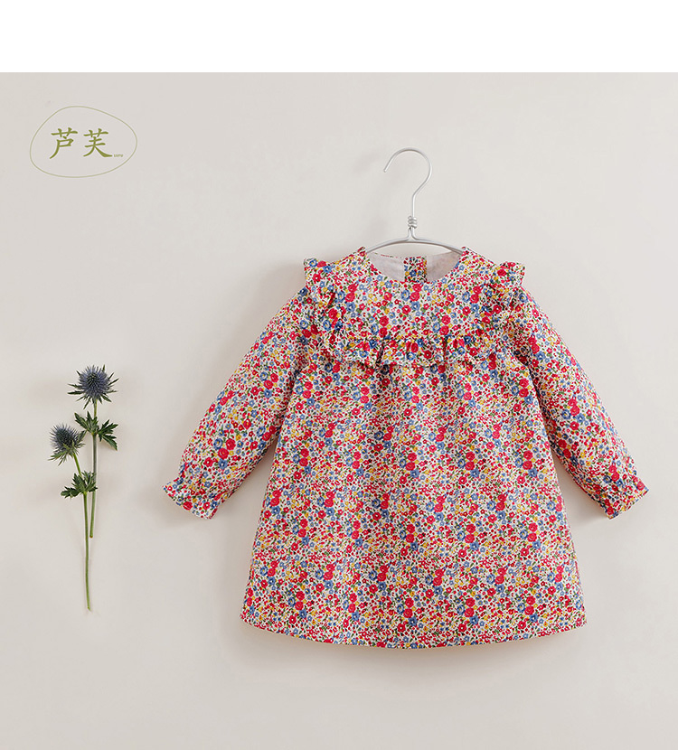 【马克珍妮 芦芙】春装新款 纯棉木耳边碎花连衣裙230020