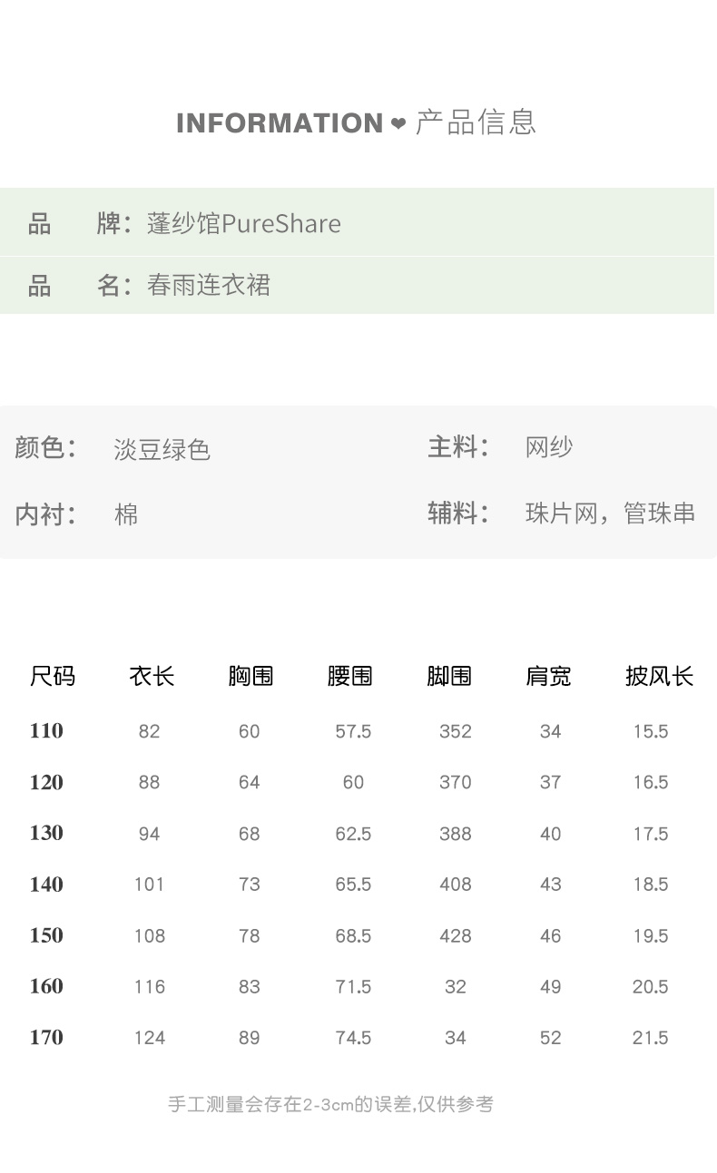 pureshare蓬纱馆 春雨连衣裙女童礼服裙夏季