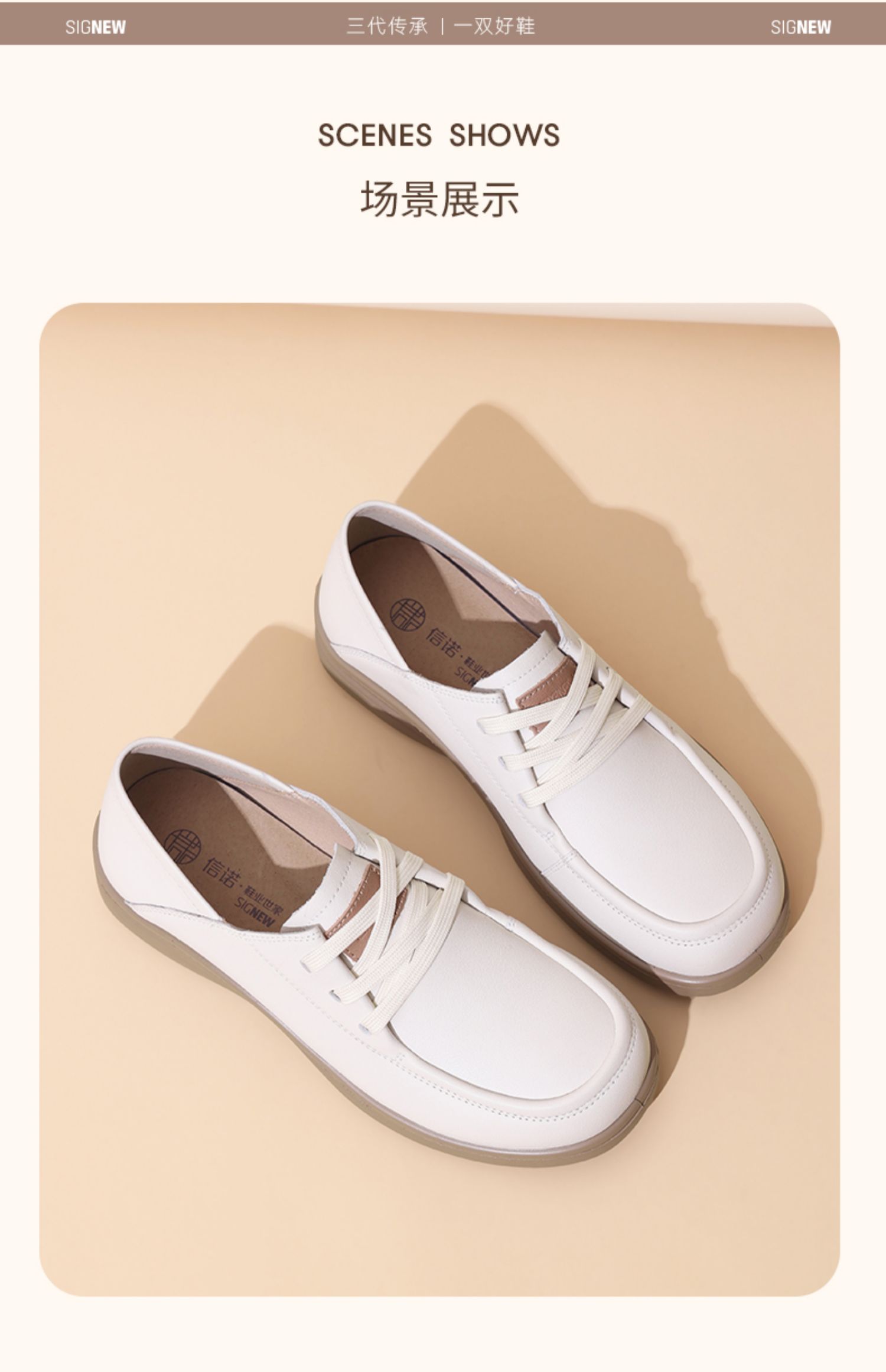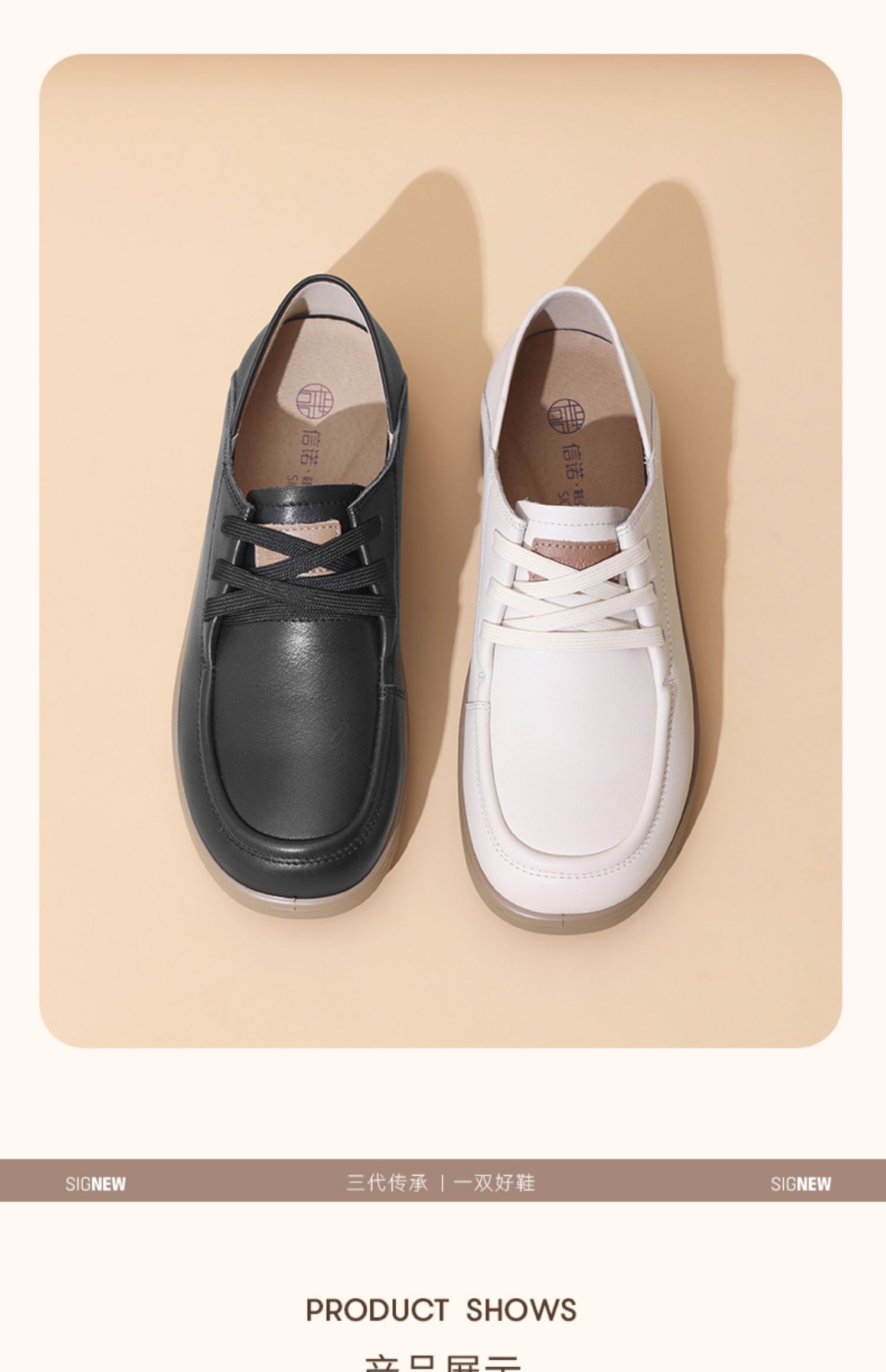 信诺真皮舒适女鞋2025春季新款英伦单鞋中老年软底妈妈鞋休闲皮鞋5C8166-9