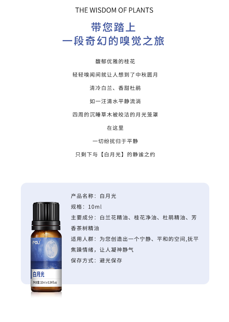 瑜伽冥想精油原料瑜伽空气清新香薰颇黎白月光精油瑜伽香薰天然精油