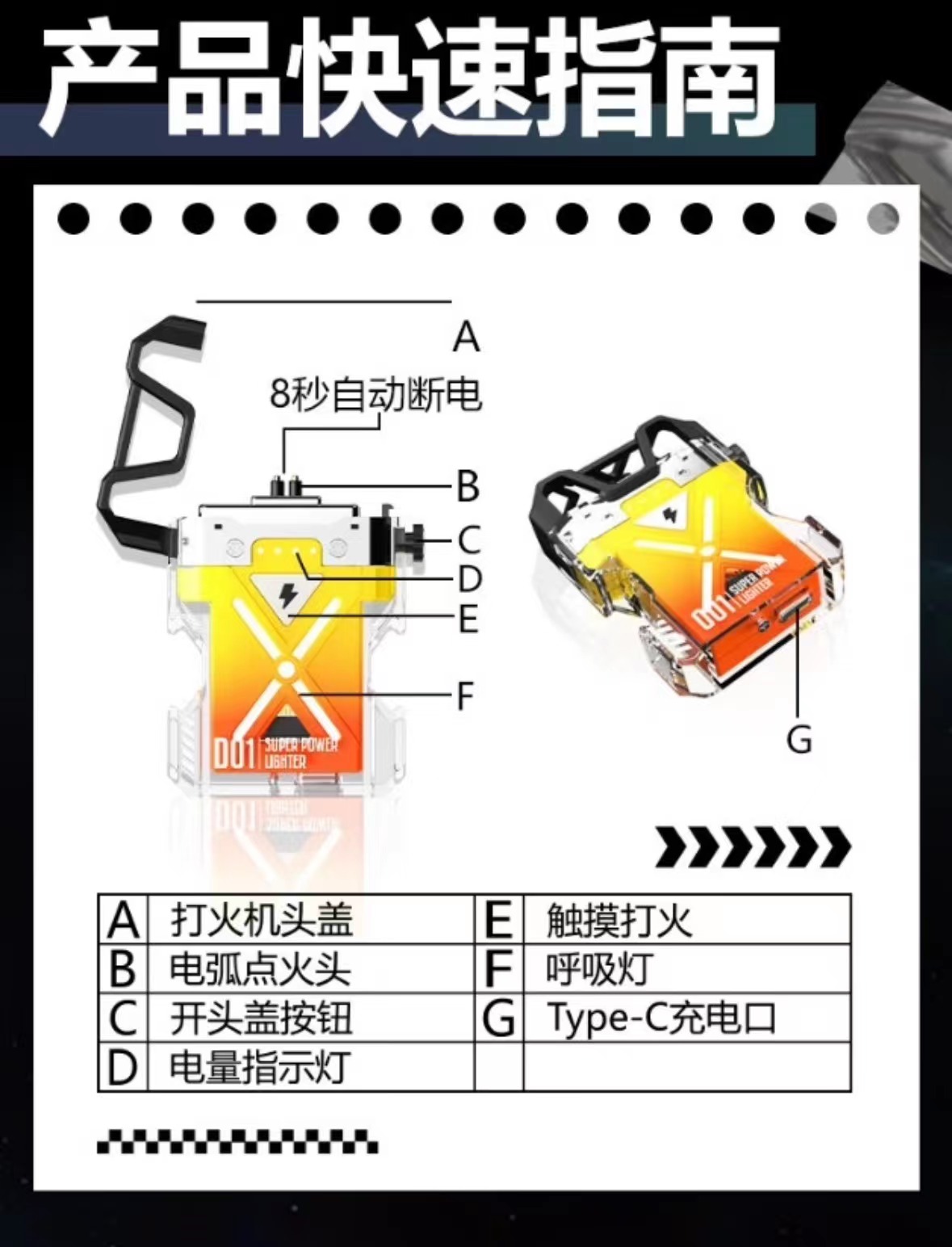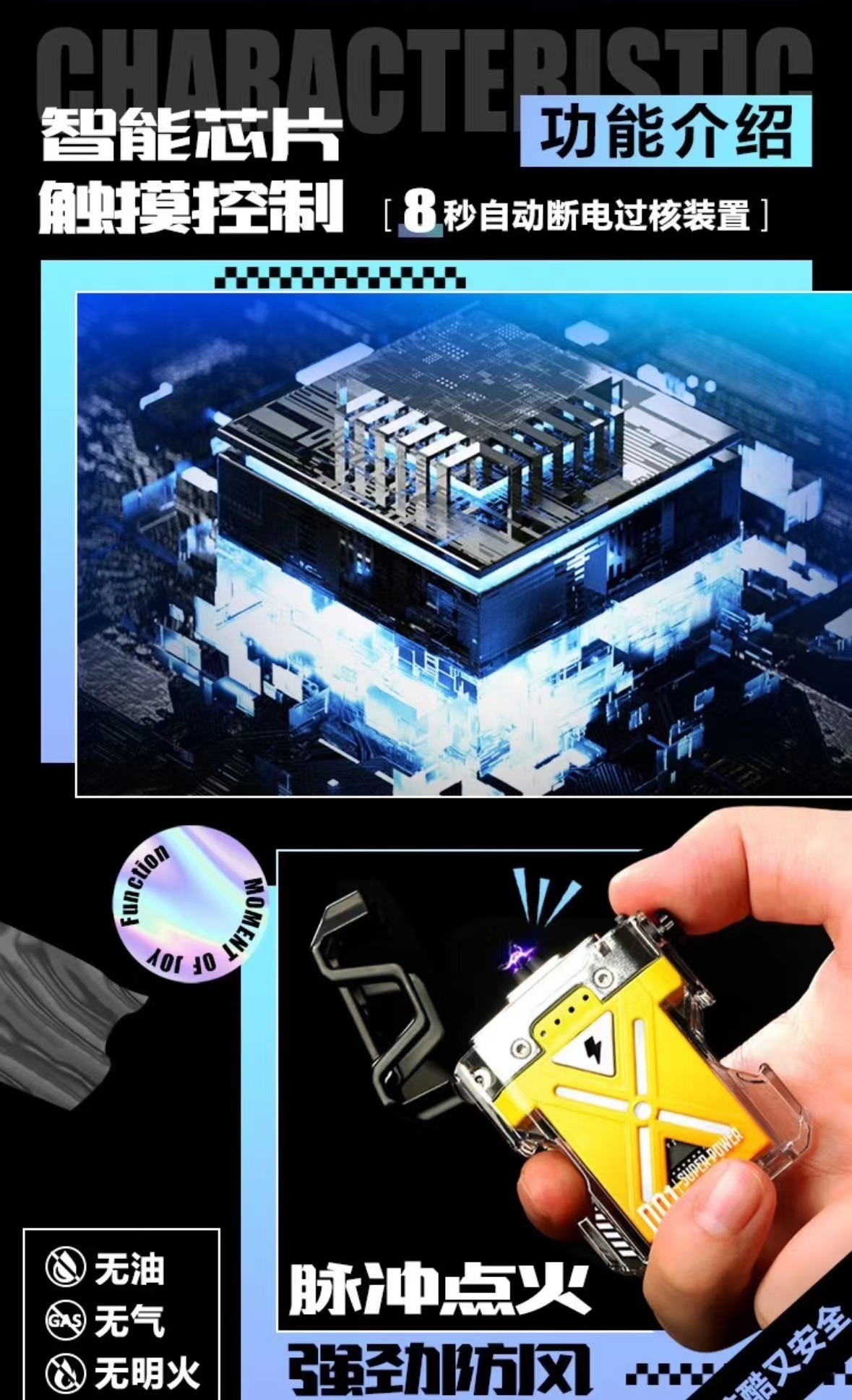 龙仕充电打火机 高档脉冲双电弧 防风打火机