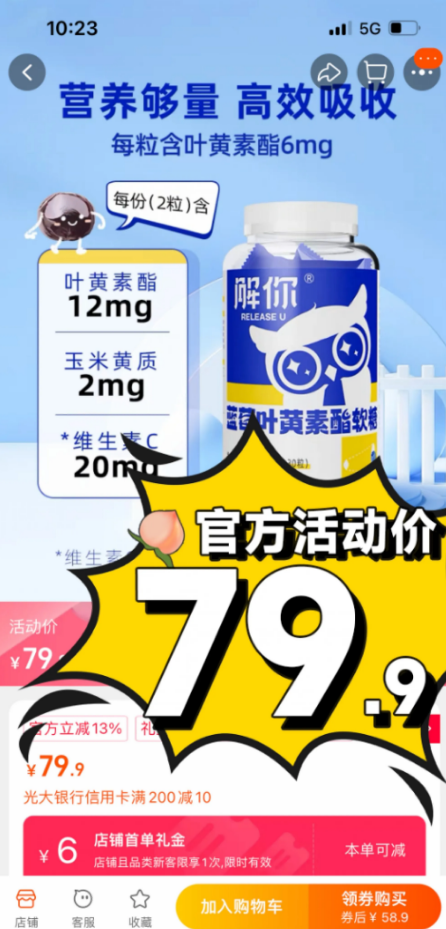 👉其他绝大多数品牌叶黄素酯只有2mg/粒,解你高达6mg/粒叶黄素酯
