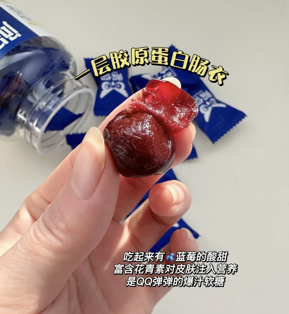 👉核心技术胶原蛋白肠衣,口感比一般的软糖更美味