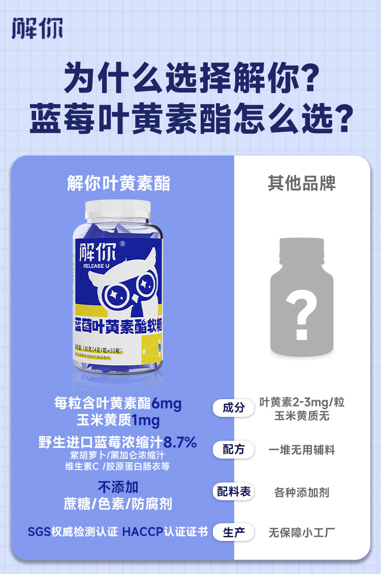 ✅与市面上大部分品牌相比,解你蓝莓叶黄素酯软糖性价比也超高