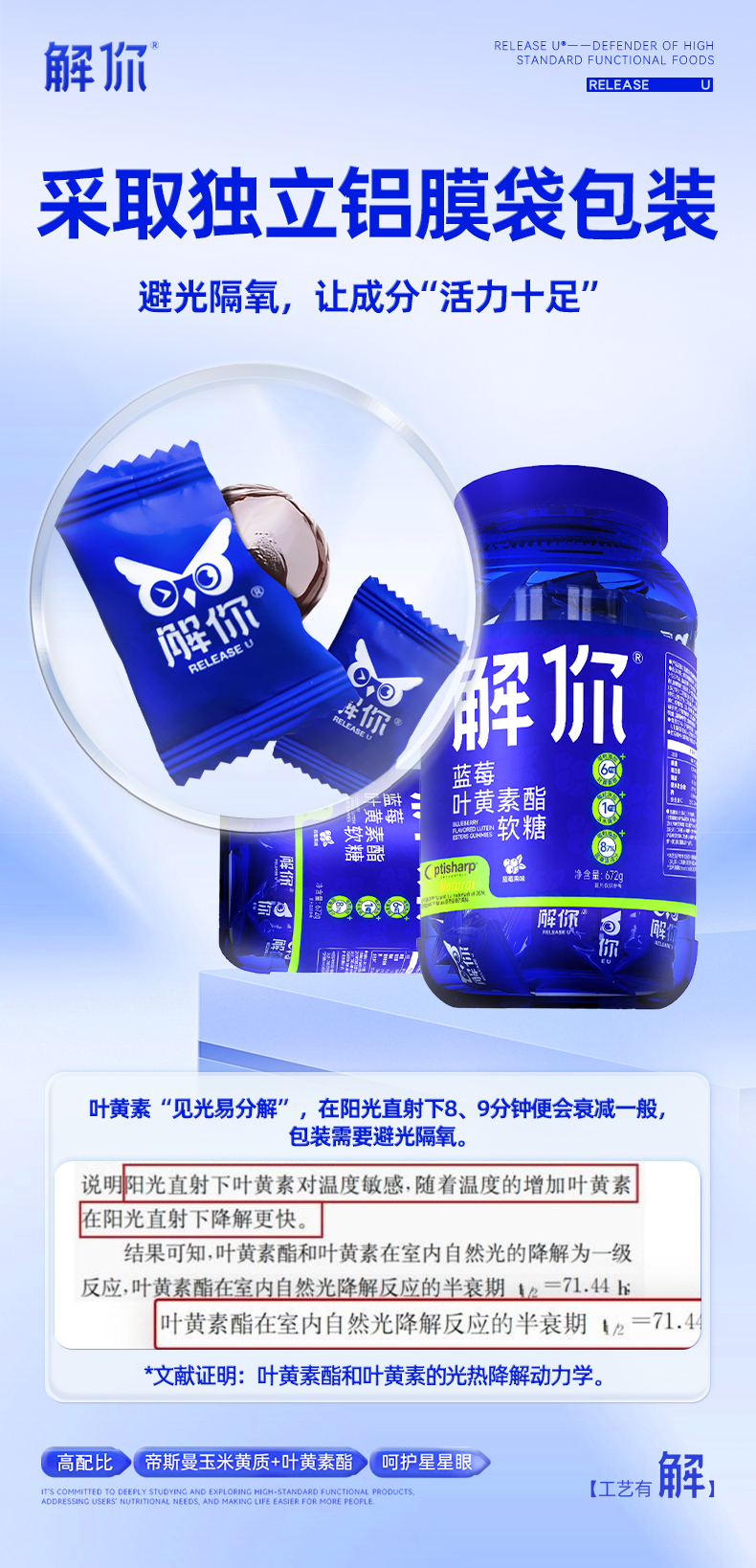 👉独立镀铝膜包装,隔绝光源,防止叶黄素分解,食用方便随时补充!