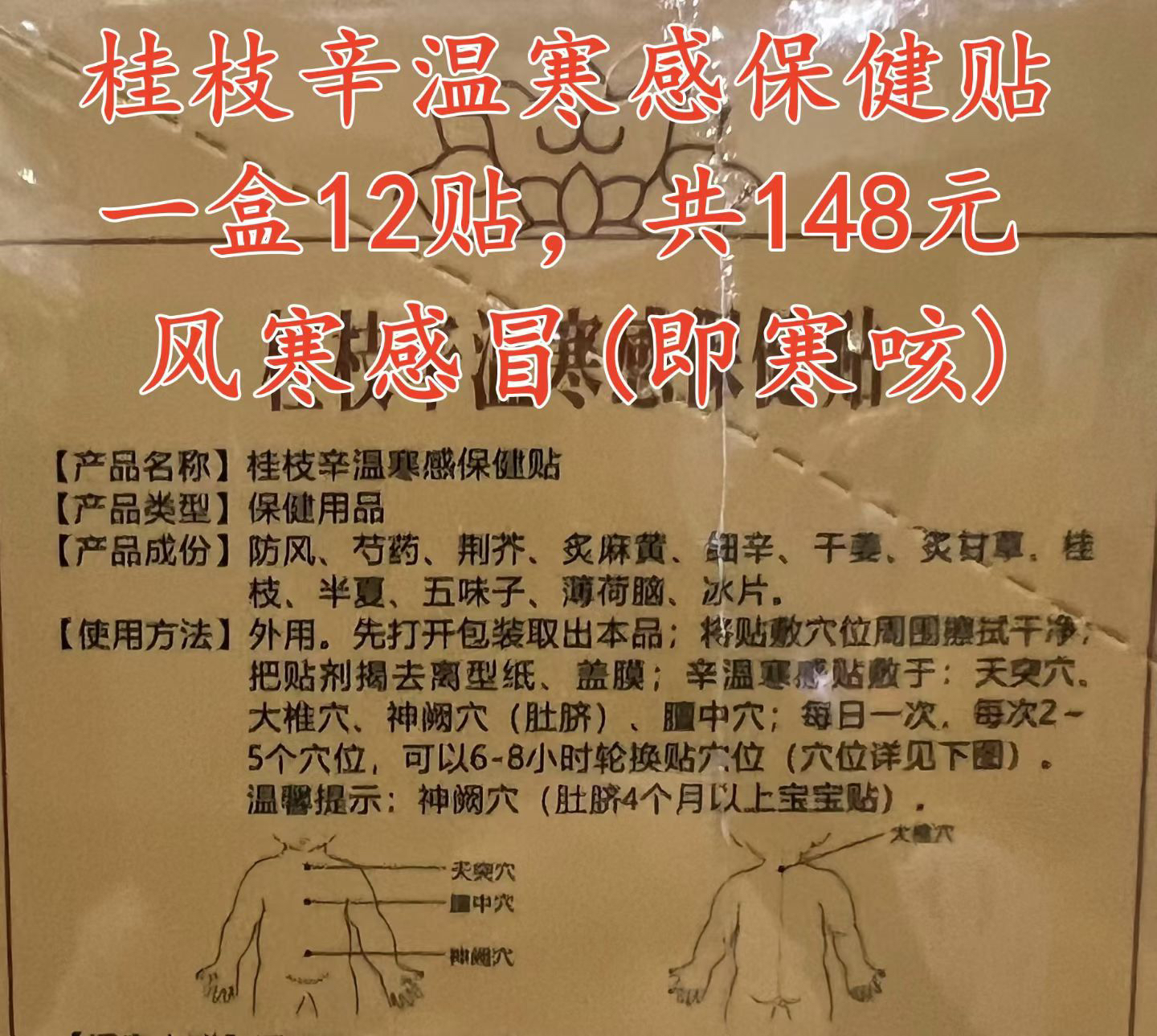 桂枝辛温寒感保健贴一盒12贴,共148元🌹