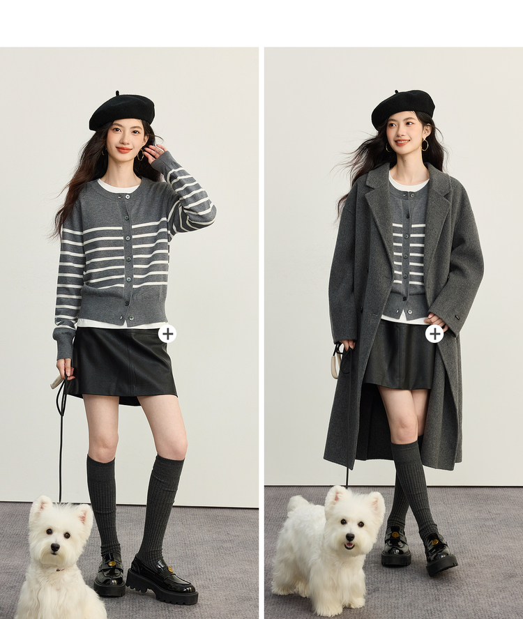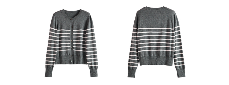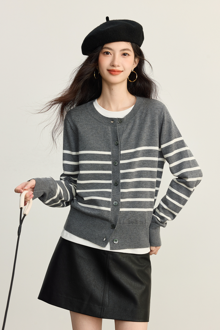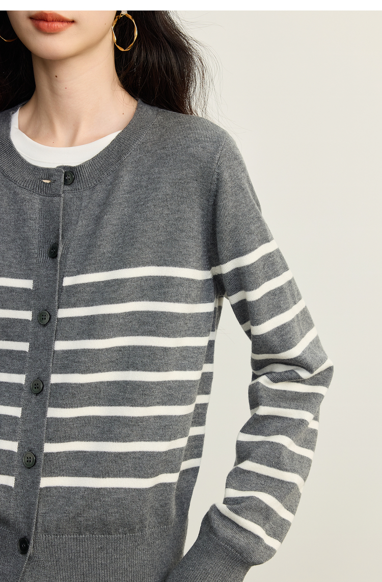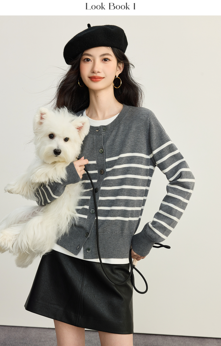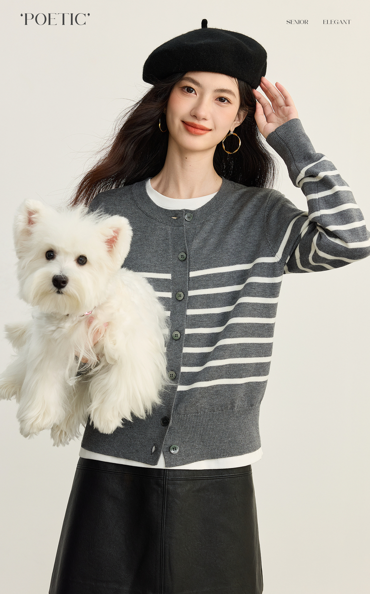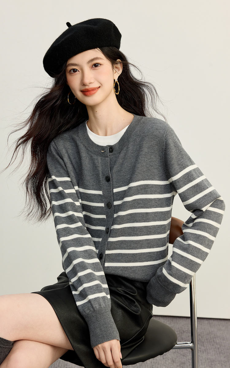【09/26新品】熙世界经典复古miu系条纹毛衣女2025秋冬款圆领长袖软糯针织开衫
