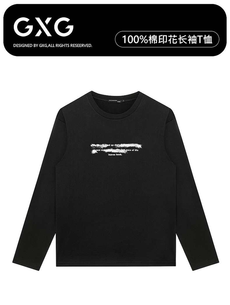 GXG男装【100%棉】25秋季时尚创意虚化字母圆领休闲男式长袖T恤K&C