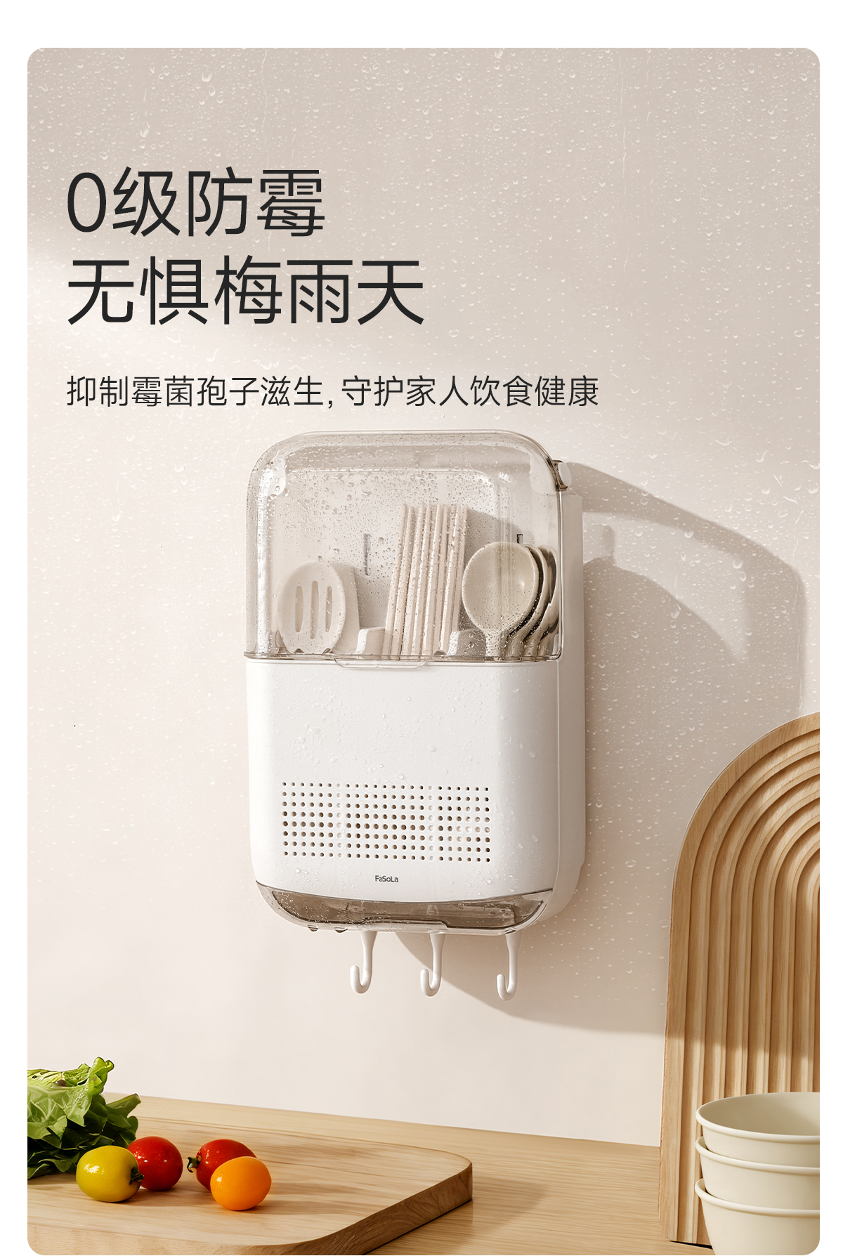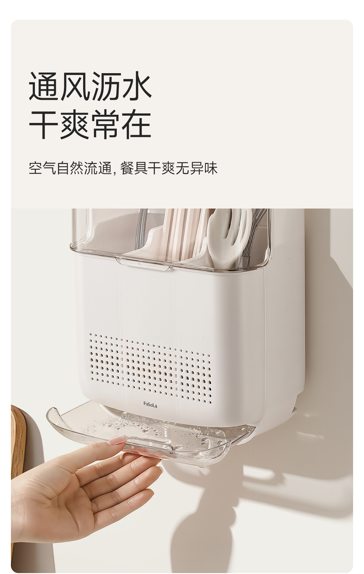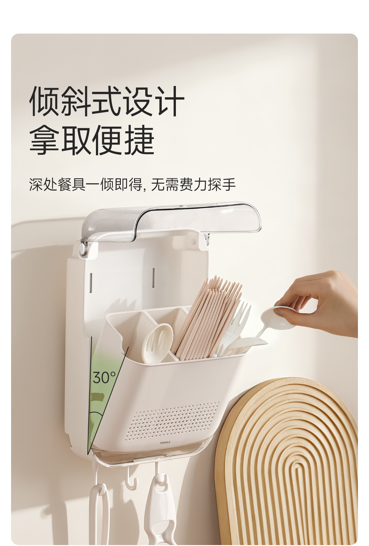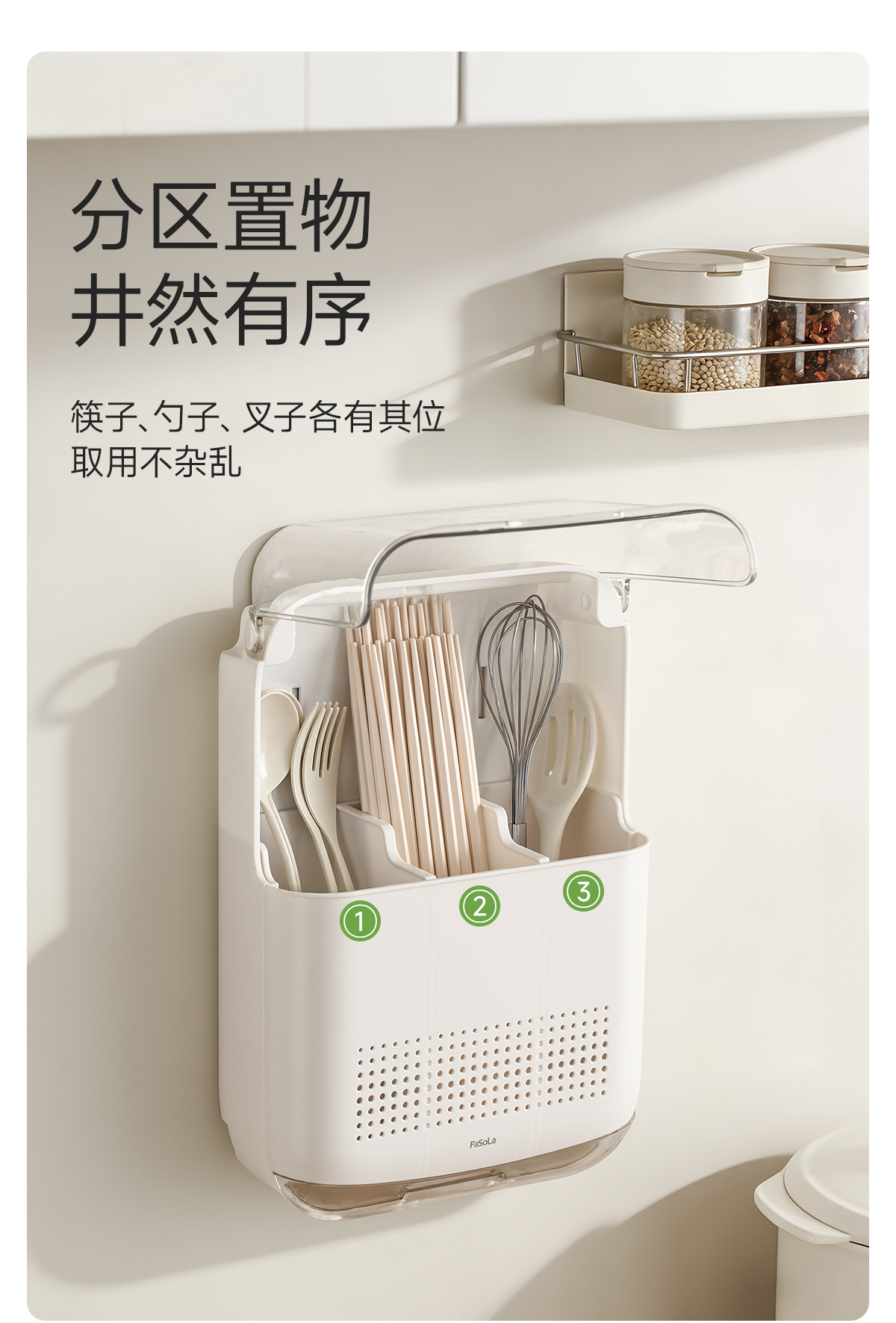 FaSoLa筷子收纳盒免打孔厨房置物架勺子餐具筒挂墙式沥水置物架