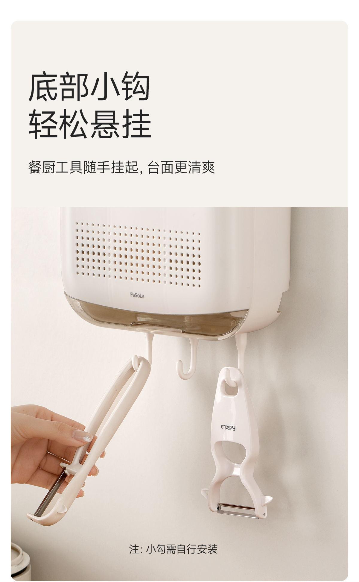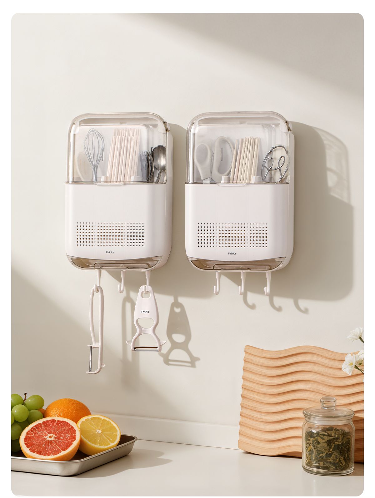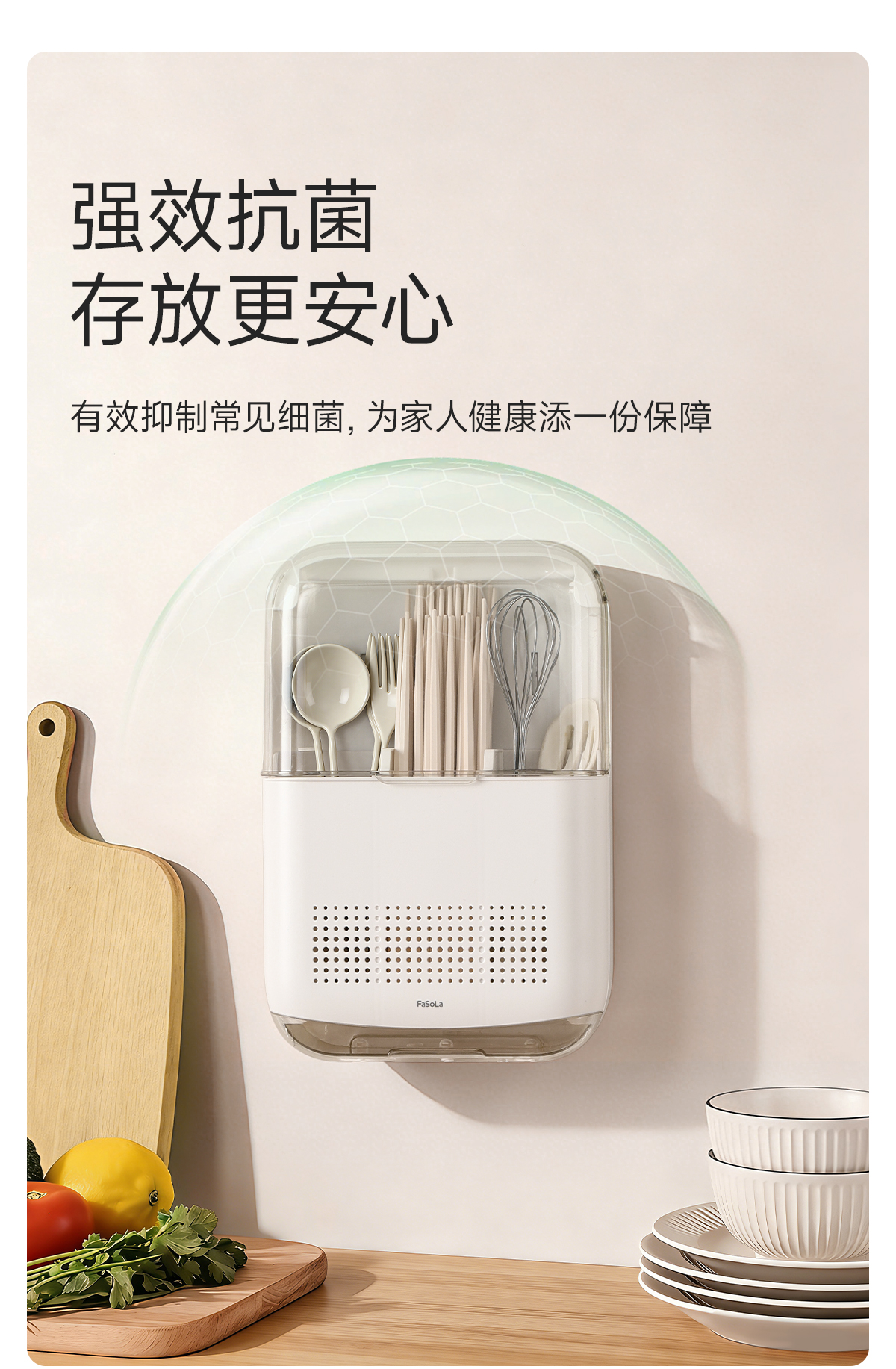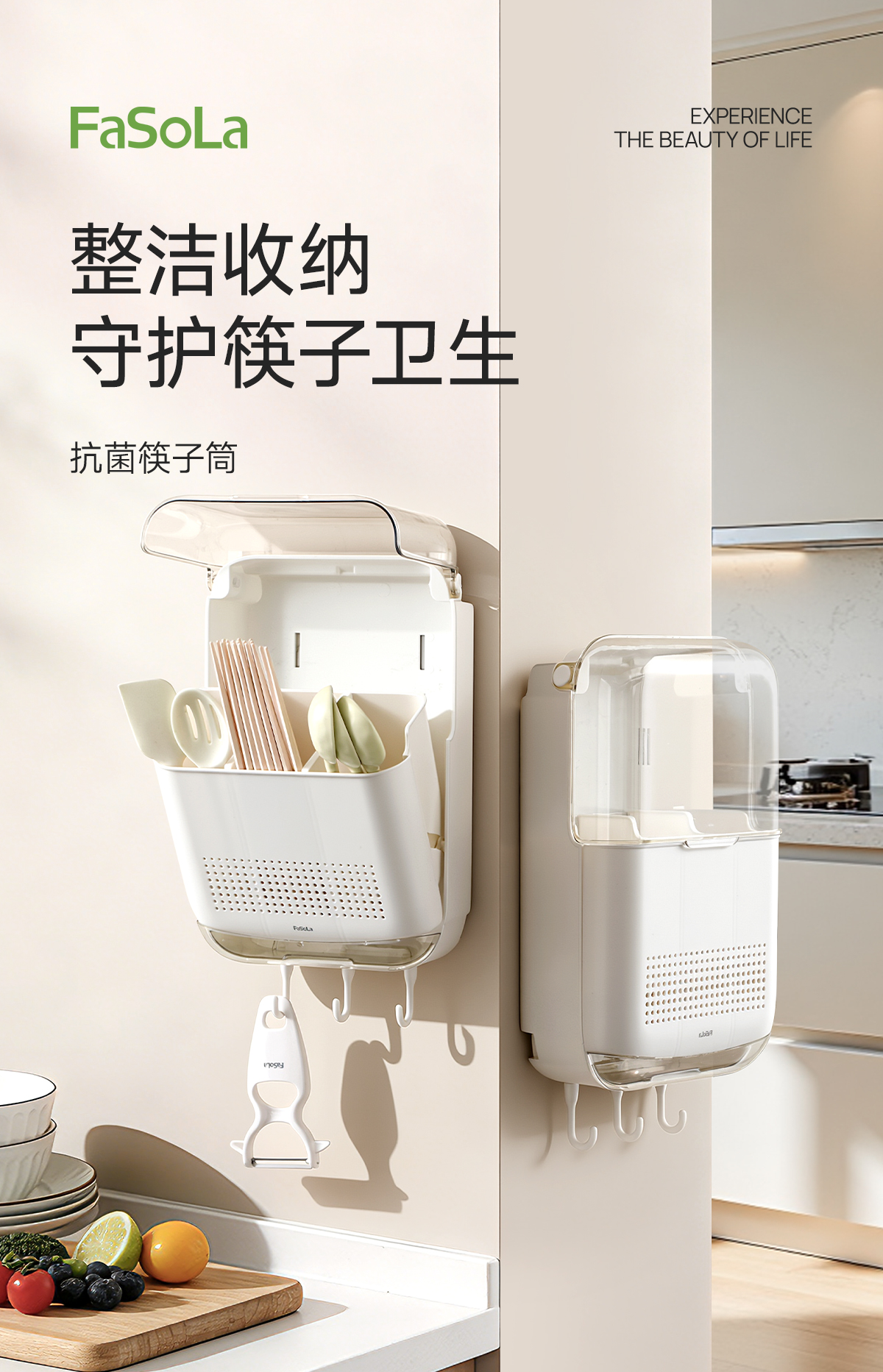 FaSoLa筷子收纳盒免打孔厨房置物架勺子餐具筒挂墙式沥水置物架