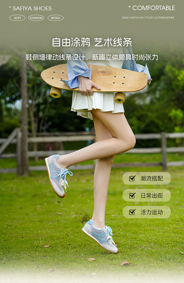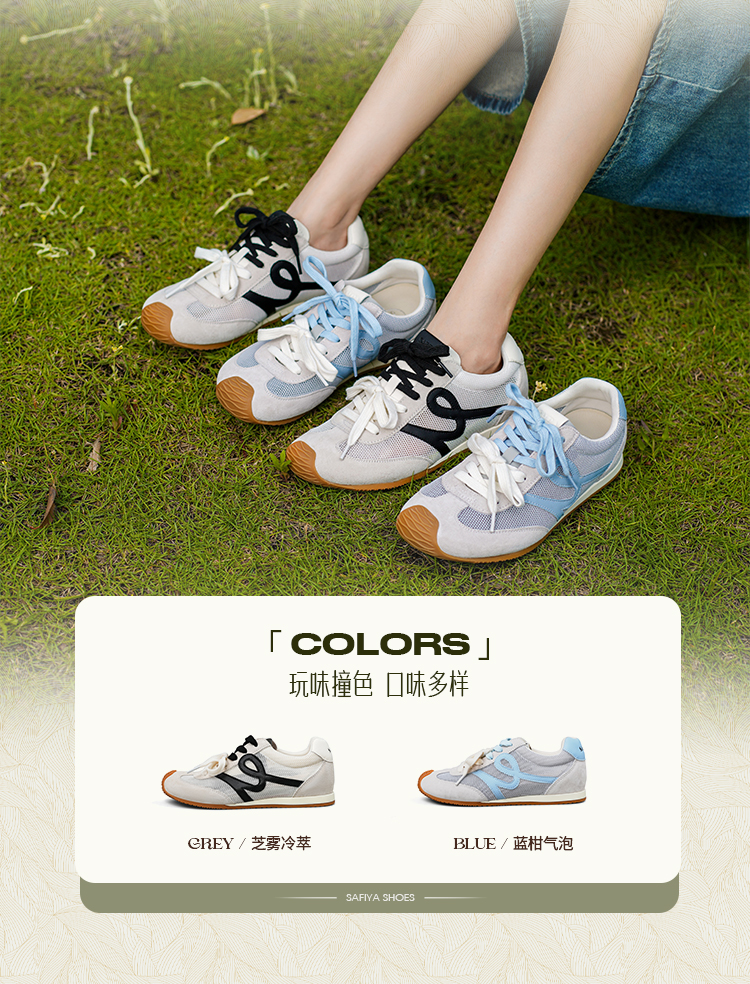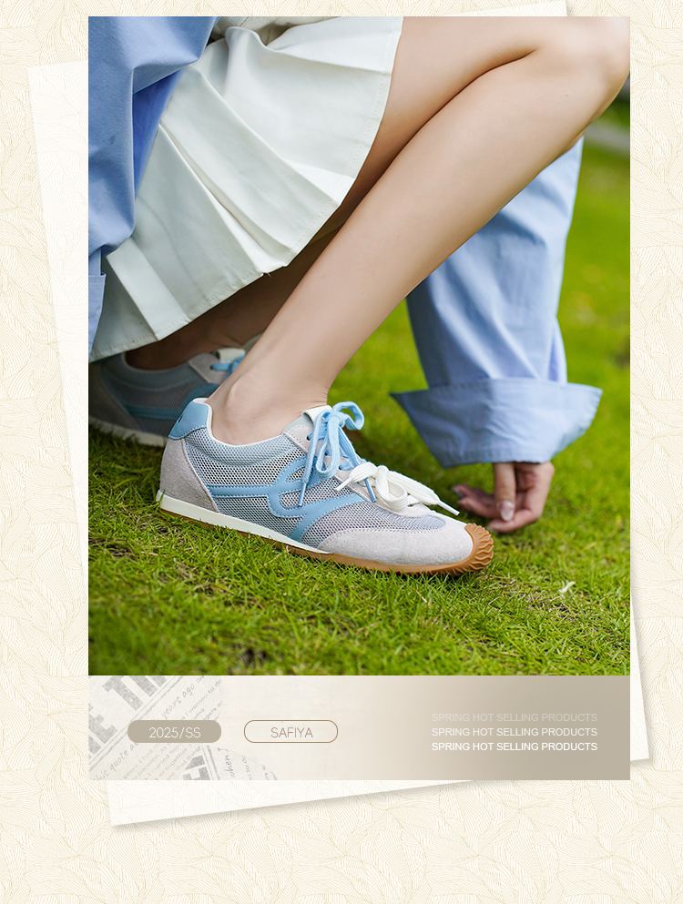 预售7天发|Safiya/索菲娅2025爆火双系带网面透气休闲轻便薄底丑萌阿甘鞋SFD3112429