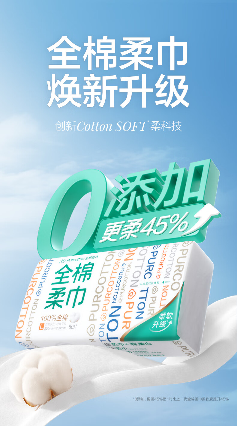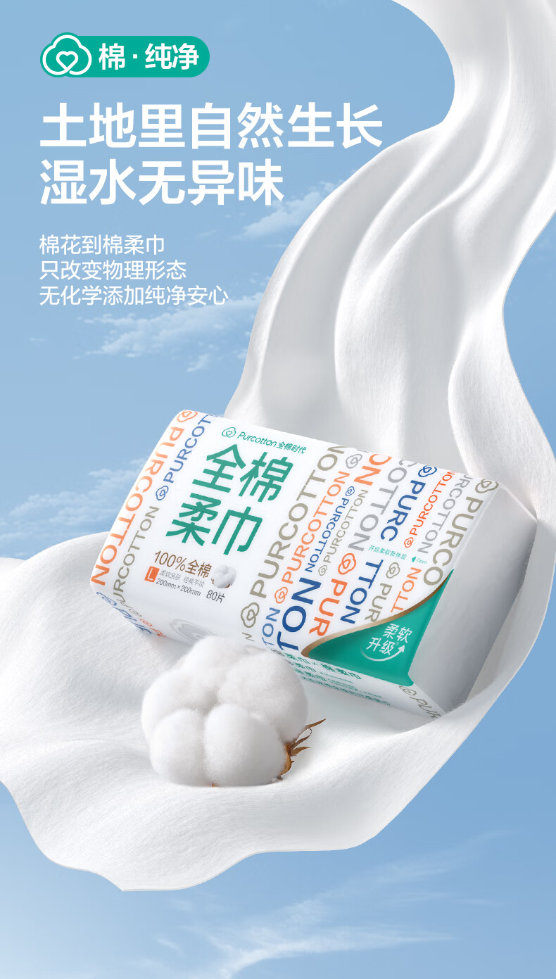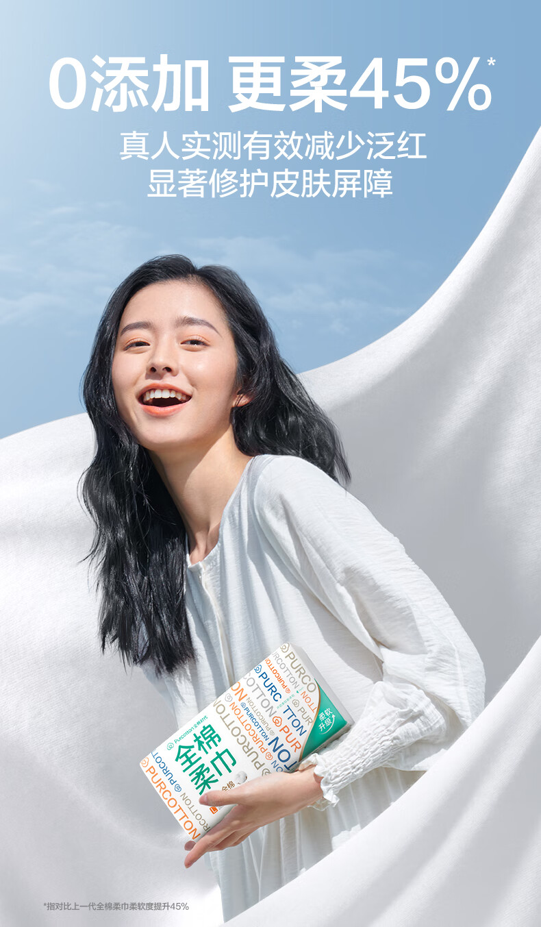 【秒杀】全棉时代棉柔巾100%棉20*20CM 80抽*6包/提