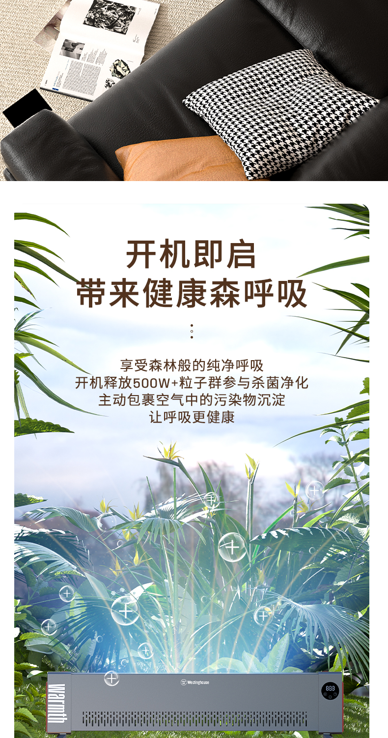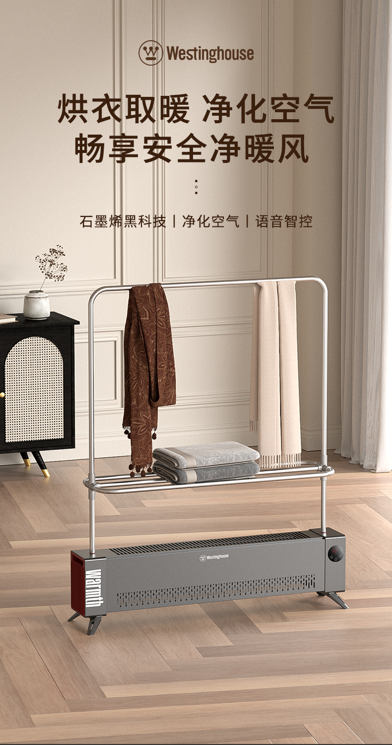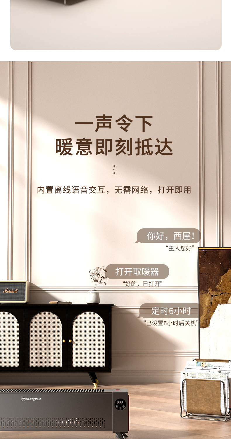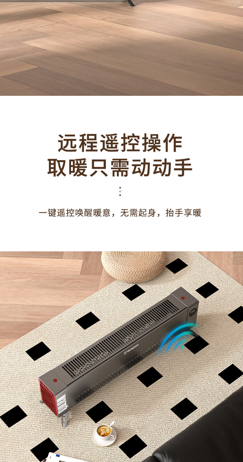 西屋(Westinghouse)石墨烯踢脚线取暖器家用电暖器浴室防水移动地暖气片大面积取暖神器全屋升温卧室语音节能地暖客厅 WTH-S678Pro