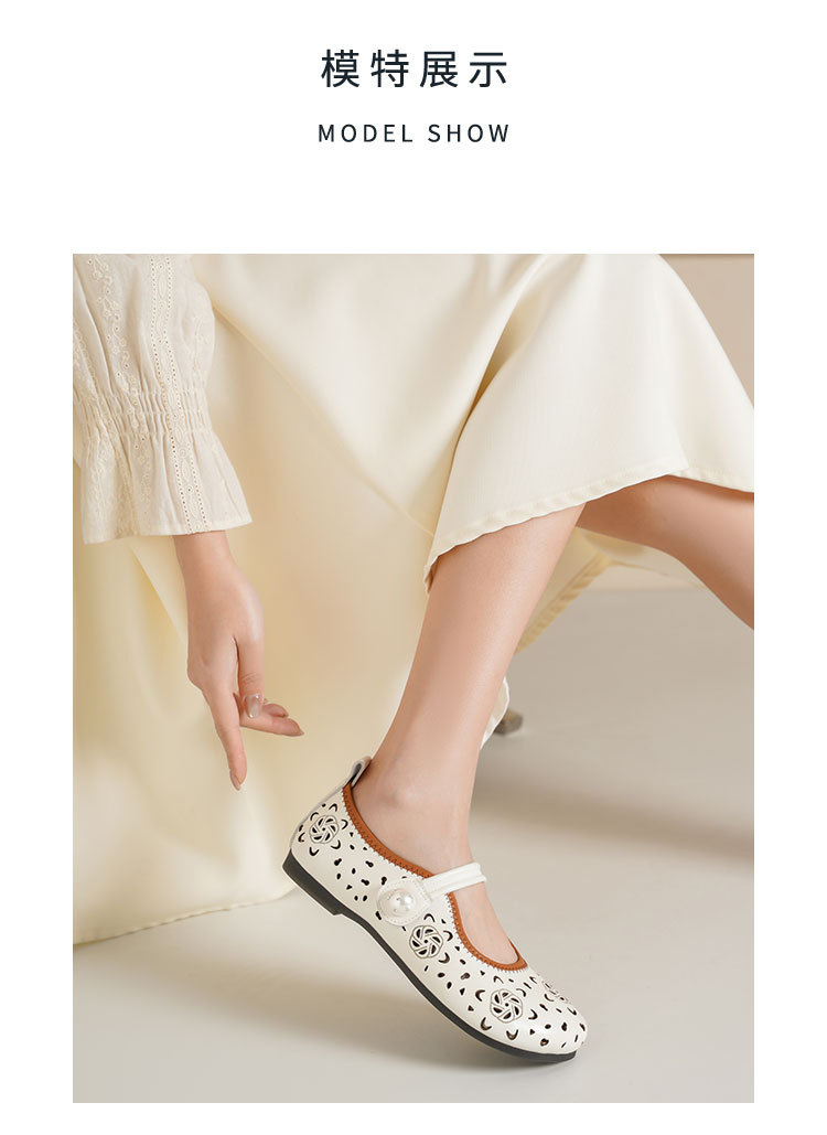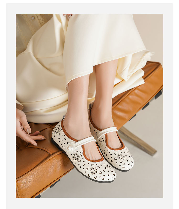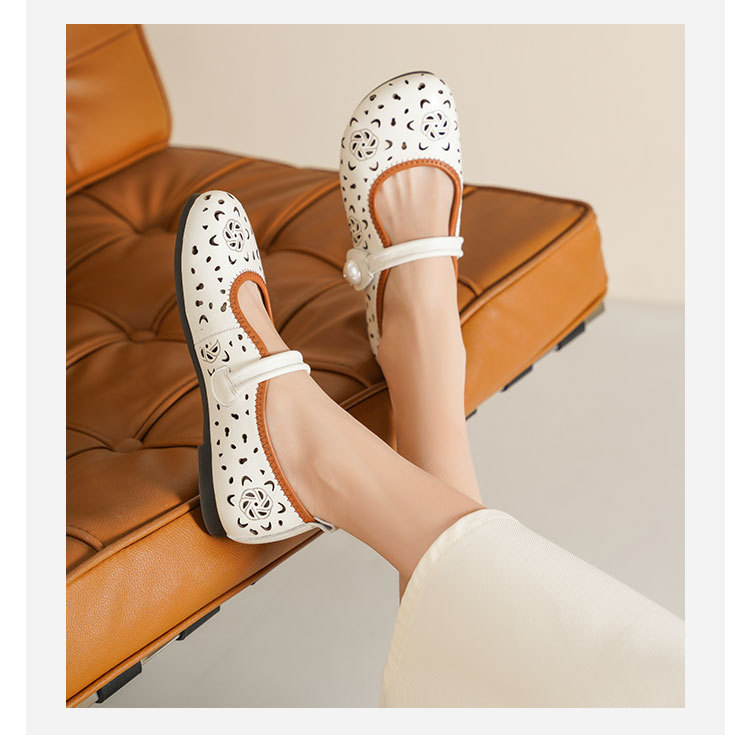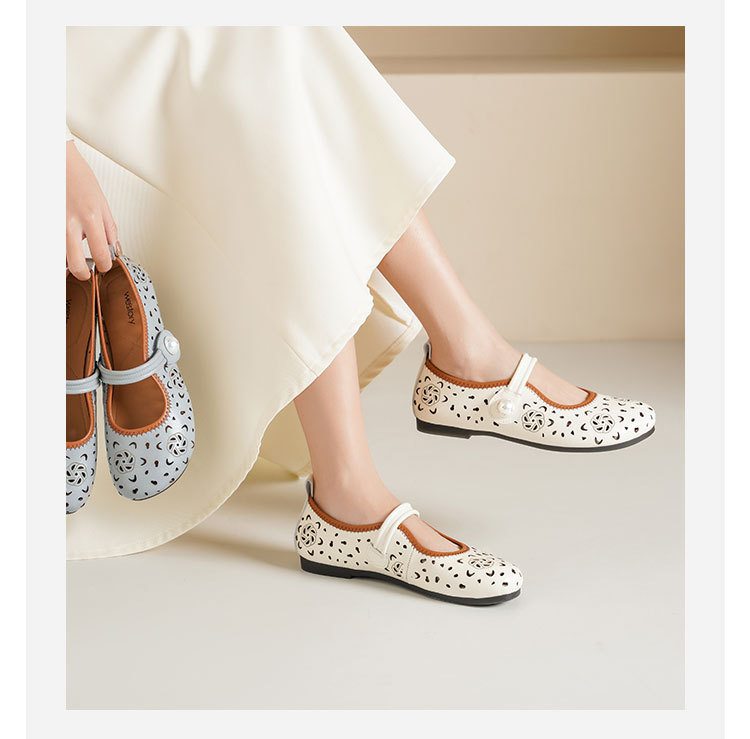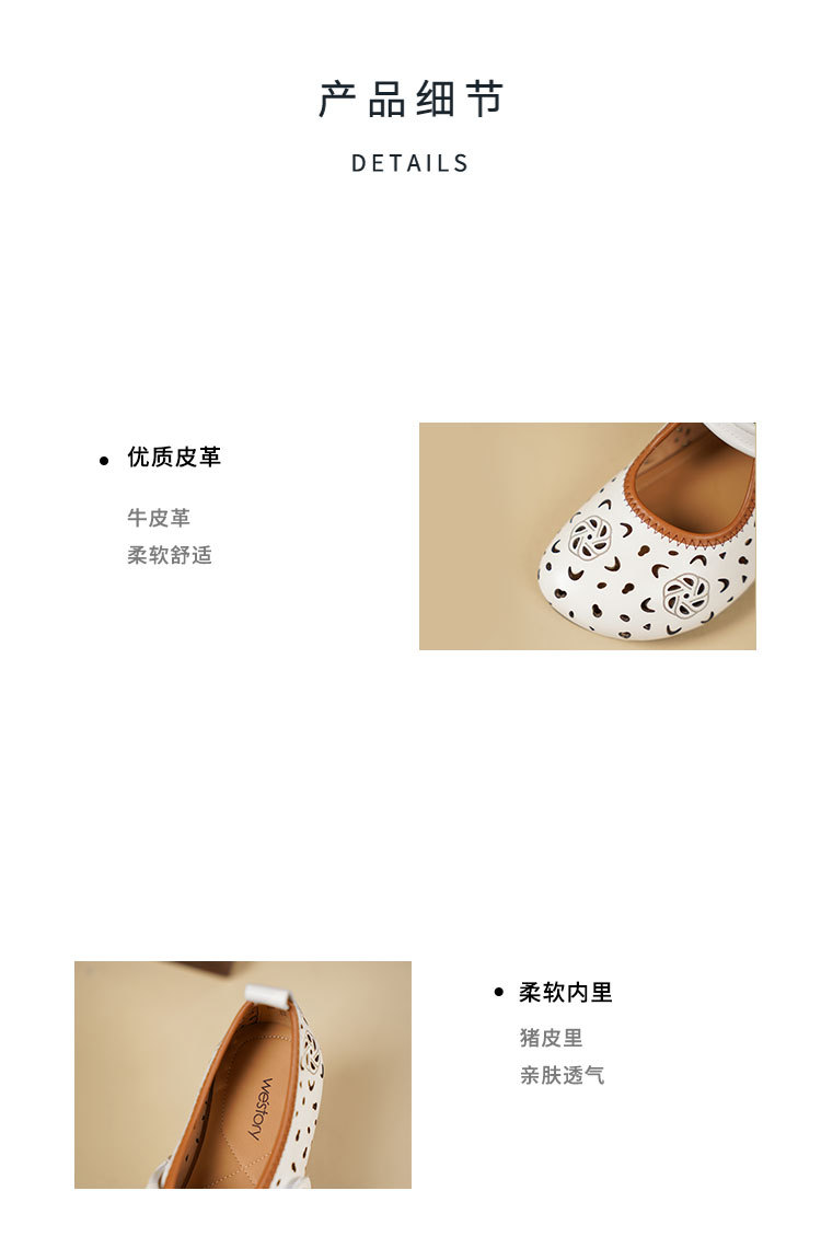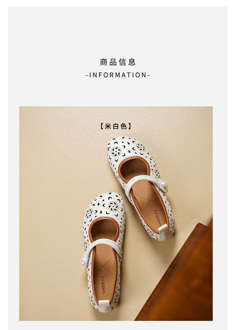 Westory2025年春季牛皮雕花镂空圆头平跟软底玛丽珍浅口单鞋S25AH58991