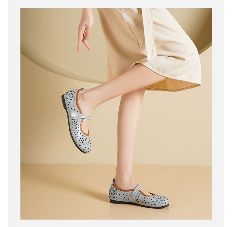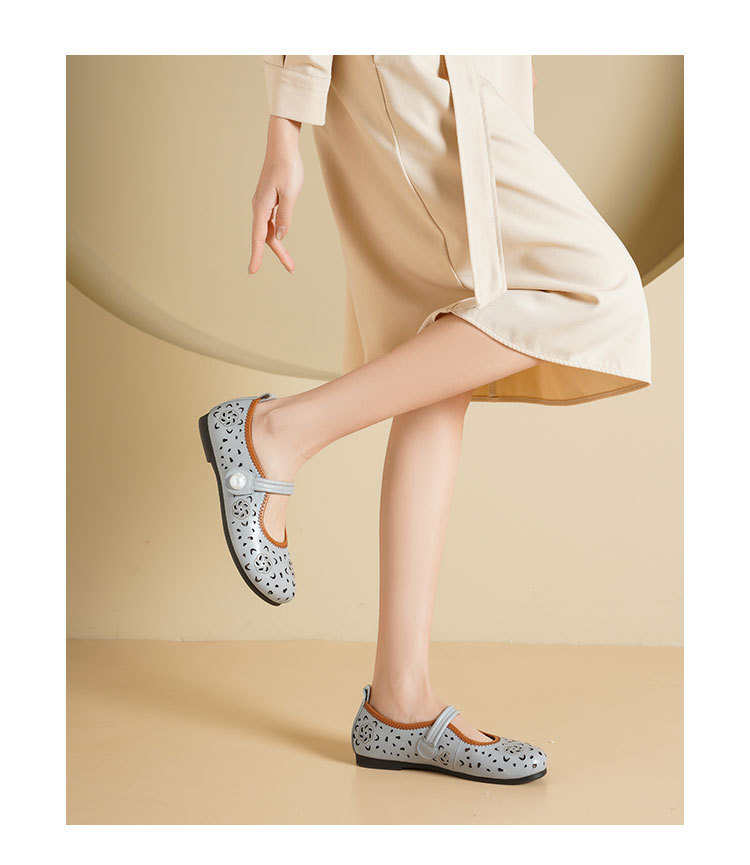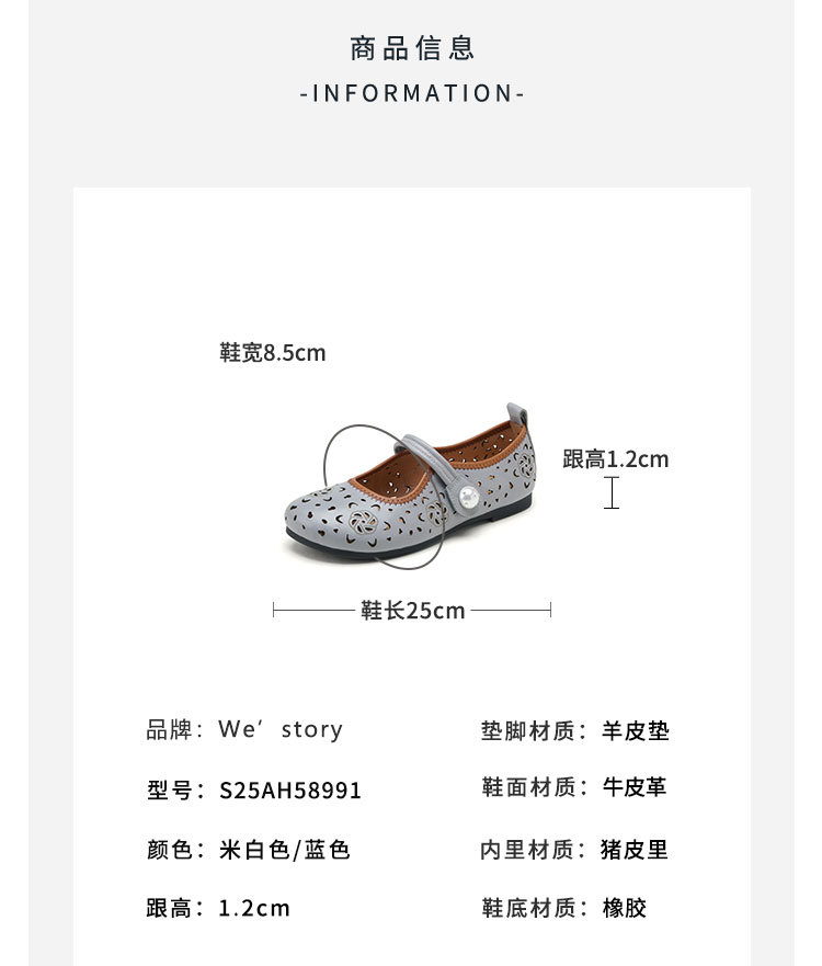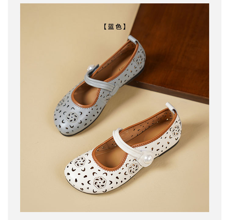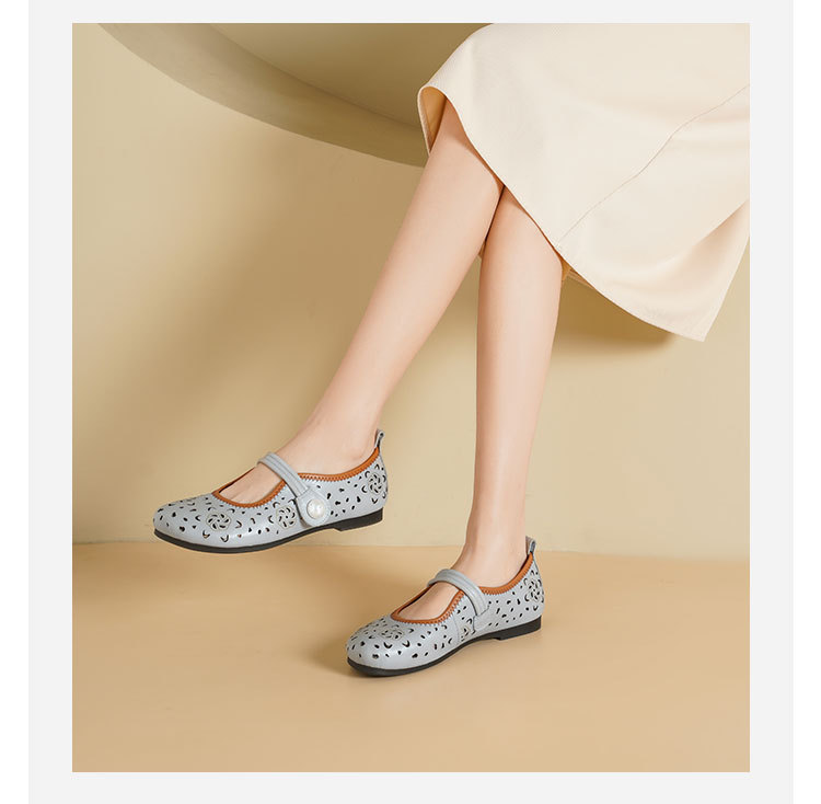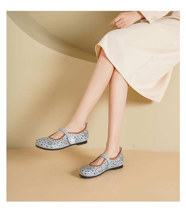 Westory2025年春季牛皮雕花镂空圆头平跟软底玛丽珍浅口单鞋S25AH58991