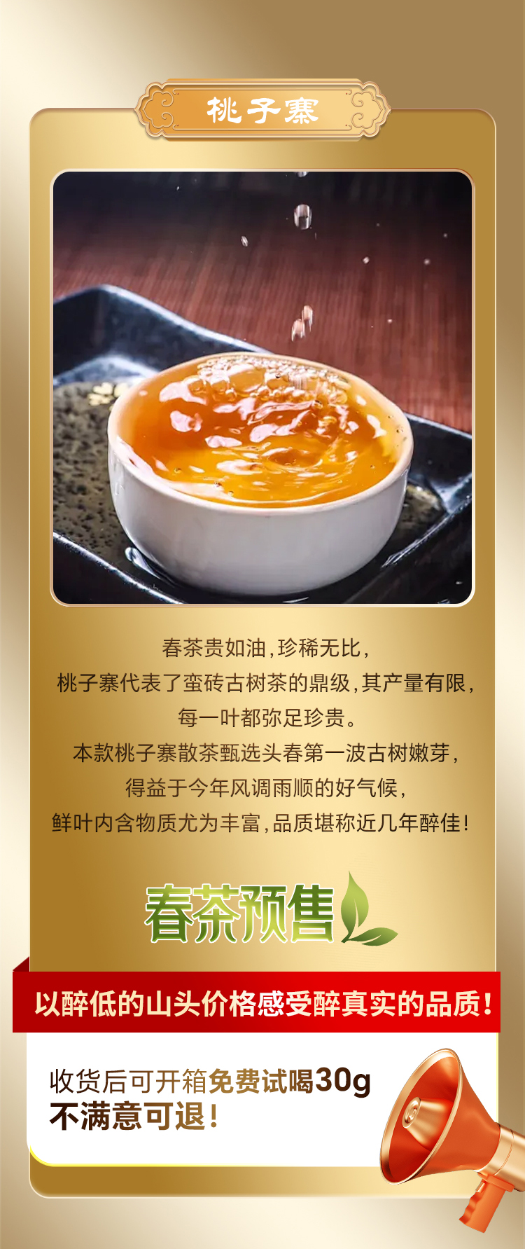 【桃子寨散茶】 浓郁果桃香 鲜爽花蜜甜 2024年春茶普洱茶生茶蛮砖桃子寨古500纯料250g散茶 实木木箱装