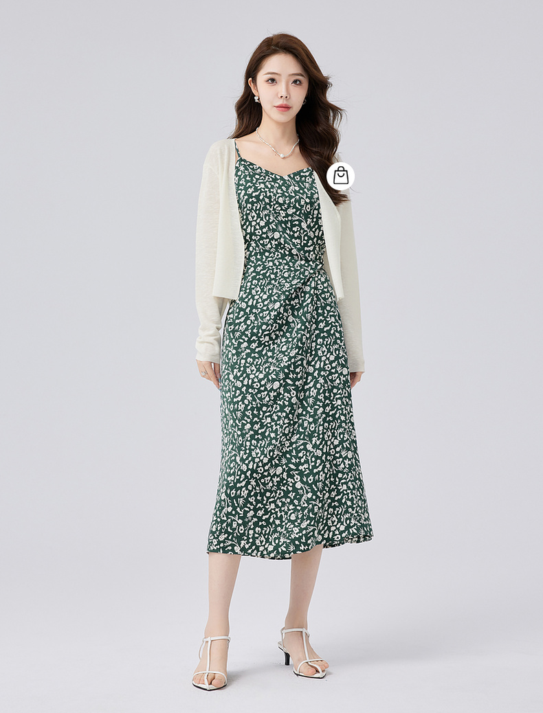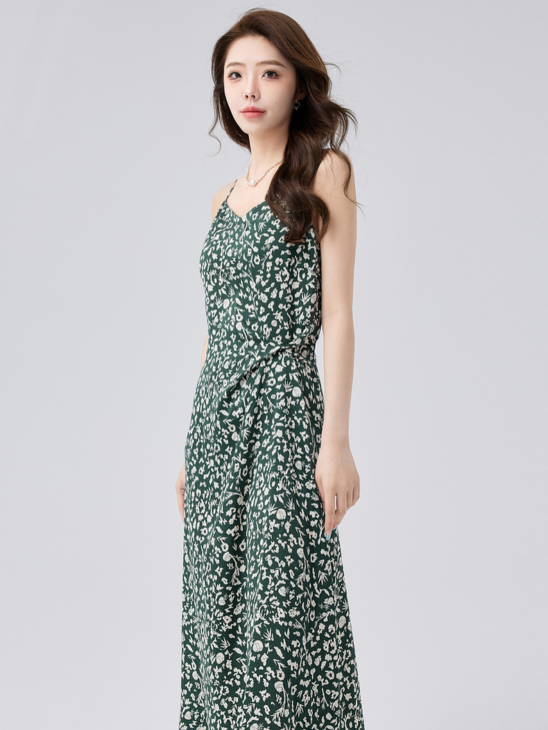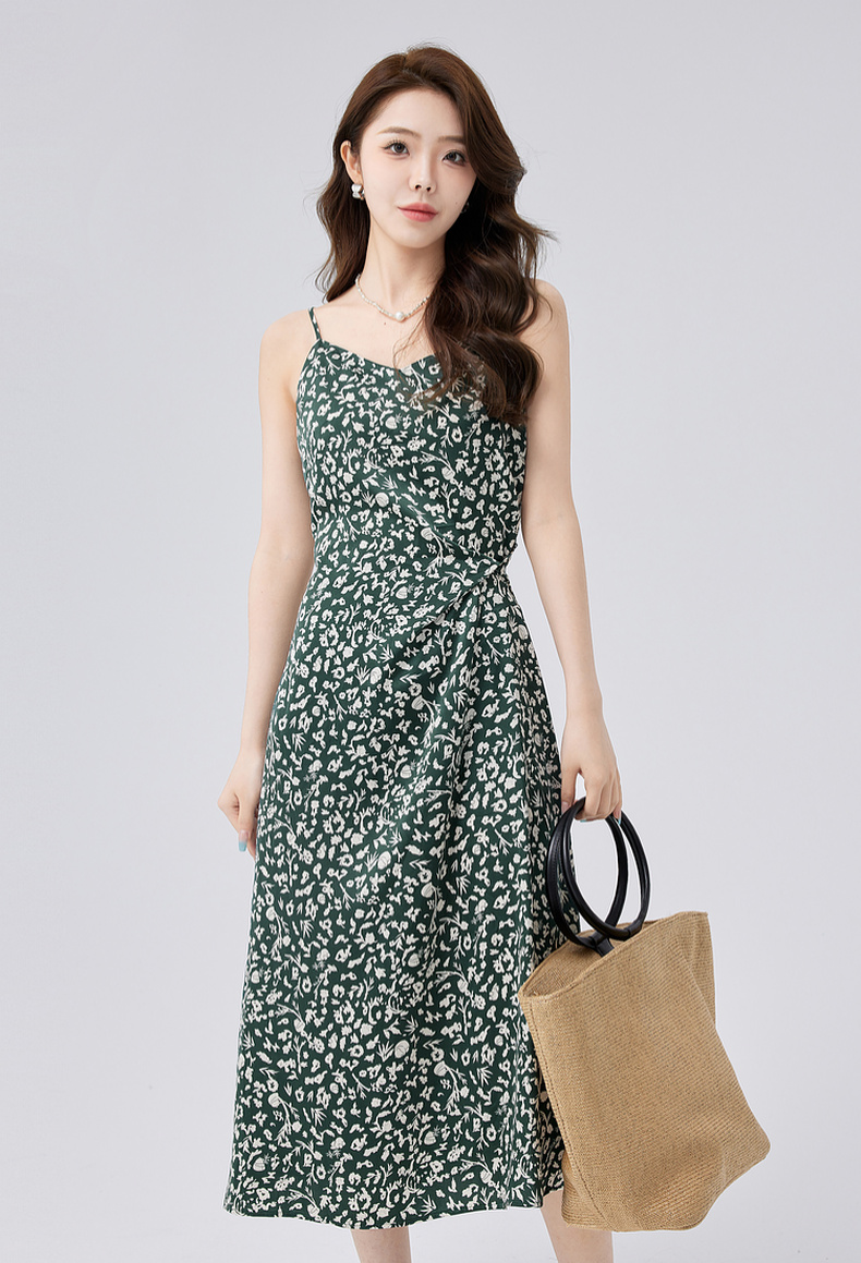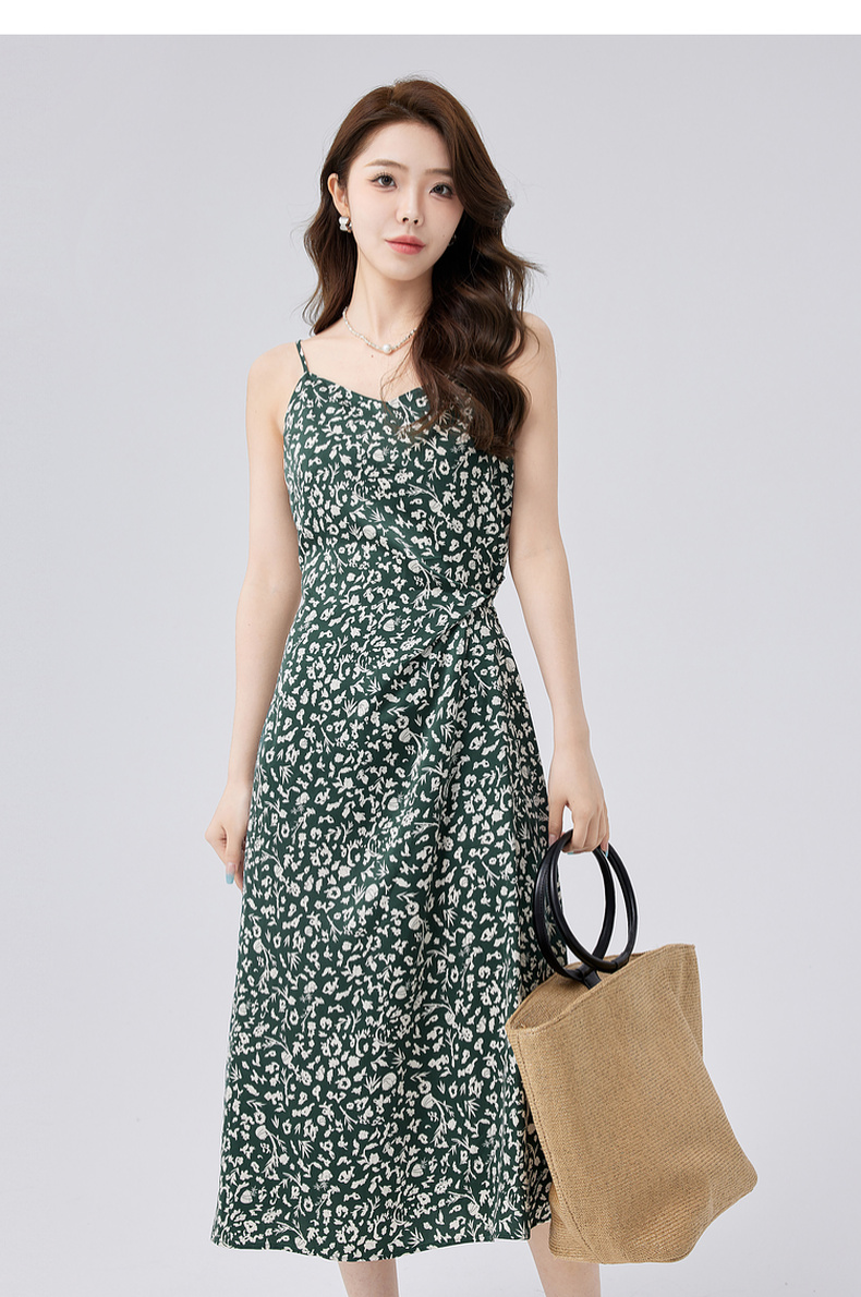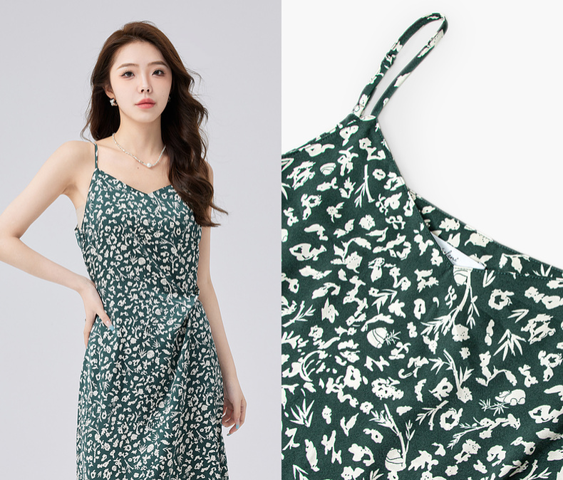 【商场同款】伊芙丽设计感抽褶碎花显瘦吊带连衣裙24秋1F4191351