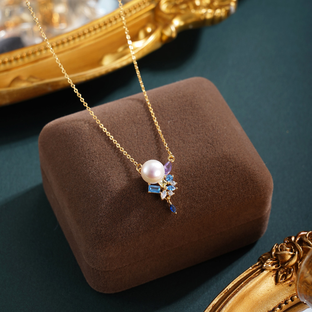 子佩集【珠光瑞彩】银S925珍珠惜王妃套链项链【MLTL044】镀金蓝紫2602
