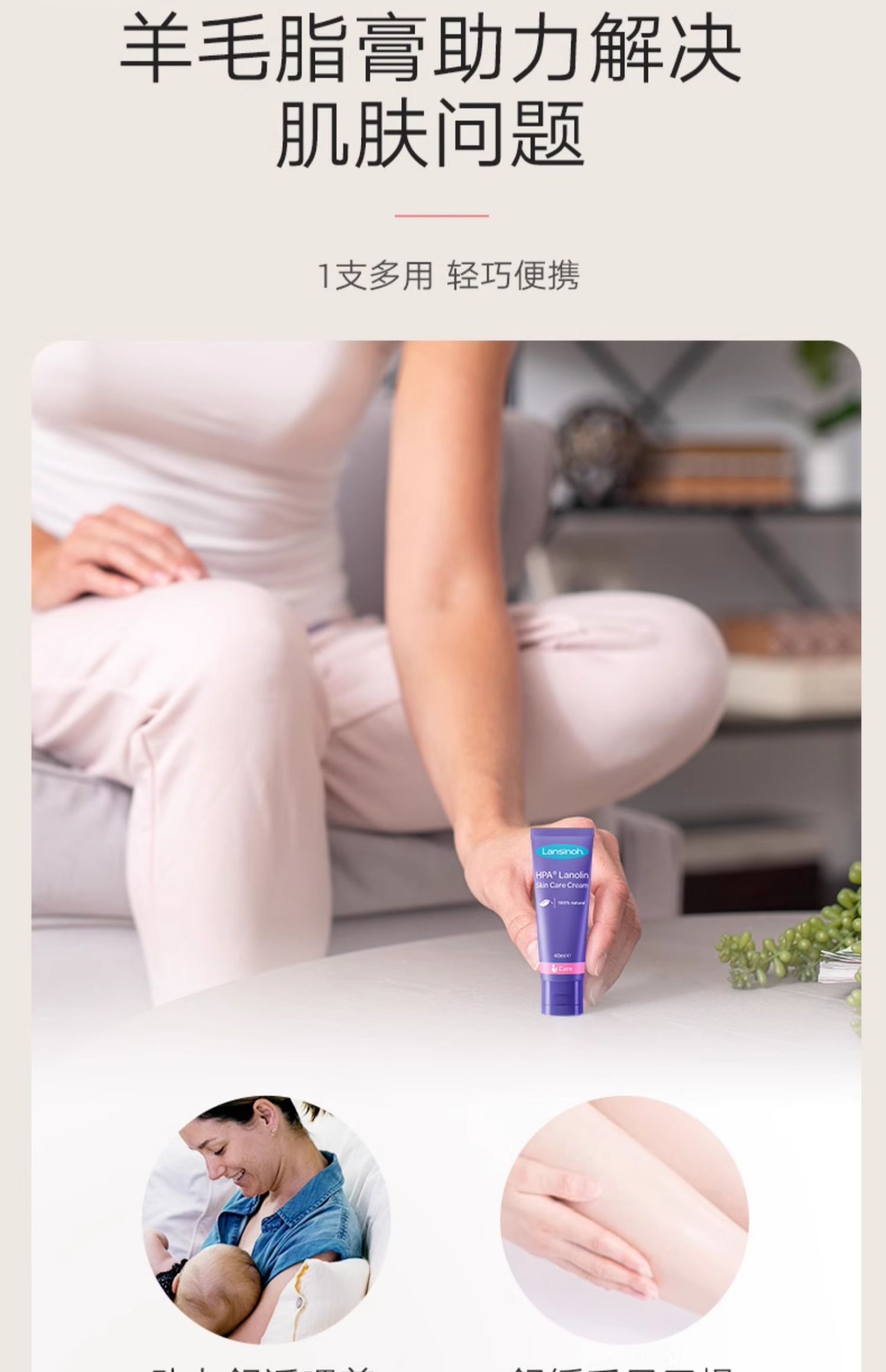 【新包装带防伪】美国进口兰思诺Lansinoh羊脂膏40ml 乳头皲裂霜孕妇羊脂膏防皴裂乳头膏霜羊毛脂滋润护理膏