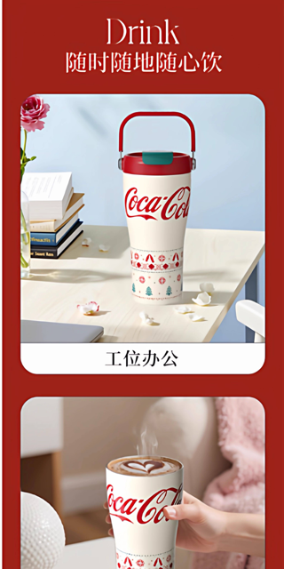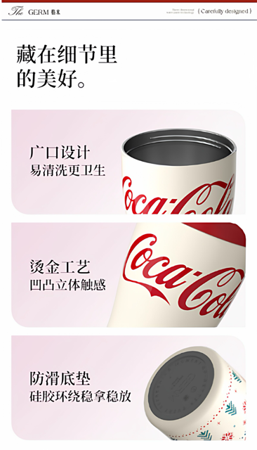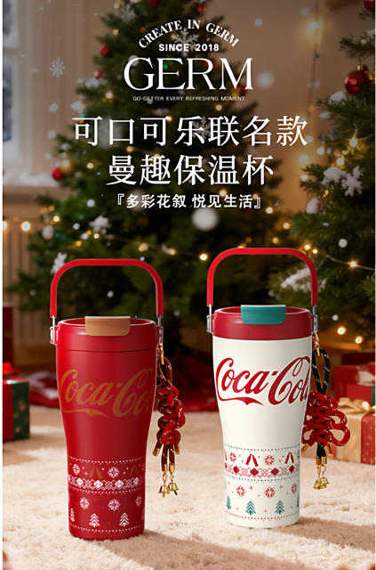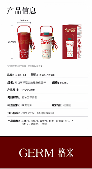 GERM可口可乐保温杯咖啡杯新款女生吸管水杯子生日新年礼物圣诞