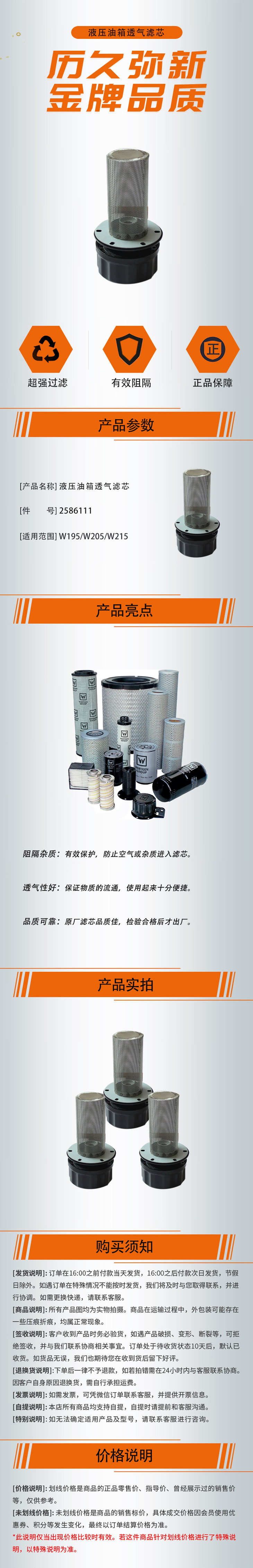 【液压油箱透气滤芯2586111】 适用于W195/W205/W215