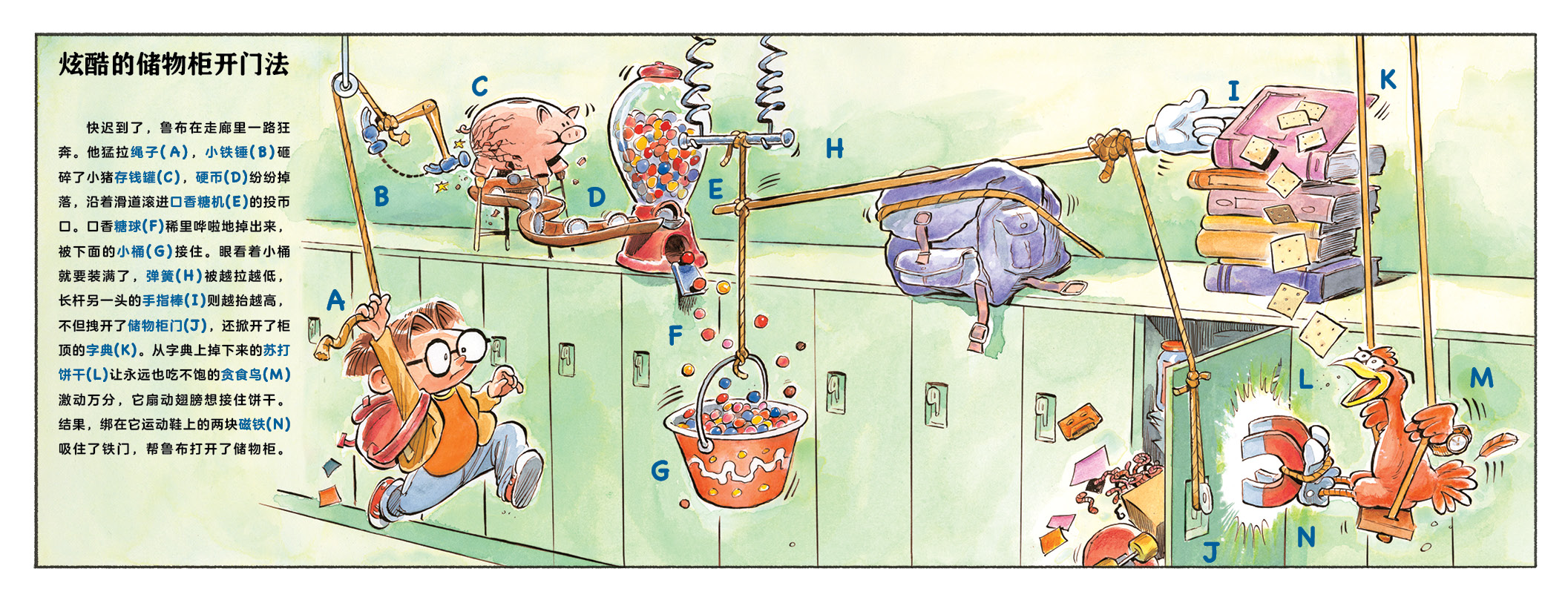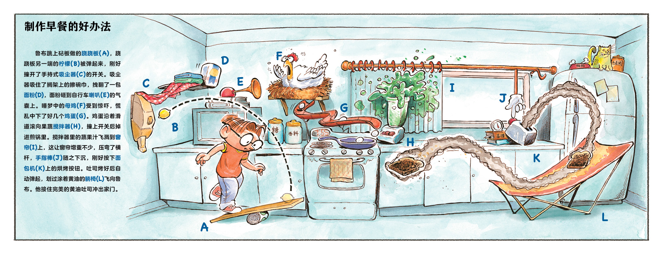 ◎漫画大奖鲁本奖获得者亲自绘图,用精湛幽默的漫画经典再现14项戈德堡机械装置
