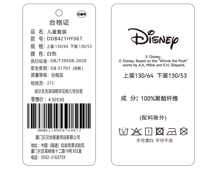 【两件套】【110-160】【迪士尼】男童夏季短袖短裤套装中