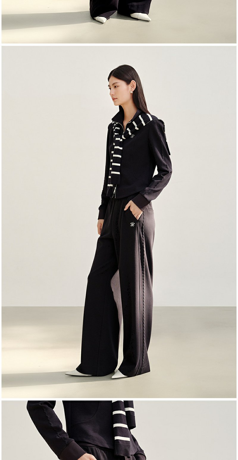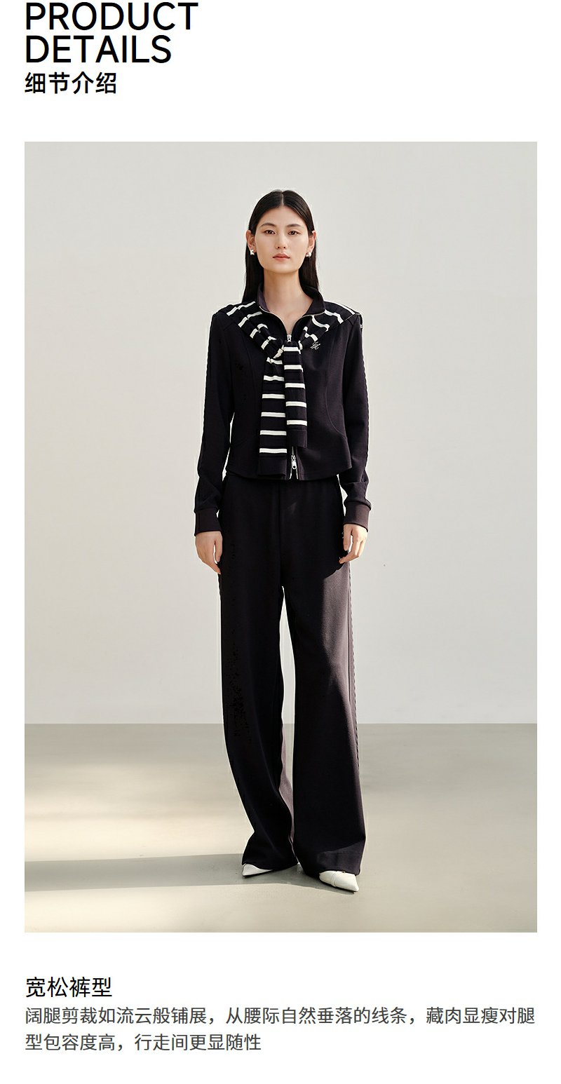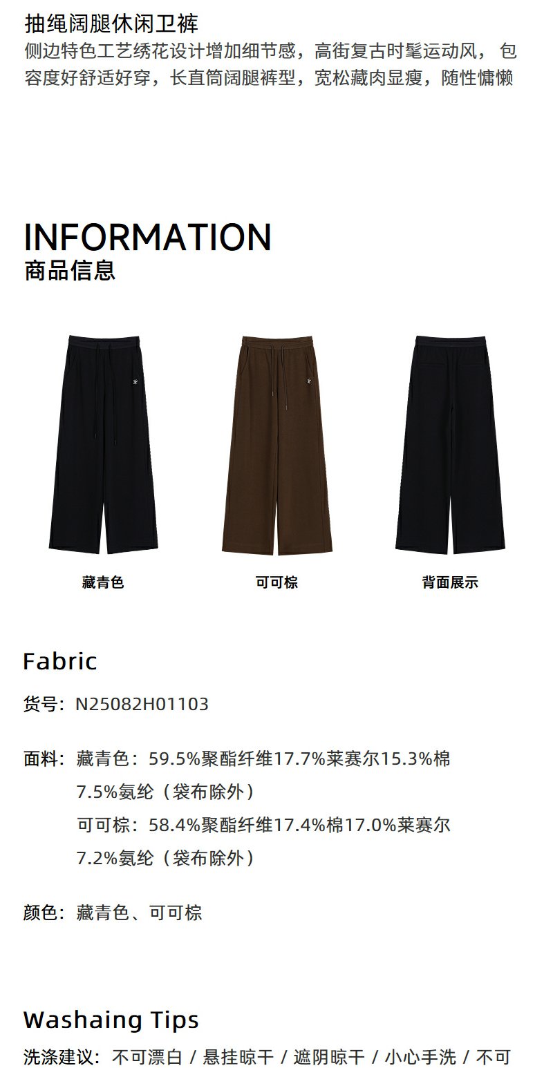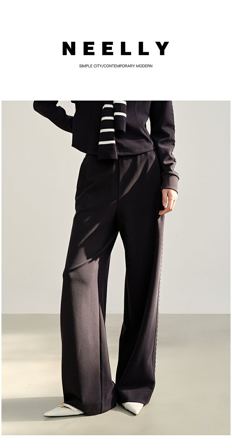 NEELLY纳俪商场同款秋季新款时尚抽绳休闲卫裤女直筒复古休闲长裤N25082H01103