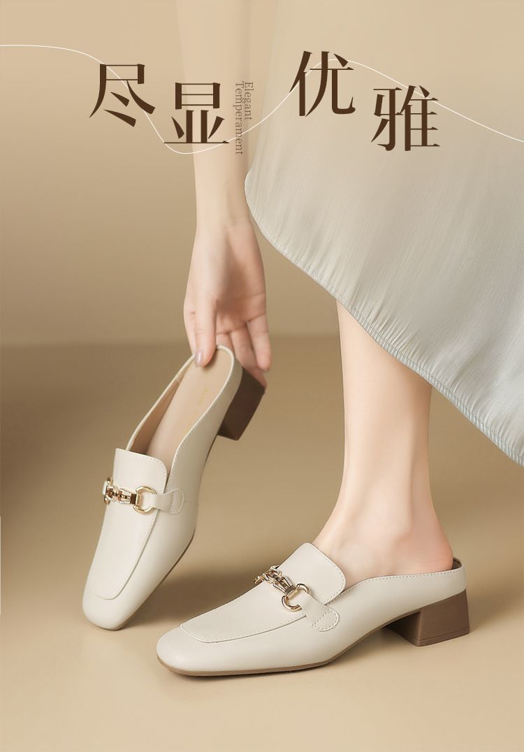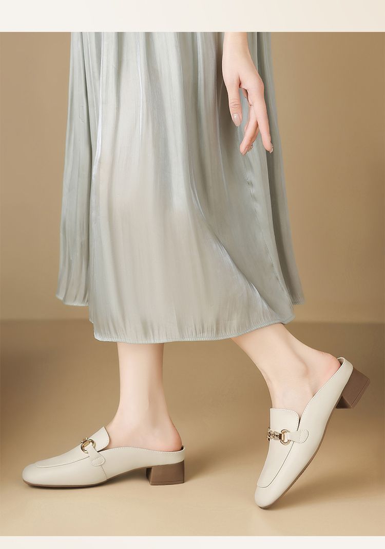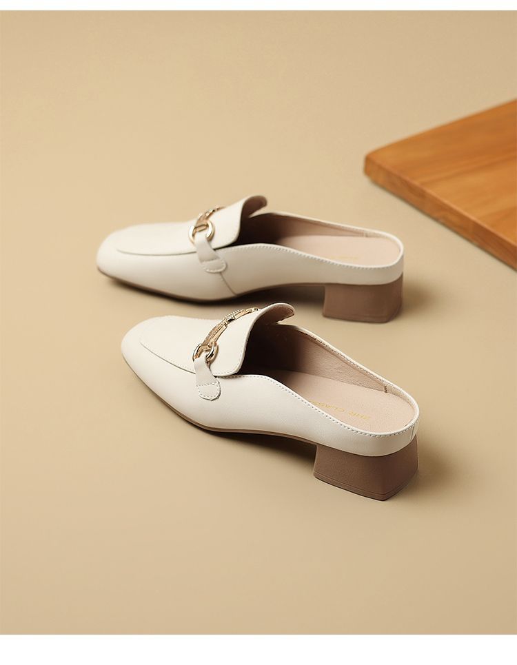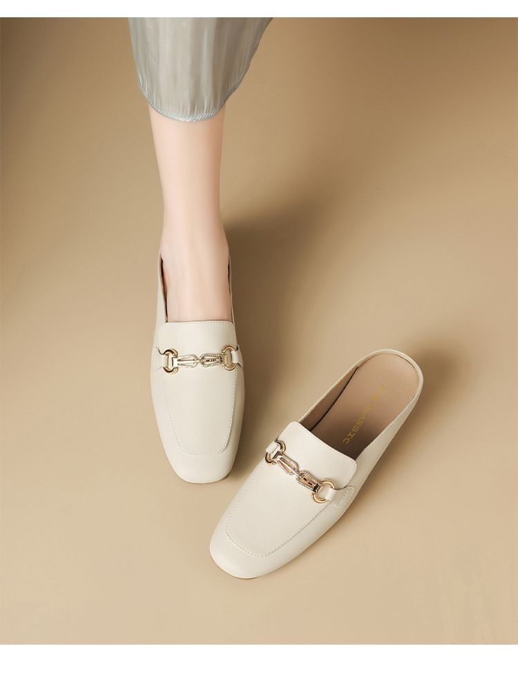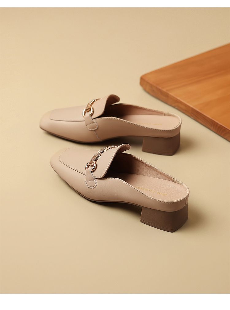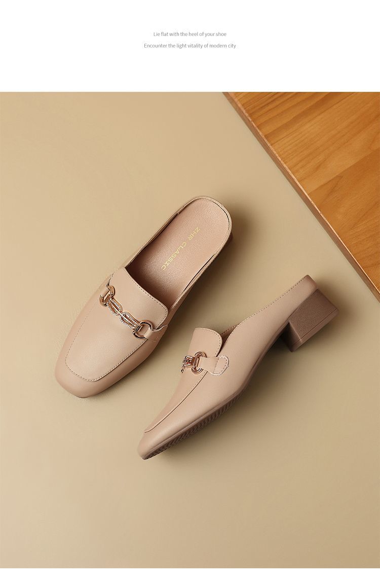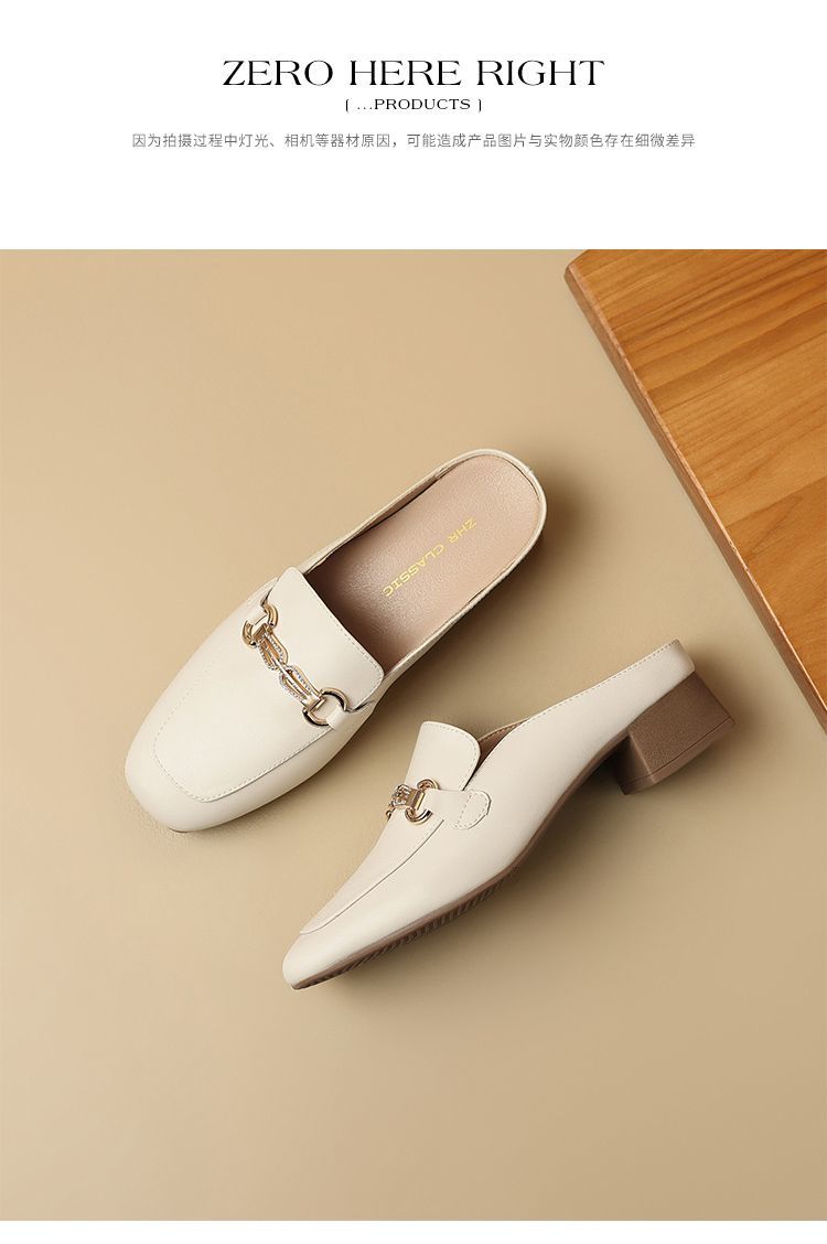 ZHR则则真皮法式衔扣穆勒拖鞋女2025新款复古优雅软底外穿包头拖