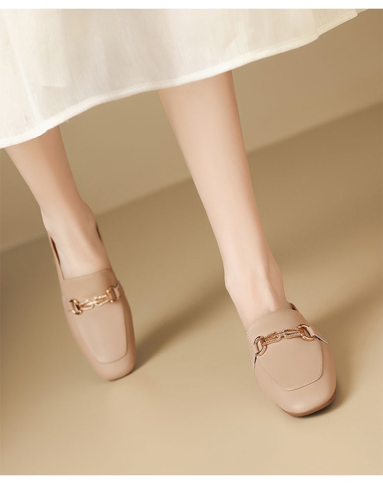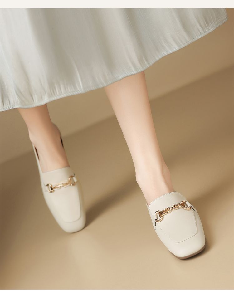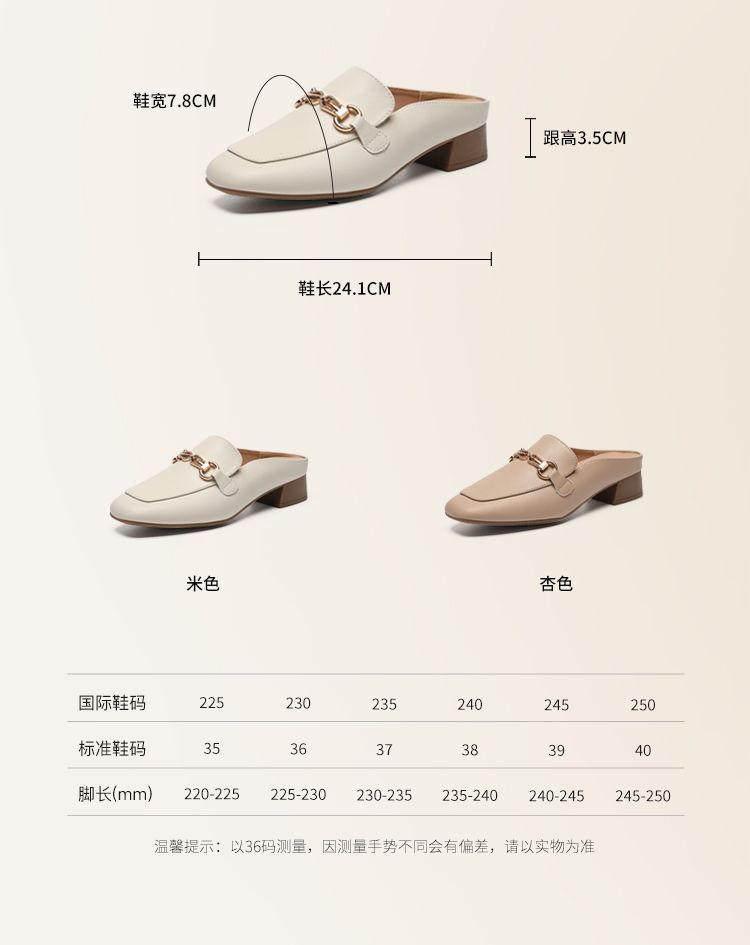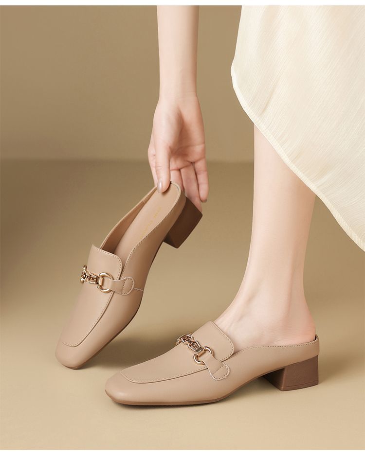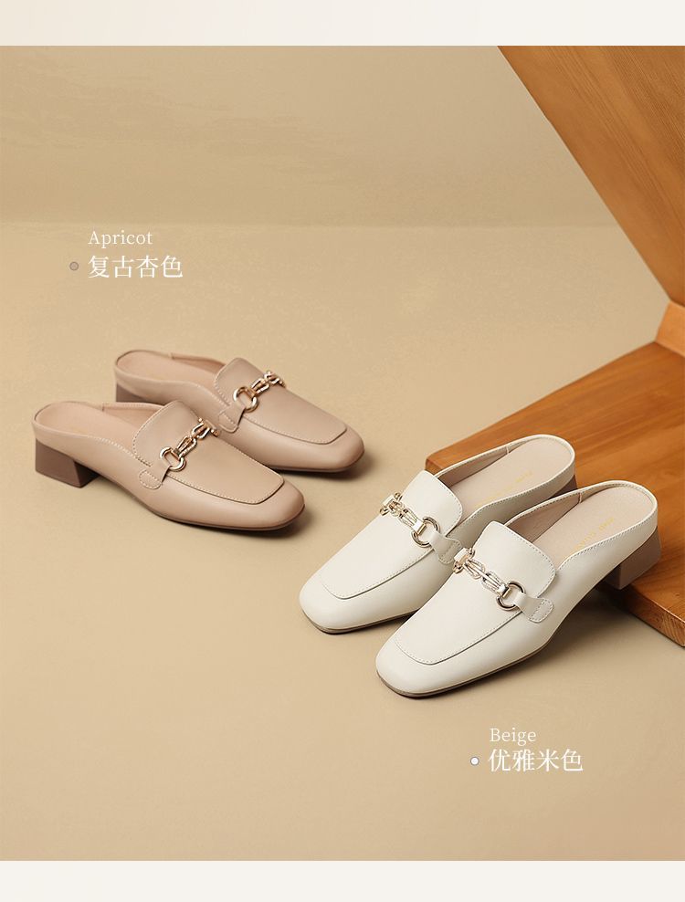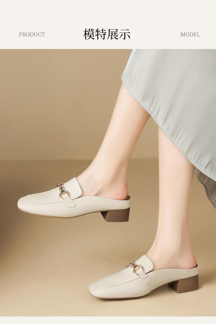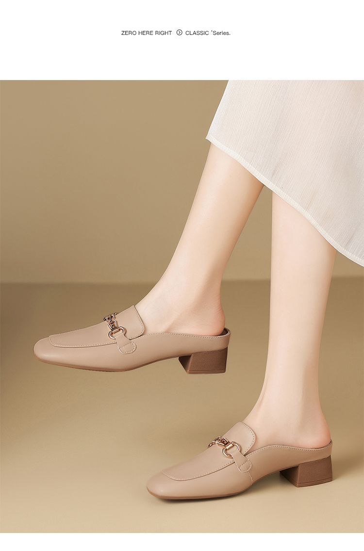 ZHR则则真皮法式衔扣穆勒拖鞋女2025新款复古优雅软底外穿包头拖