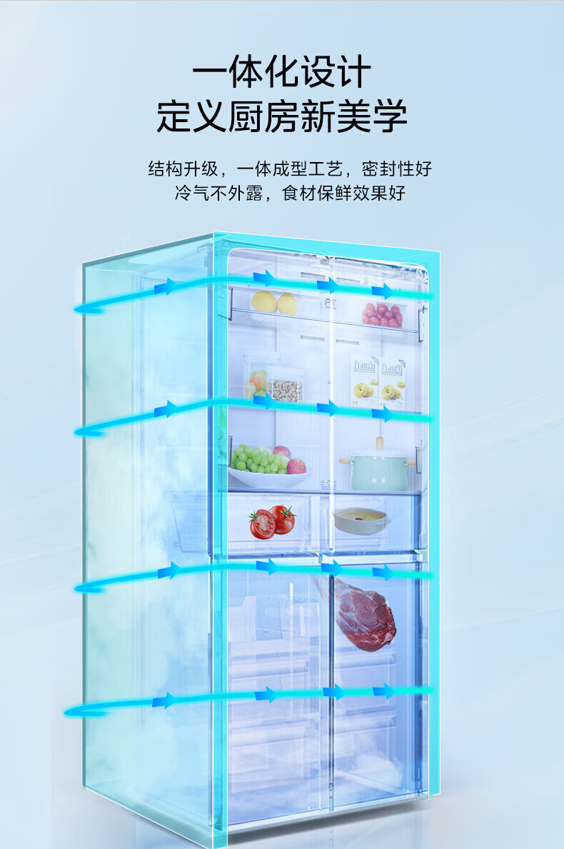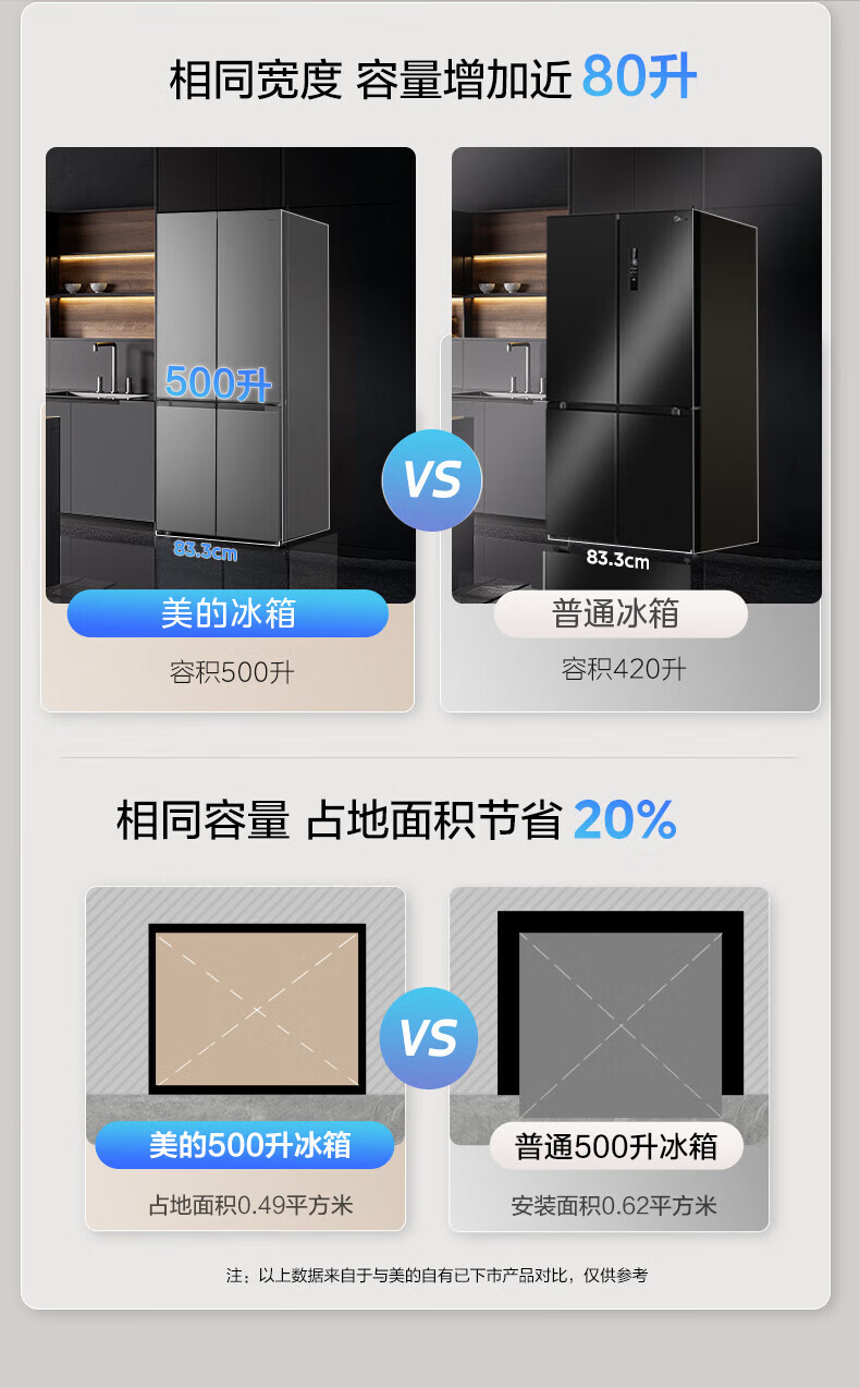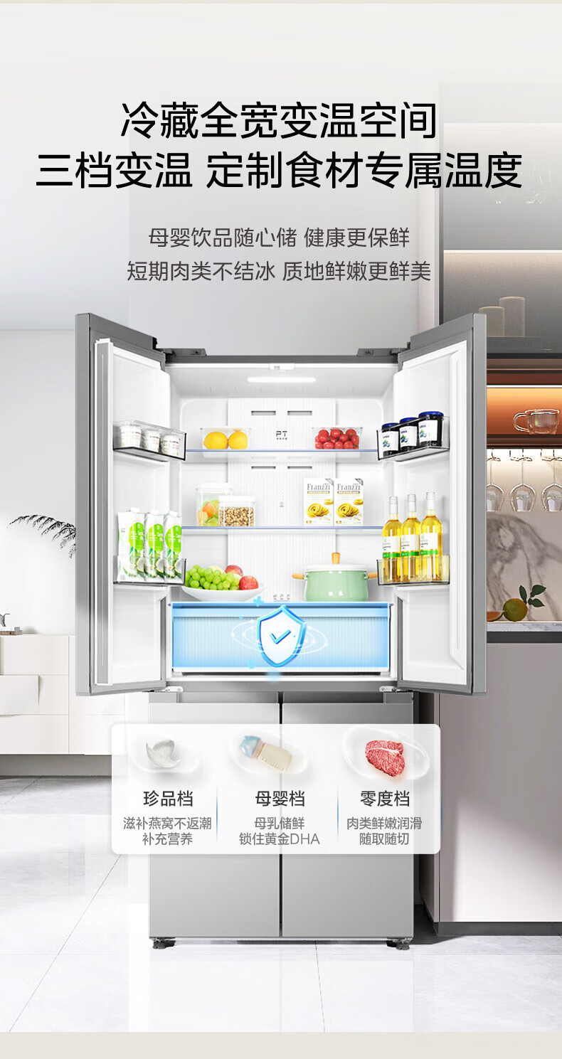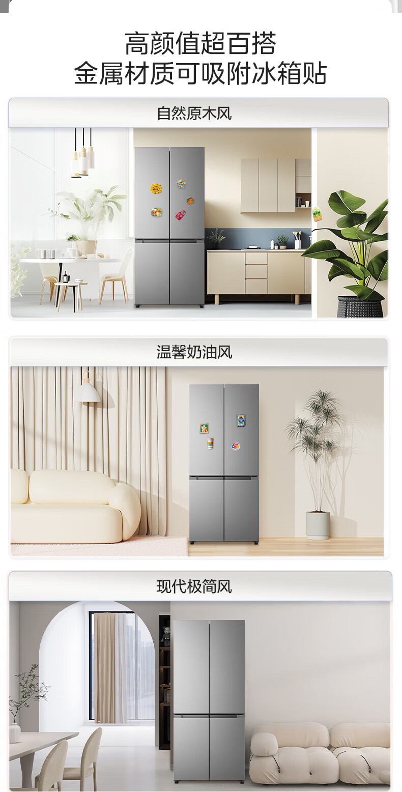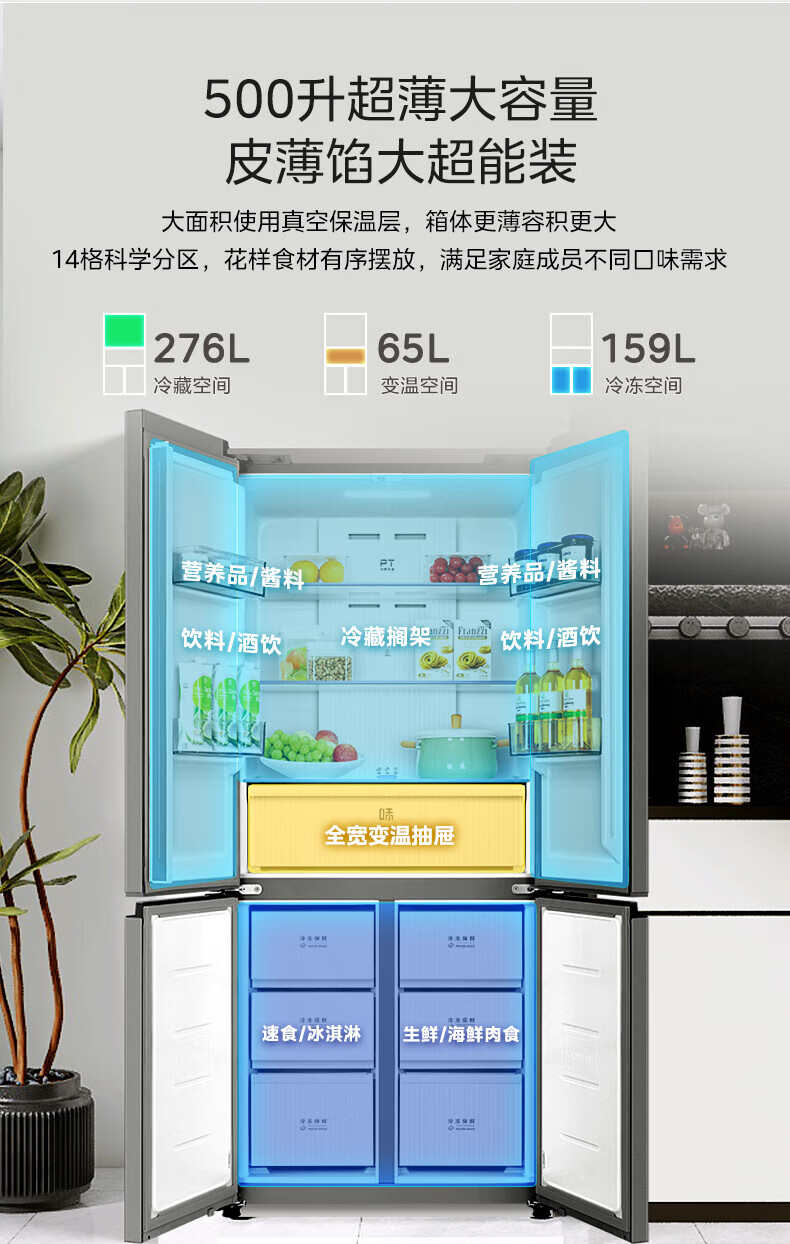 美的冰箱 BCD-500WSPM(E) 500升十字对开门超薄大容量冰箱 一级能效 全空间净味 双变频风冷无霜 钛钢灰
