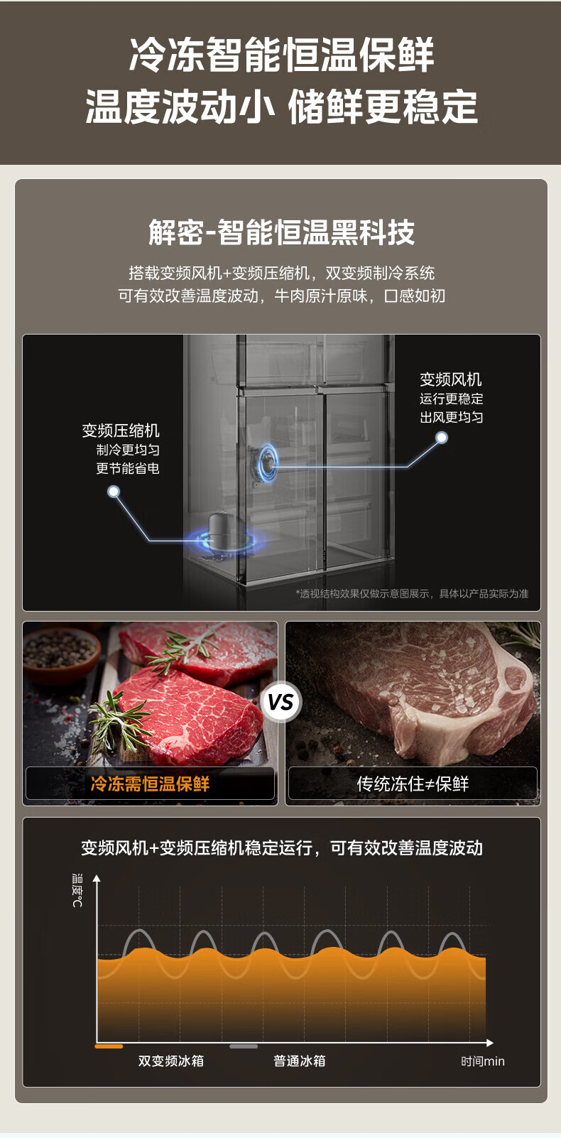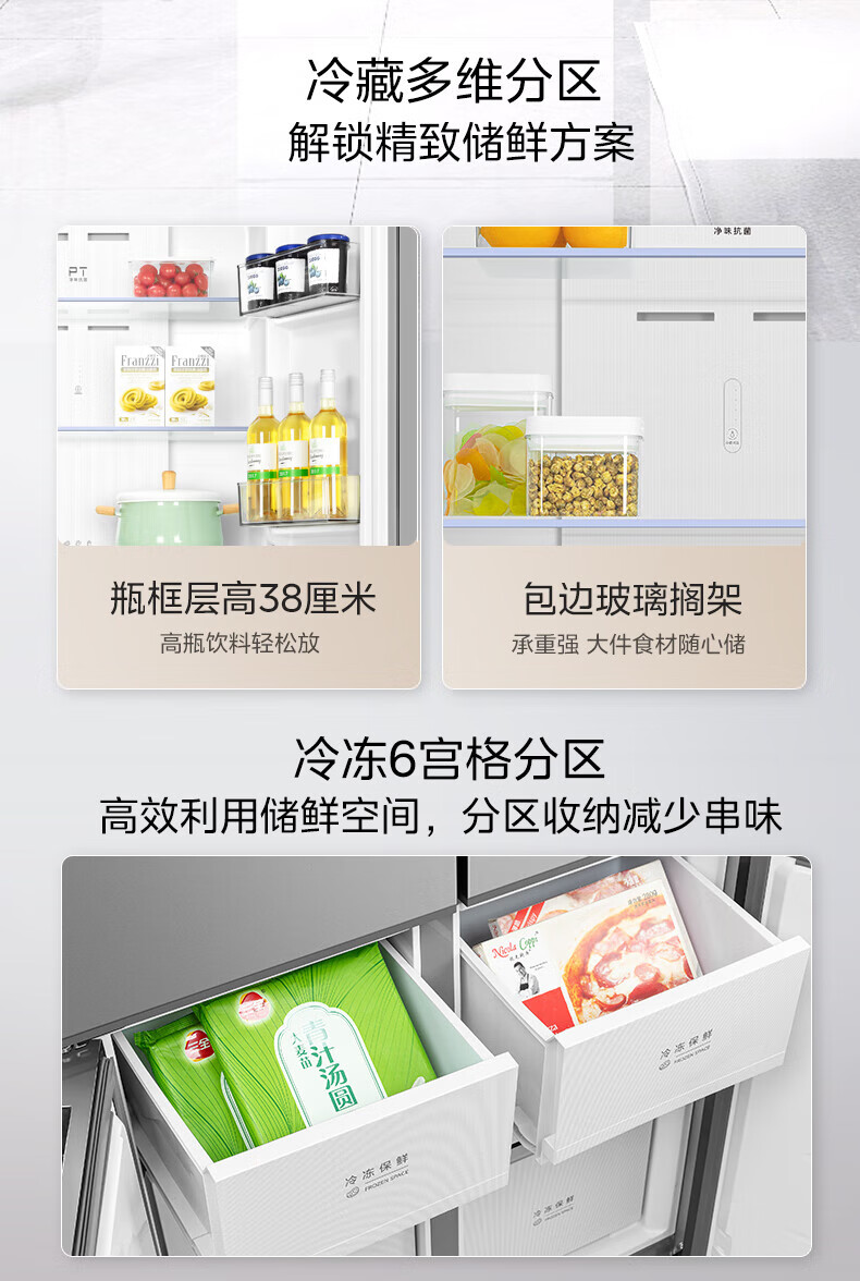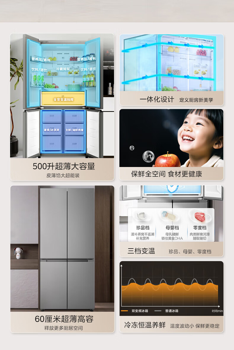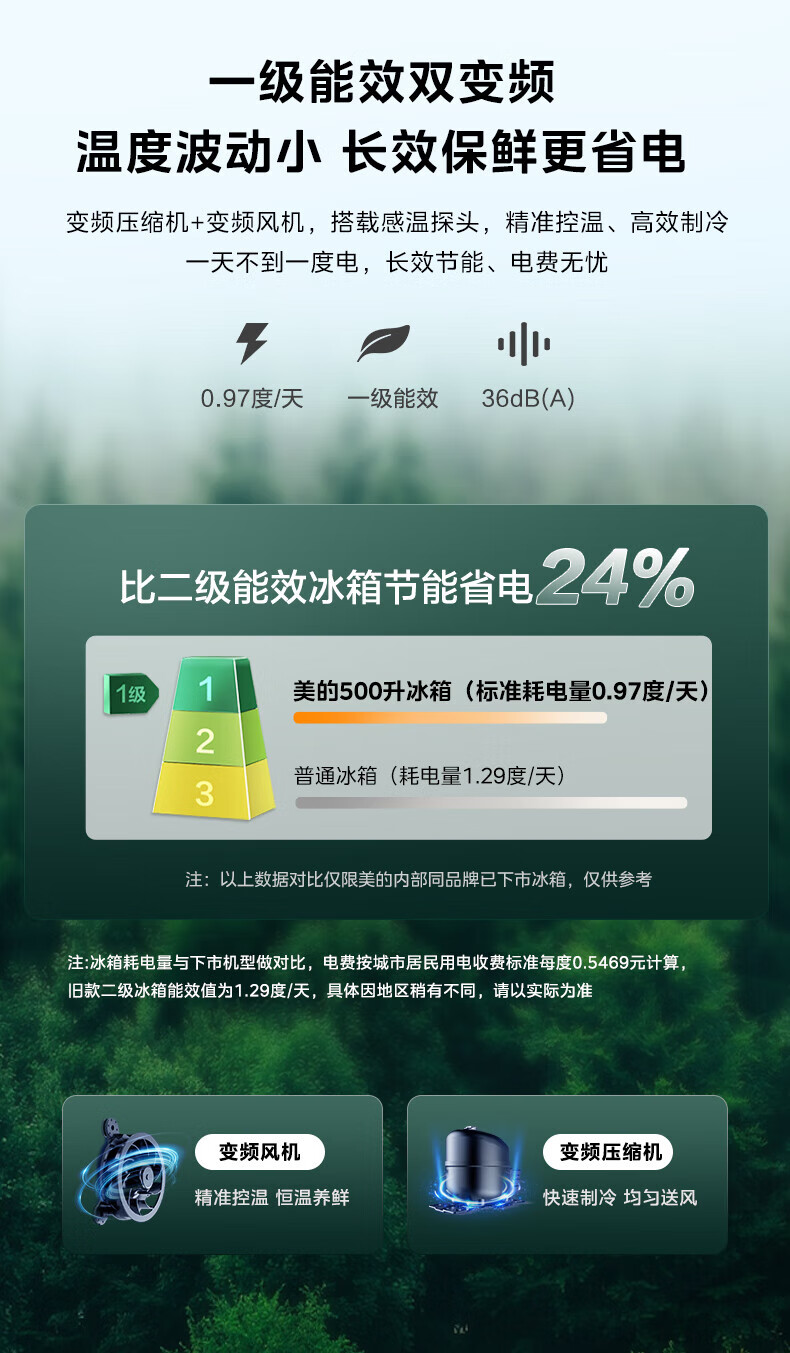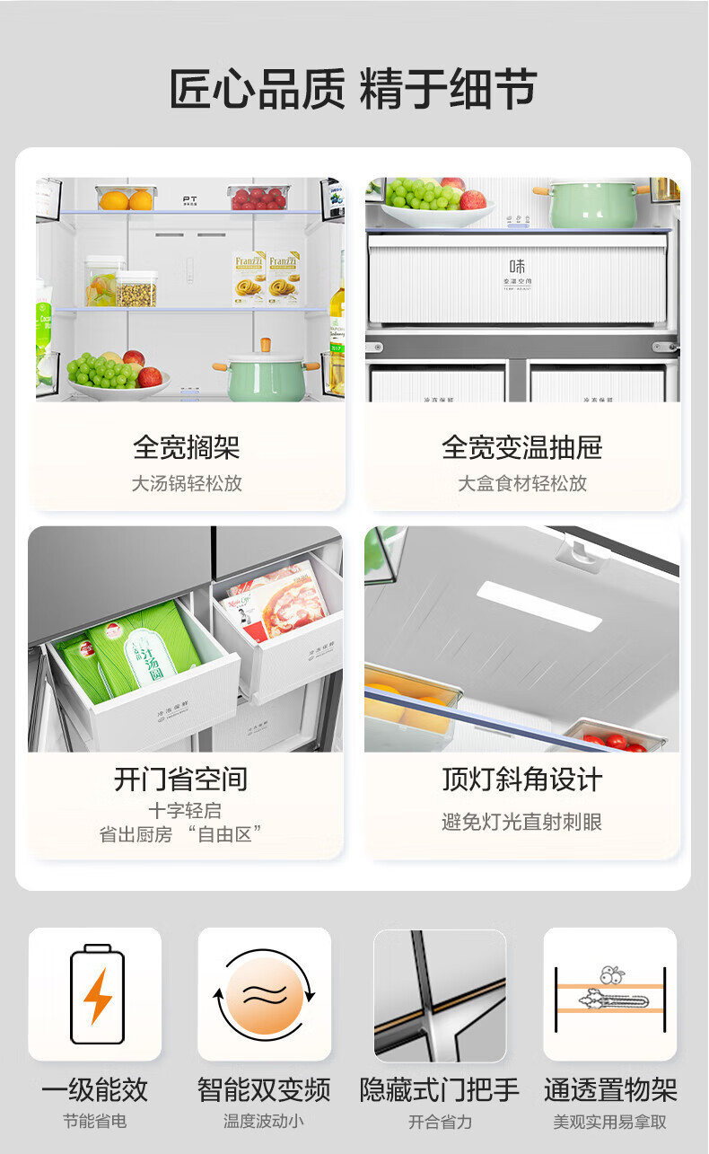 美的冰箱 BCD-500WSPM(E) 500升十字对开门超薄大容量冰箱 一级能效 全空间净味 双变频风冷无霜 钛钢灰