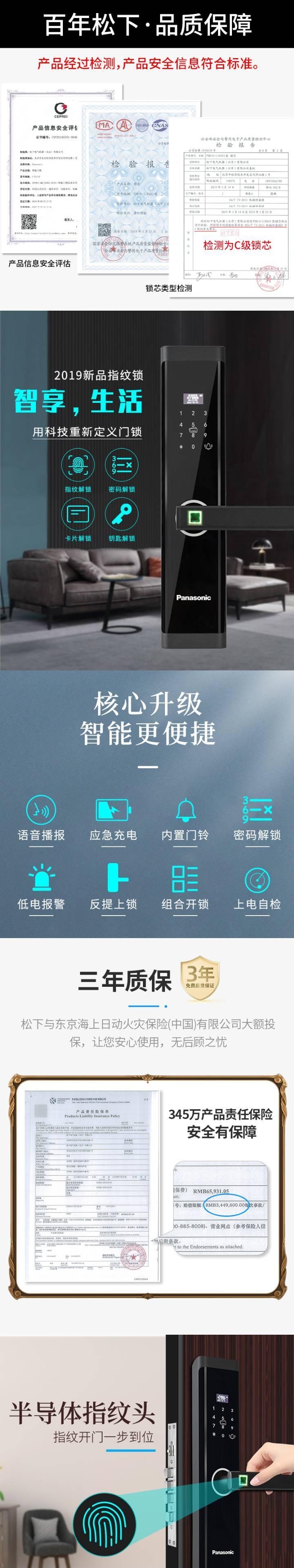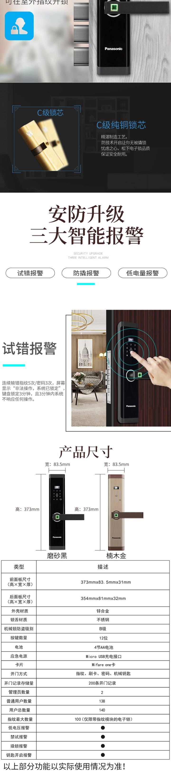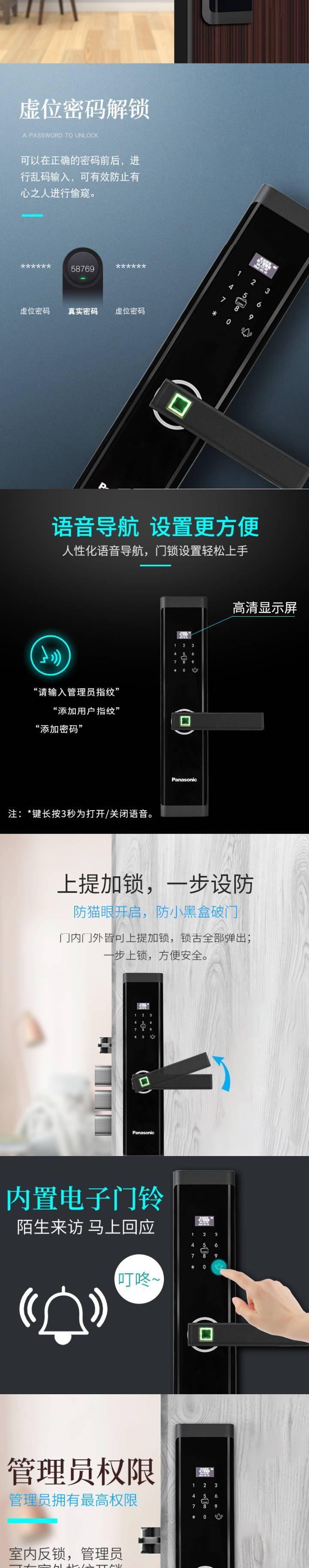 【新品】日本松下X1智能指纹用防盗门全密码锁家自动磁卡电子门锁(78dv)