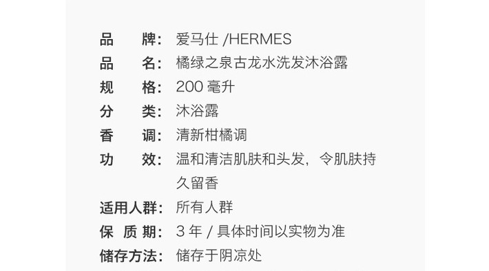 【保税仓】法国Hermes爱马仕橘绿之泉洗发水沐浴露双效二合一 200ml