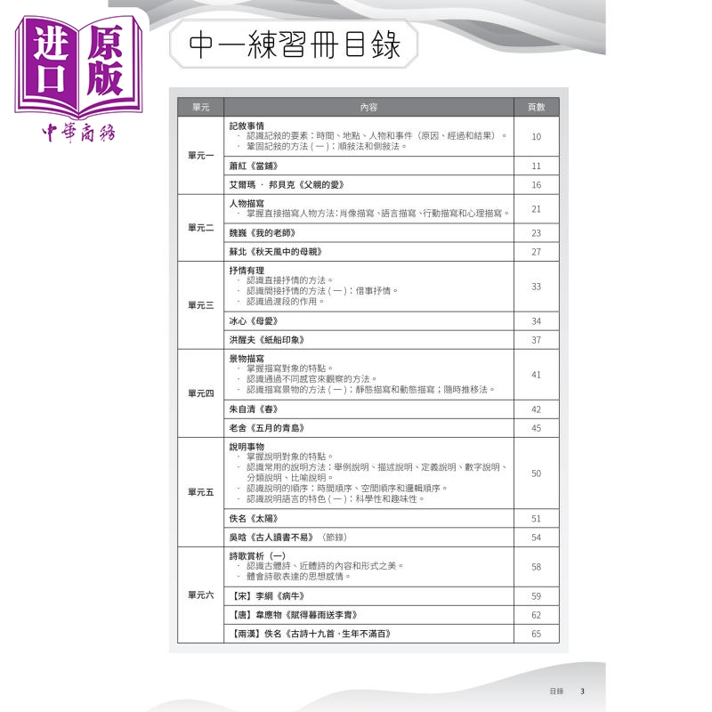 本练习册共设有11个单元,分为6个白话文单元和5个文言文单元。每个单元各设2个篇章和练习,共22篇练习。练习题目均从历年文凭试中提取考核重点拟题,让学生掌握语文知识后,不仅能得到针对性锻炼,而且能提早掌握公开试的考评方向。