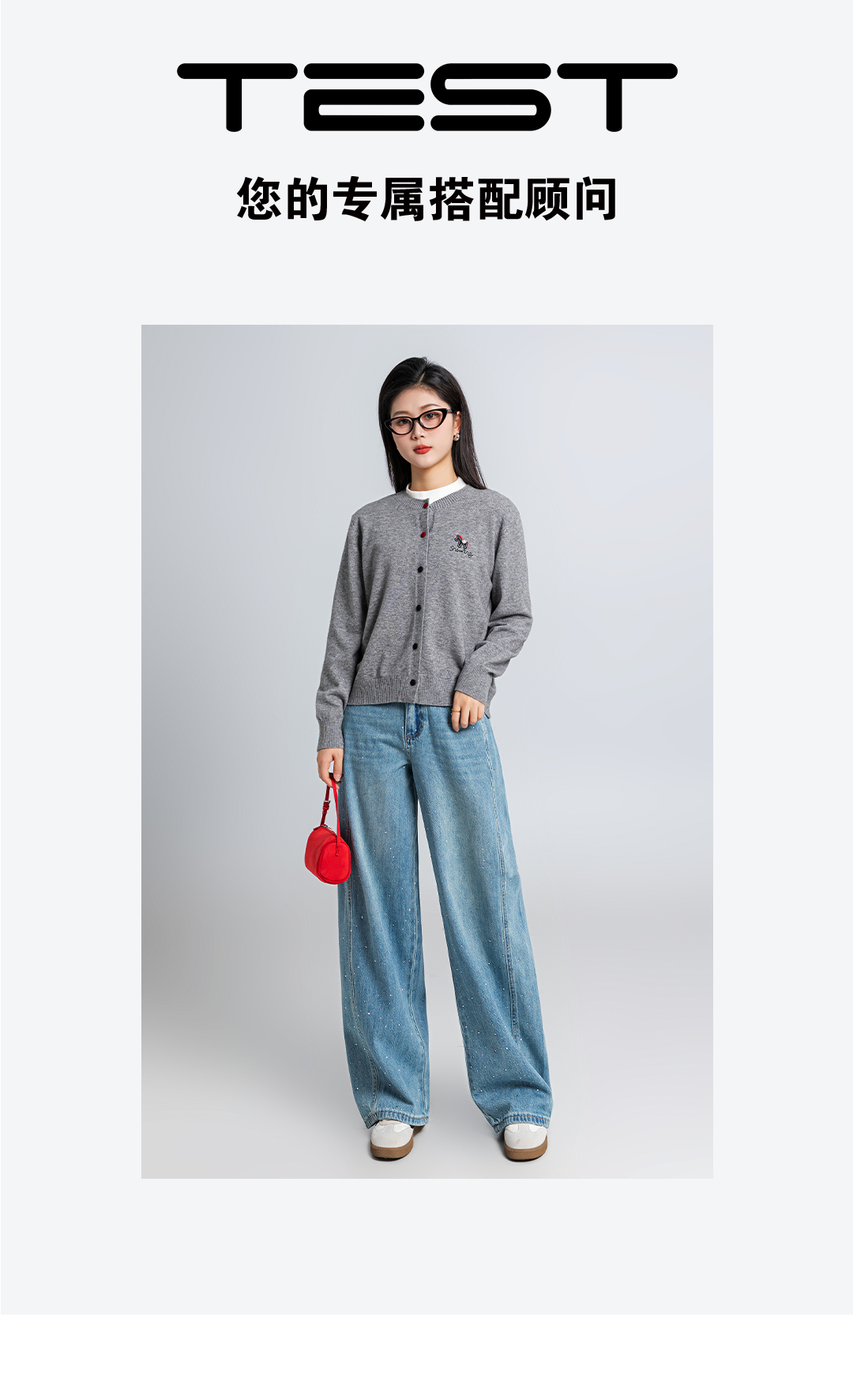 春上新软糯亲肤趣味刺绣撞色纽扣圆领灰色毛衣1261020 商品图3