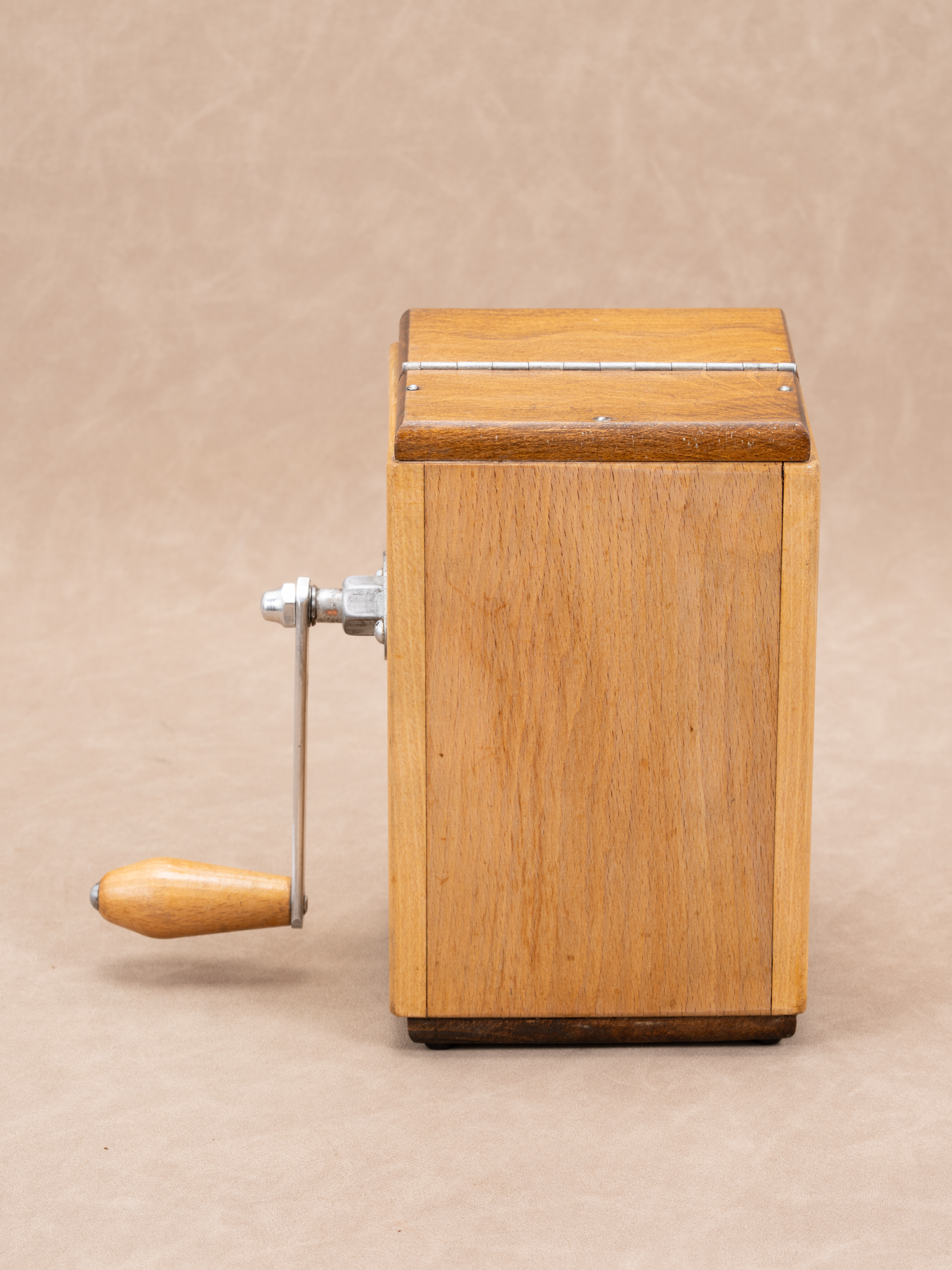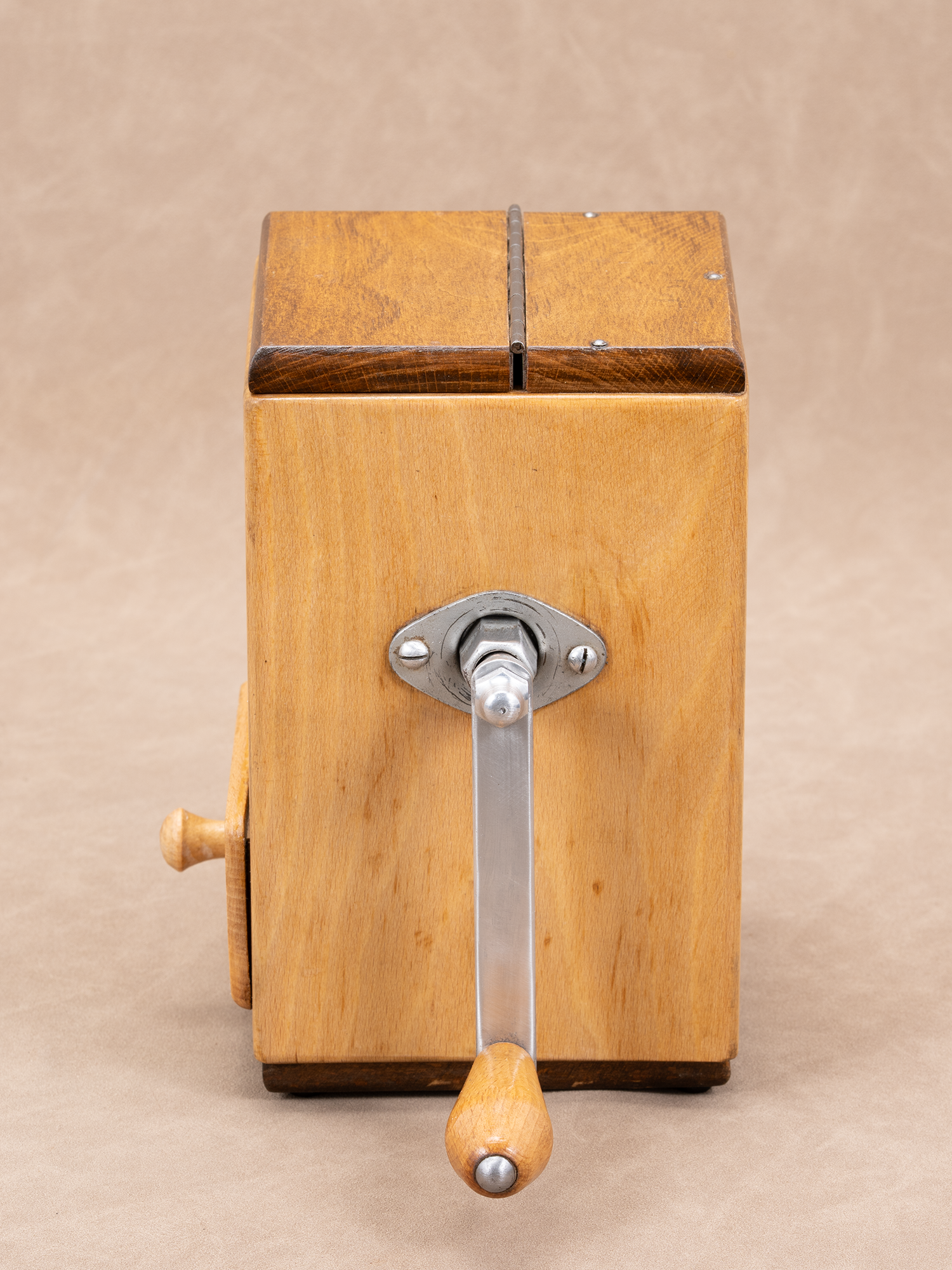 在长达100多年的历史长河中,KyM 出过很多经典的咖啡研磨机。本期这款就是其代表作之一,整体造型像小时候用的卷笔刀,经典又复古。