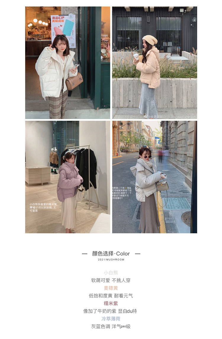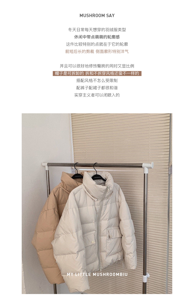 福利 金蘑菇菇【挪威小白熊】麦穗黄M码 可拆卸帽子~实穿轻便短款羽绒服