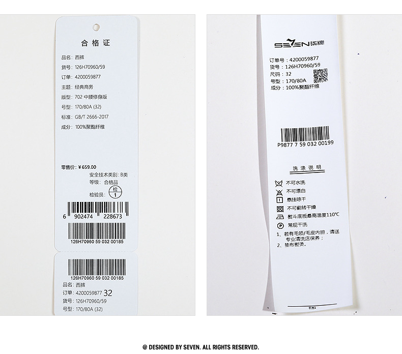 【保形索罗纳】柒牌西裤男2024春夏薄款商务职业工装修身西装长裤 126H70960