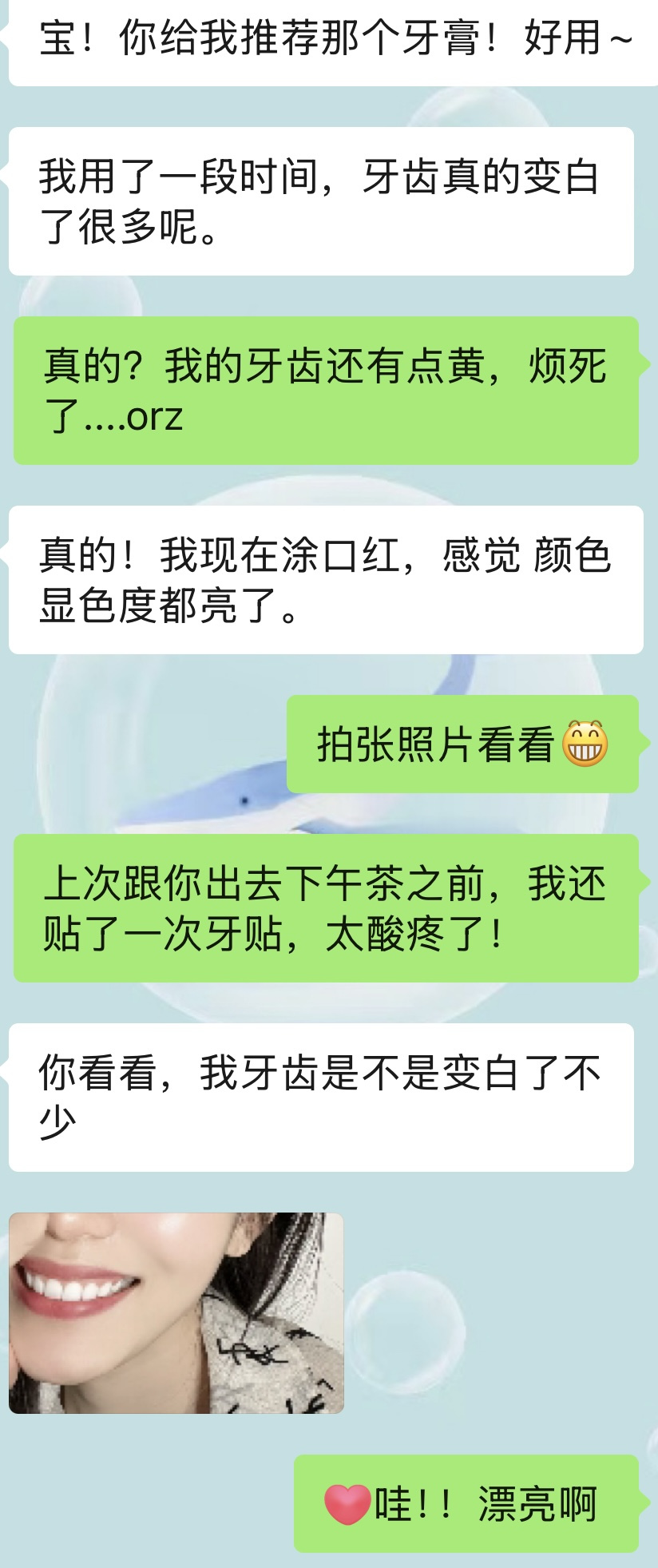不但美白牙齿,还能在牙齿表面形成一层防护膜,防止牙垢堆积