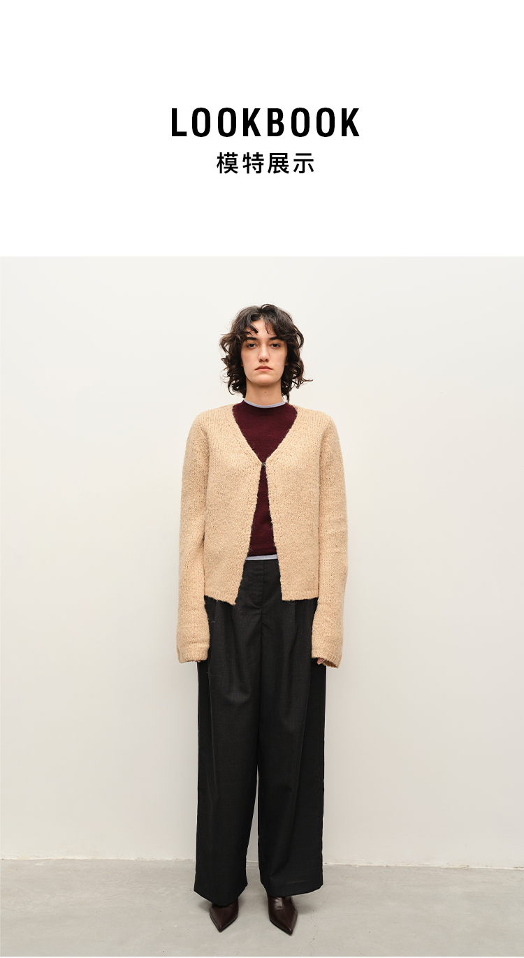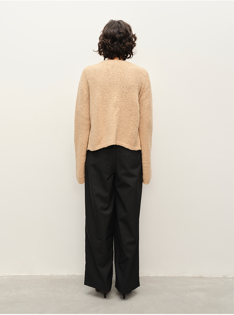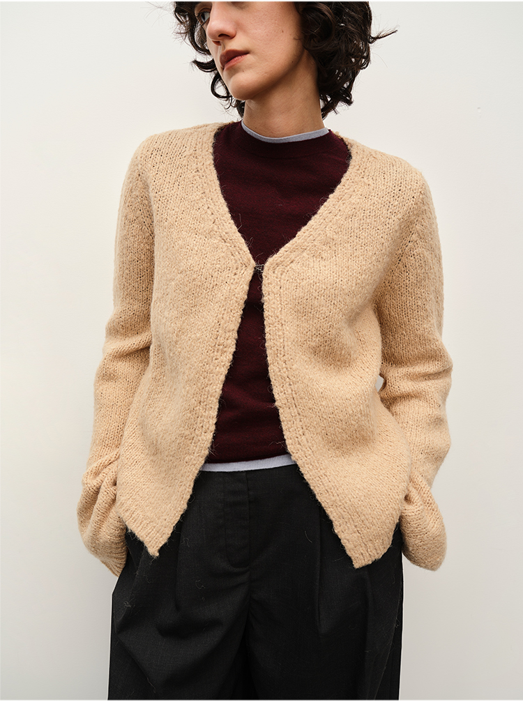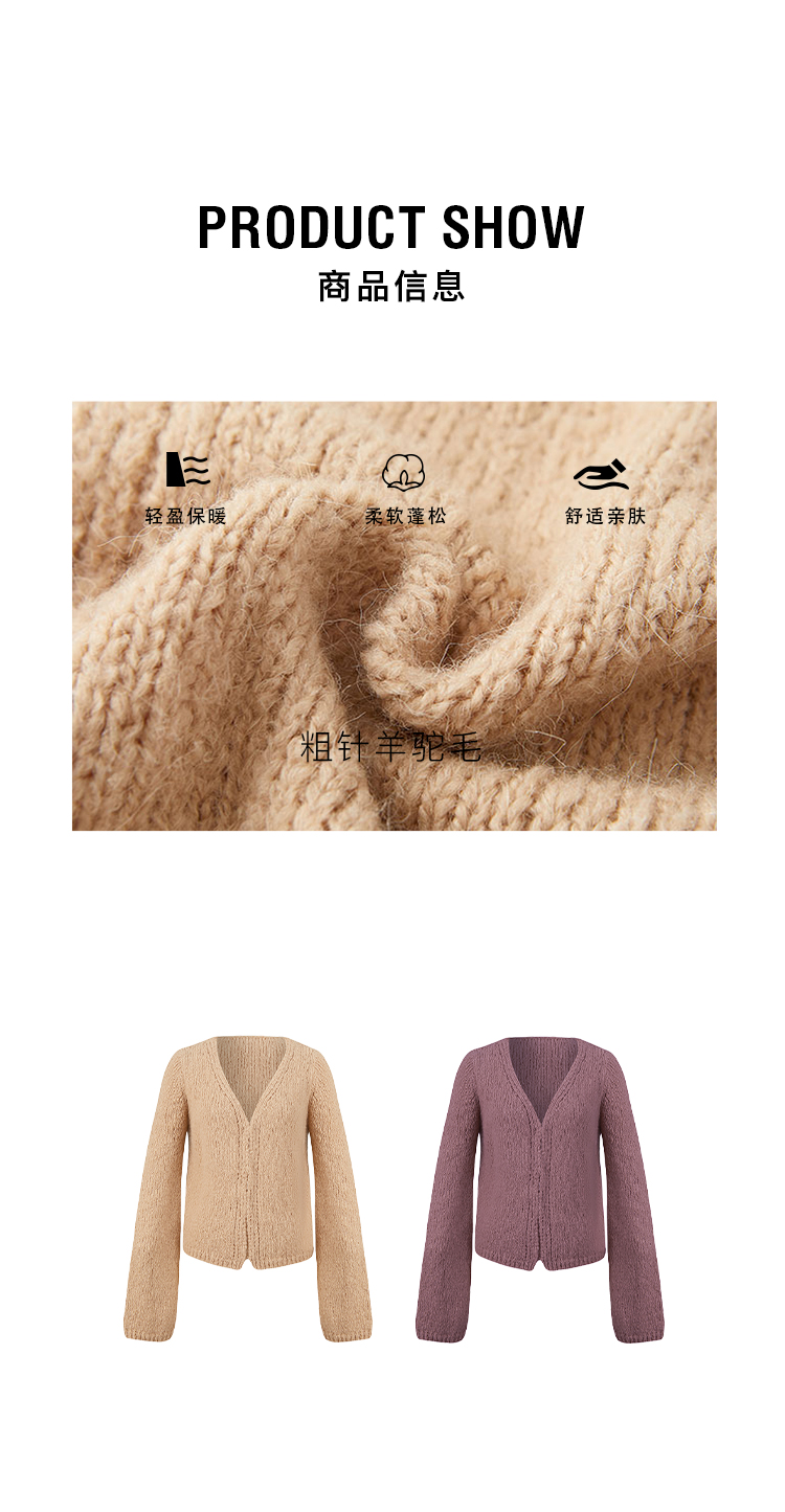 HIDEMI 粗针羊驼毛慵懒系开衫 灰雾紫/米驼色