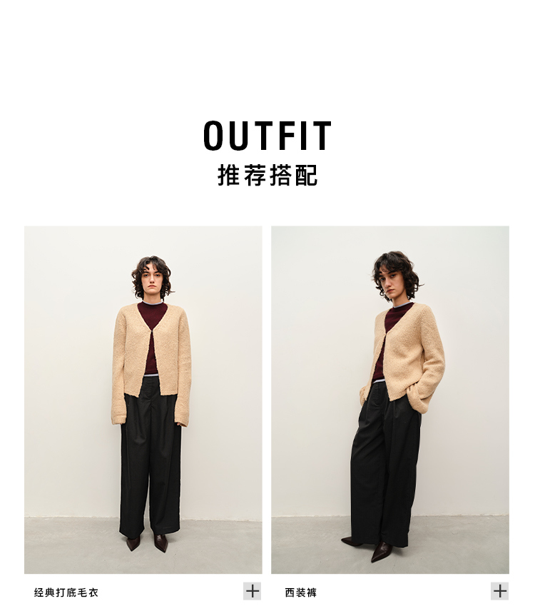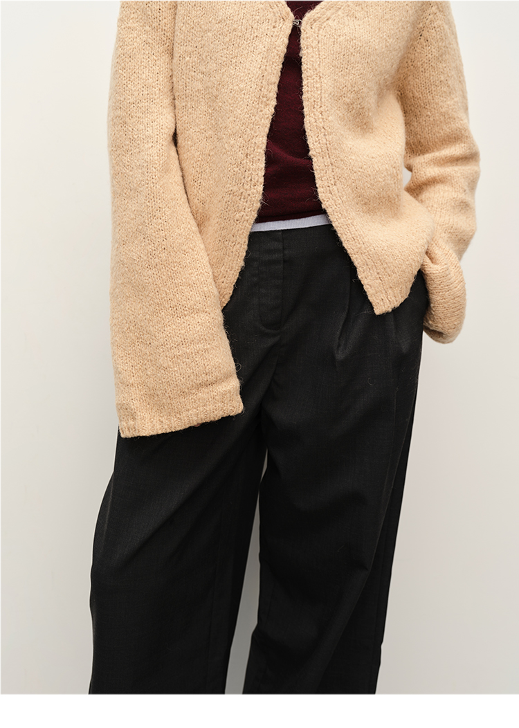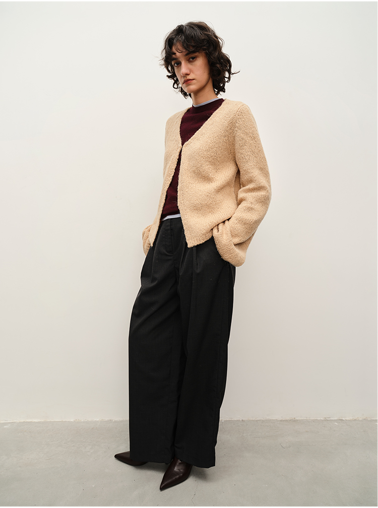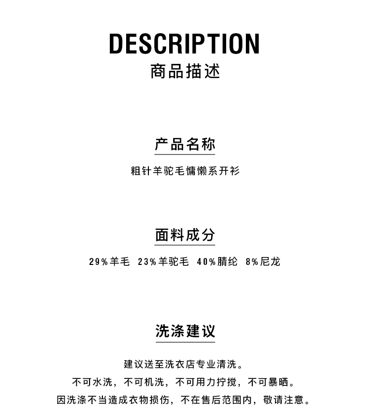 HIDEMI 粗针羊驼毛慵懒系开衫 灰雾紫/米驼色