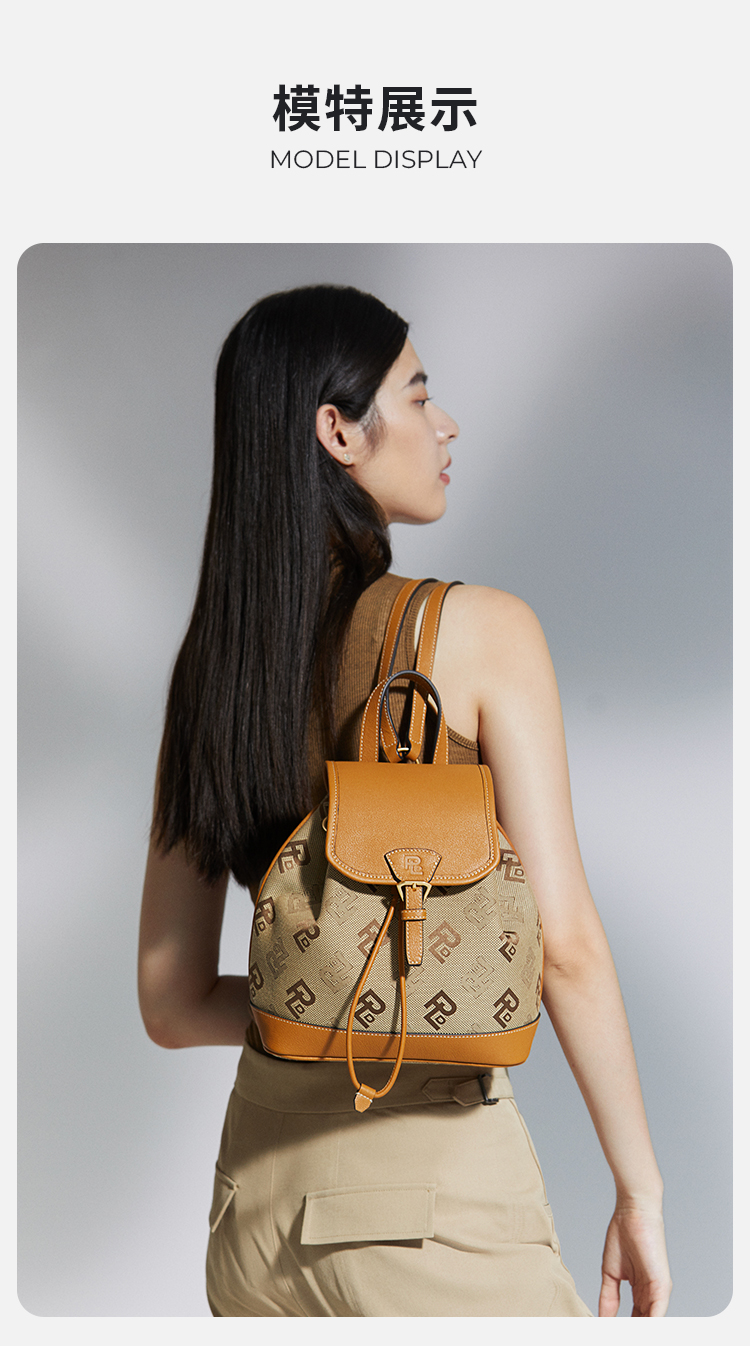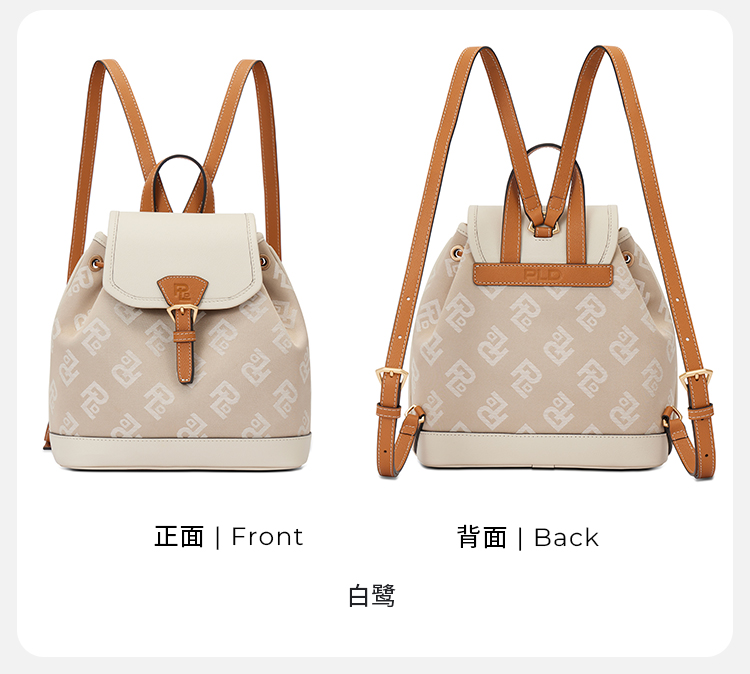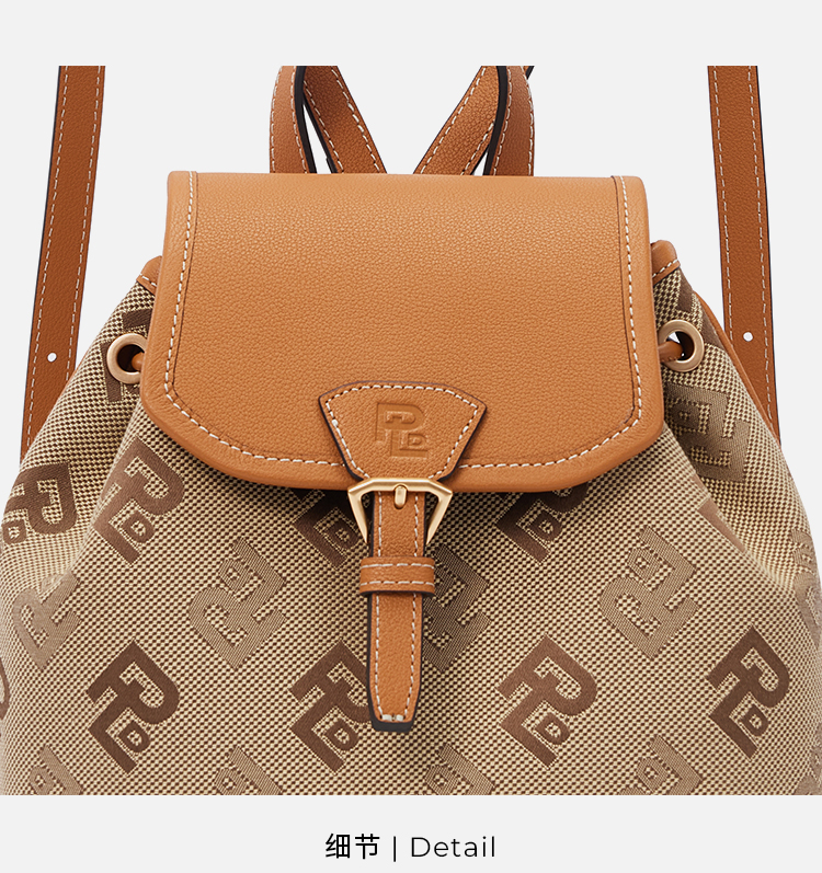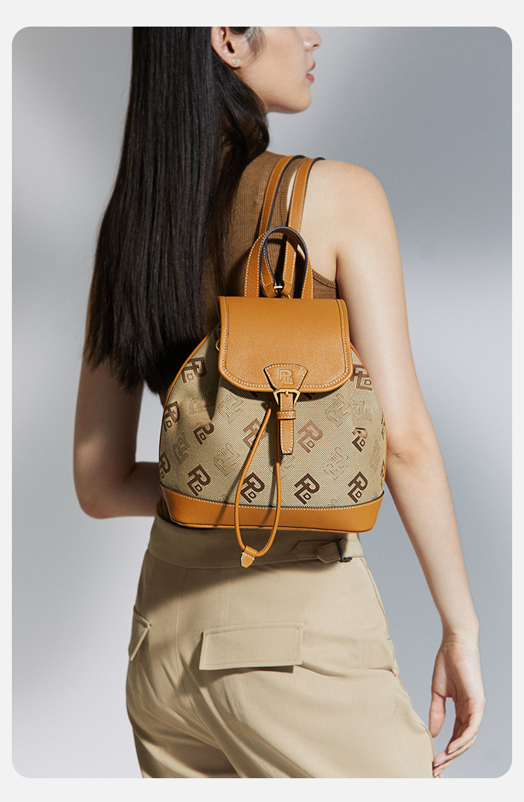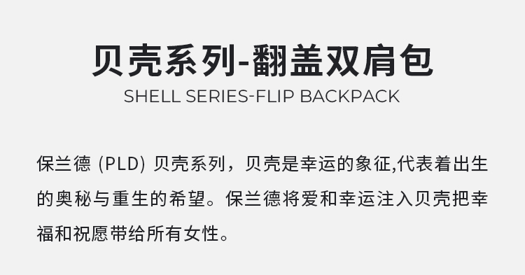 保兰德PLD东方雅奢贝壳系列翻盖双肩包织物拼接通勤必备女包