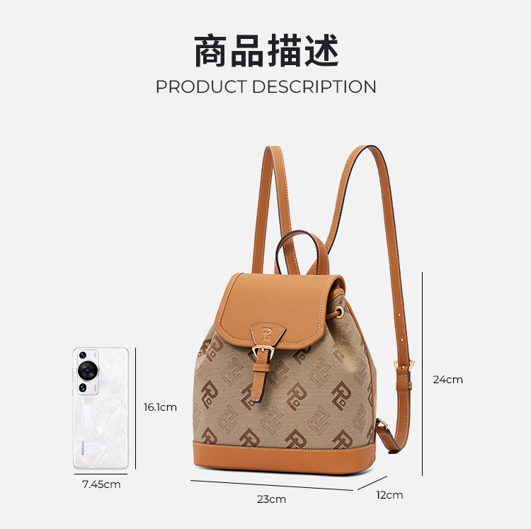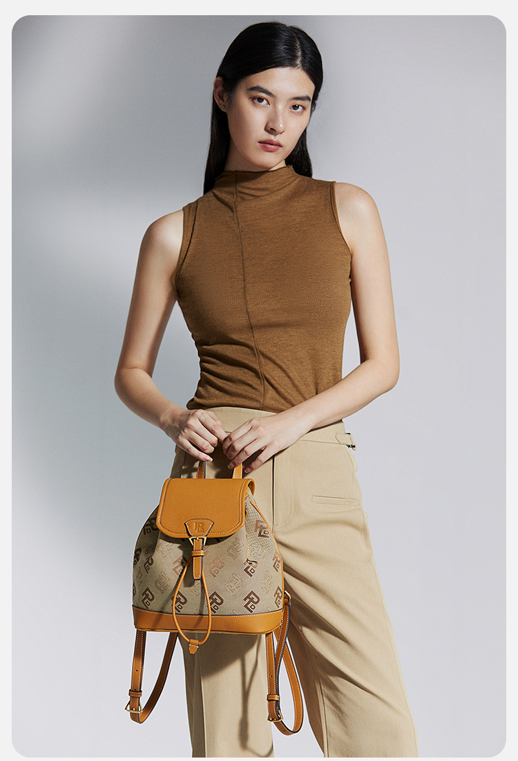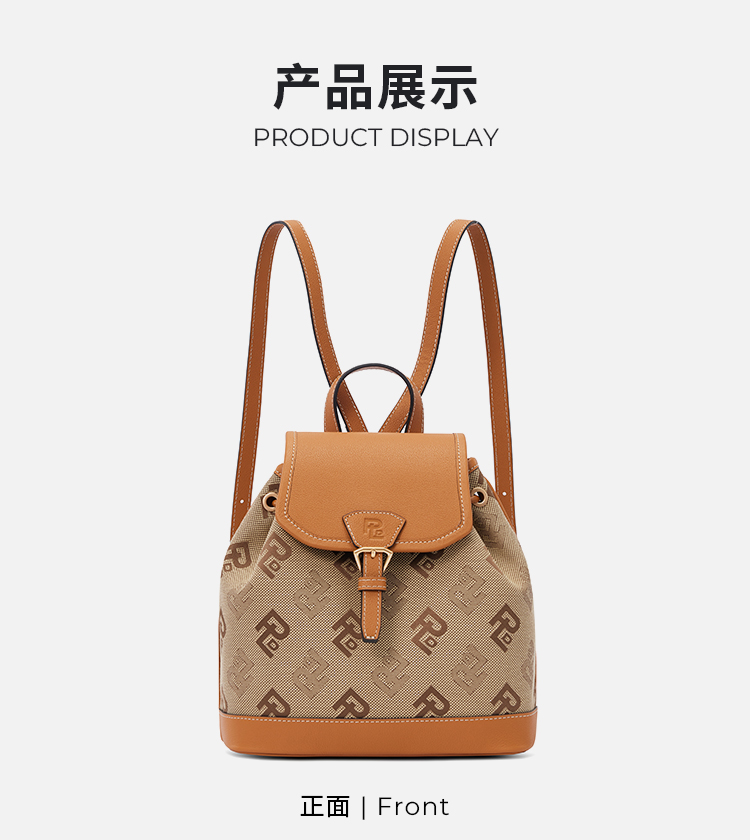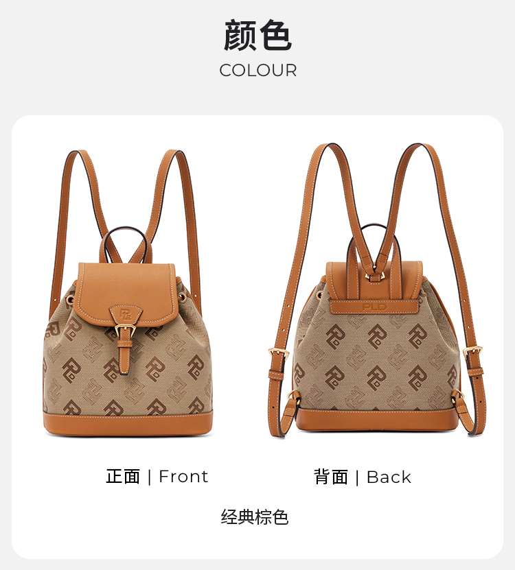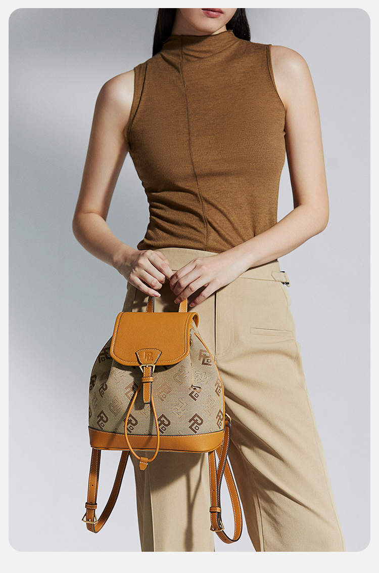保兰德PLD东方雅奢贝壳系列翻盖双肩包织物拼接通勤必备女包
