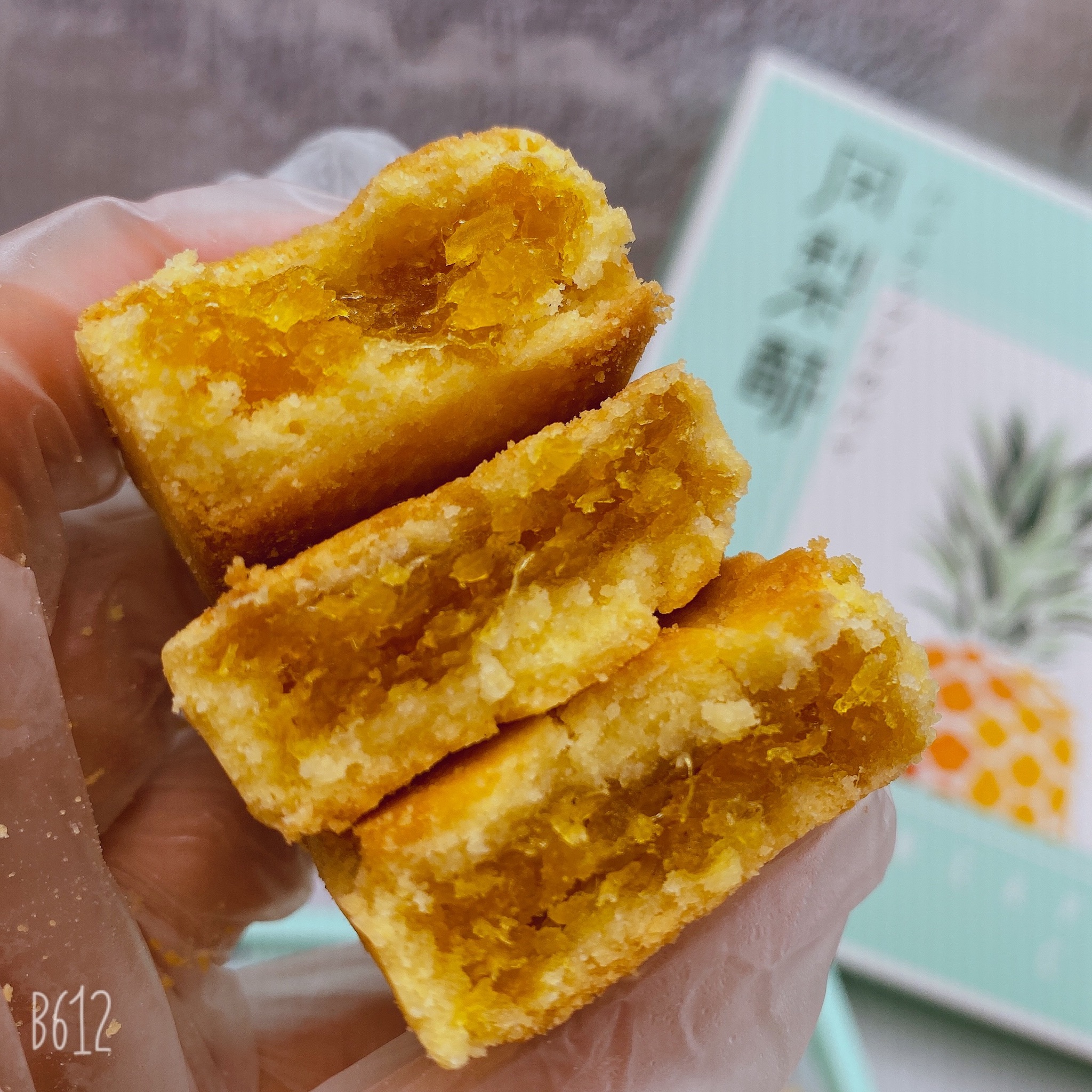 配料:凤梨馅(凤梨果肉、麦芽糖、白砂糖、葵花籽油、食盐)小麦粉、黄油、鸡蛋、奶粉、糖粉、食盐