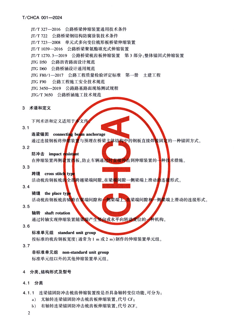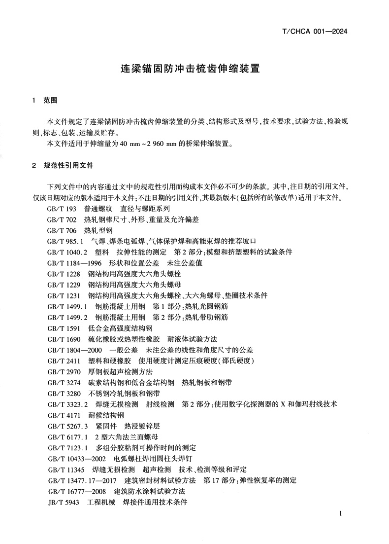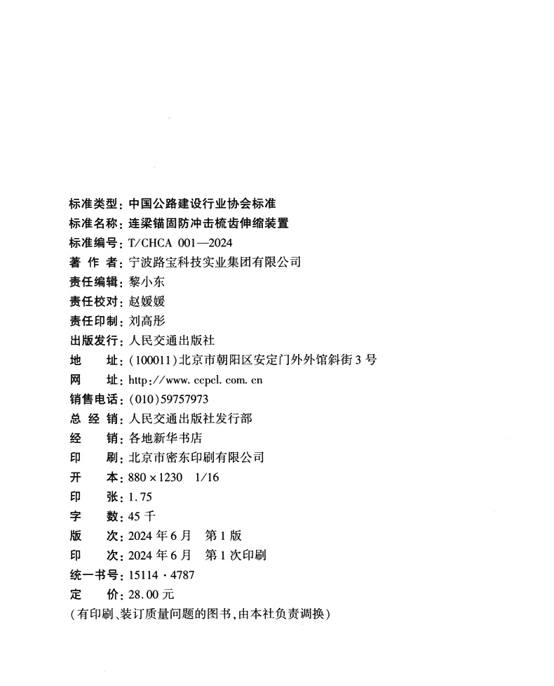 书名:连梁锚固防冲击梳齿伸缩装置(T/CHCA 001—2024)