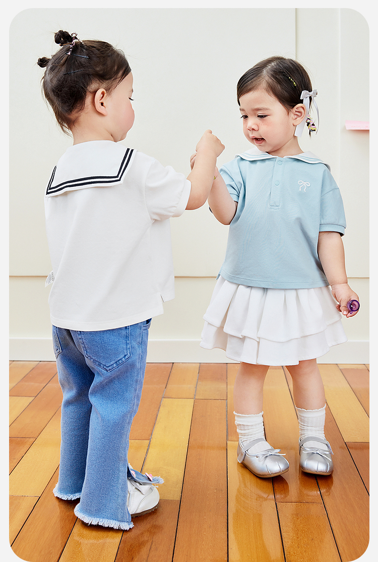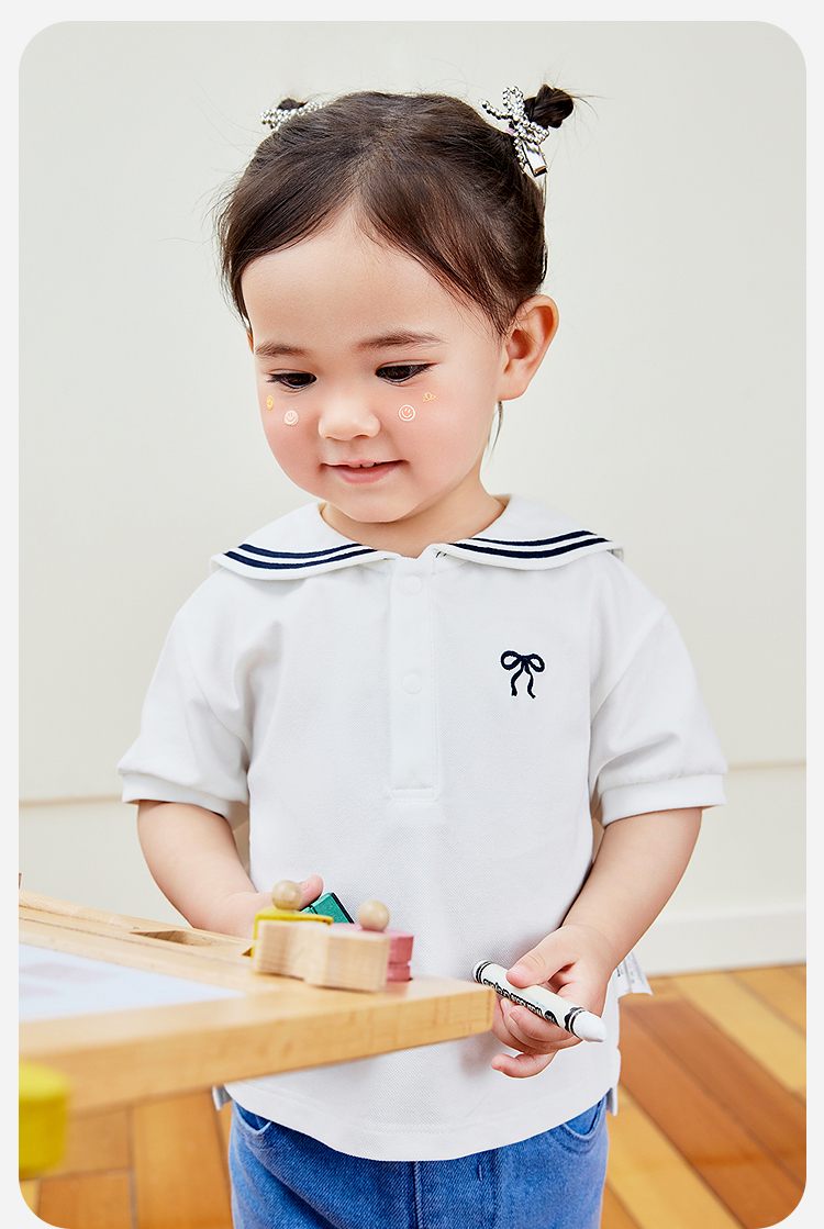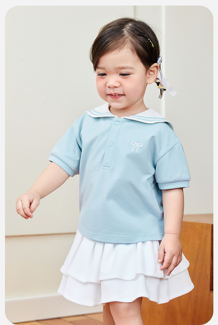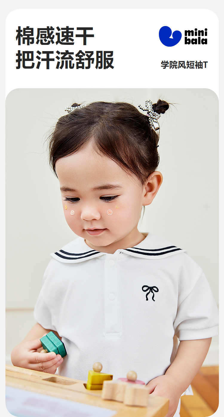 迷你巴拉女宝T恤夏凉感抑菌女童学院风速干短袖