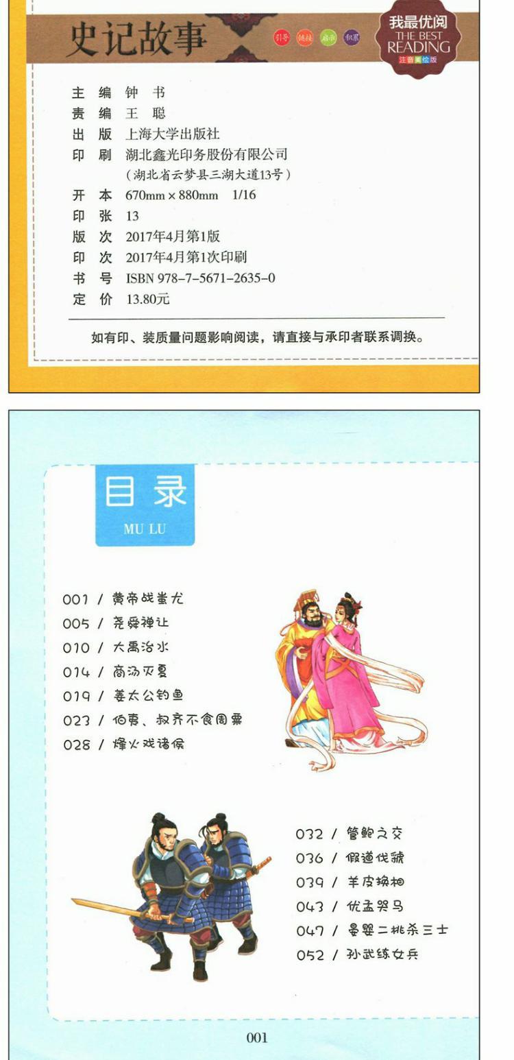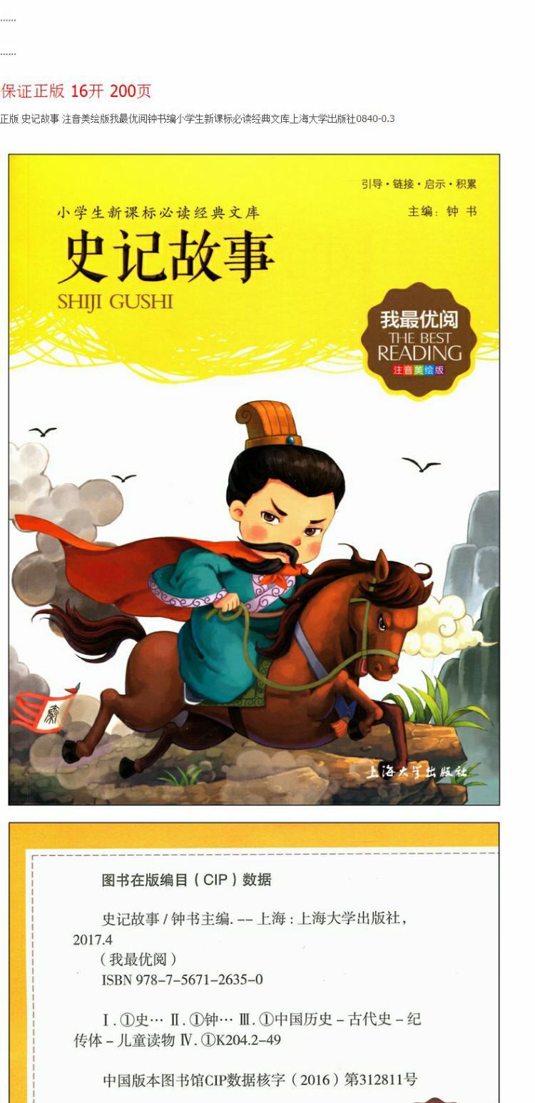 1-3年级适用 注音美绘版-史记故事 钟书正版少儿读物我优阅系列拼音彩图版史记故事 儿童文学课外读物小学生作文阅读写作能力