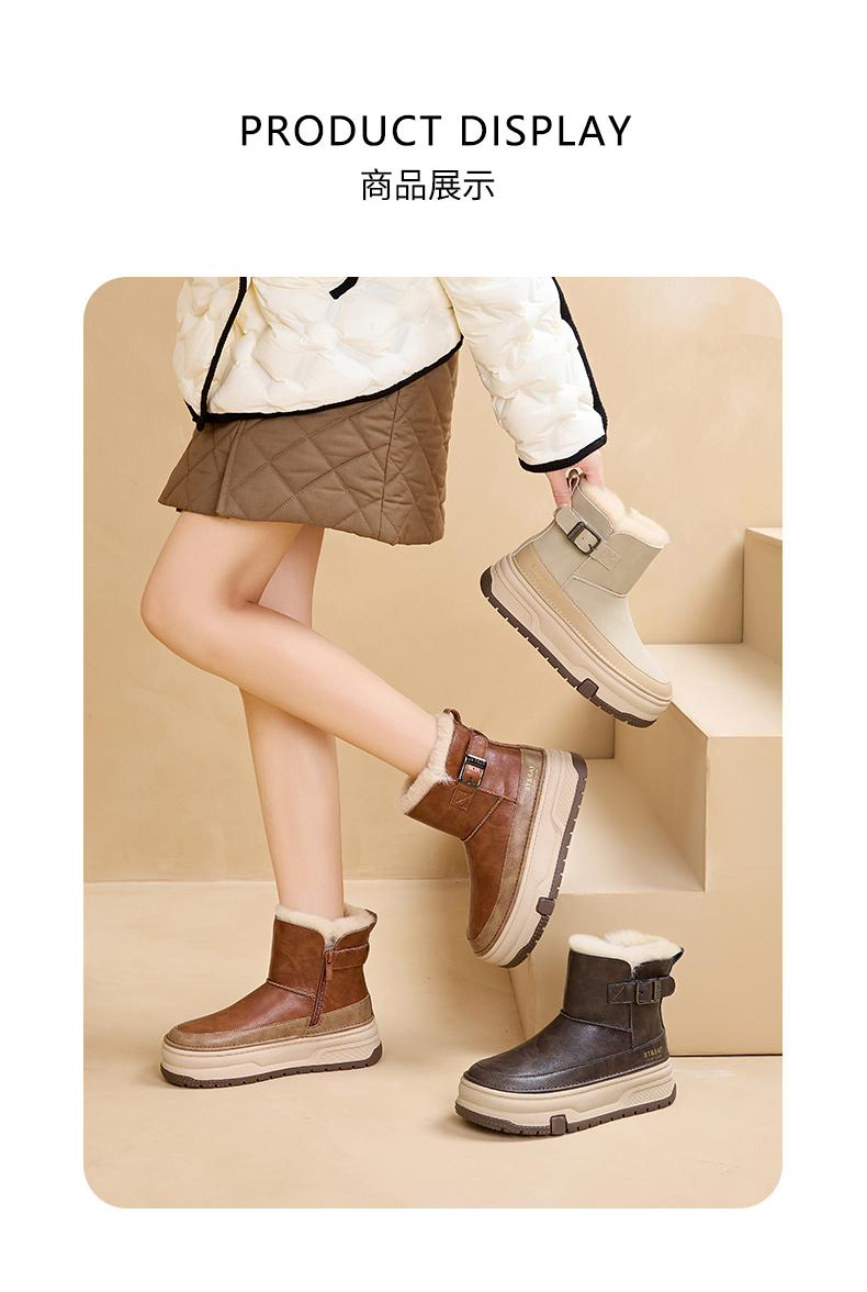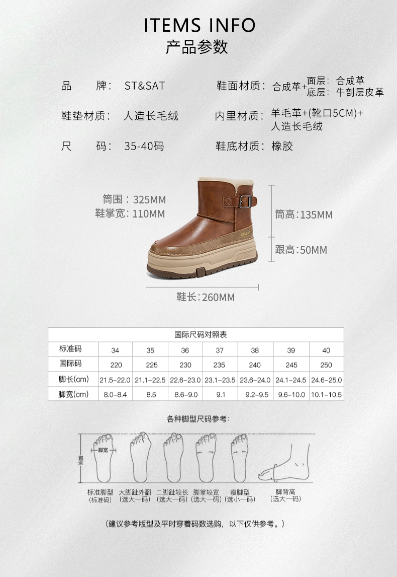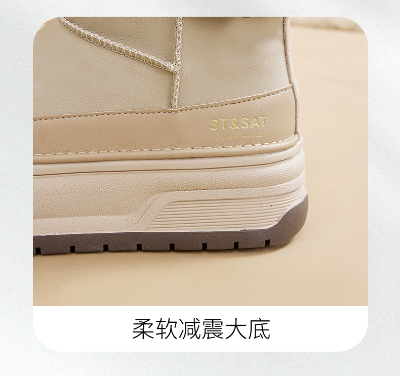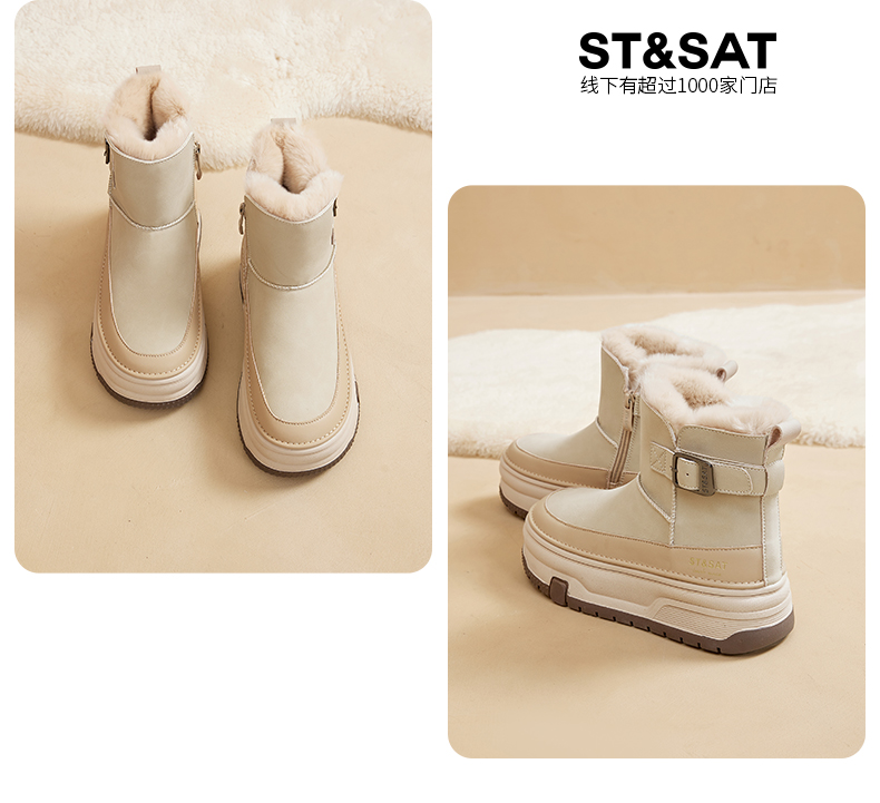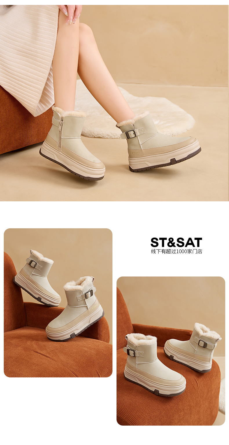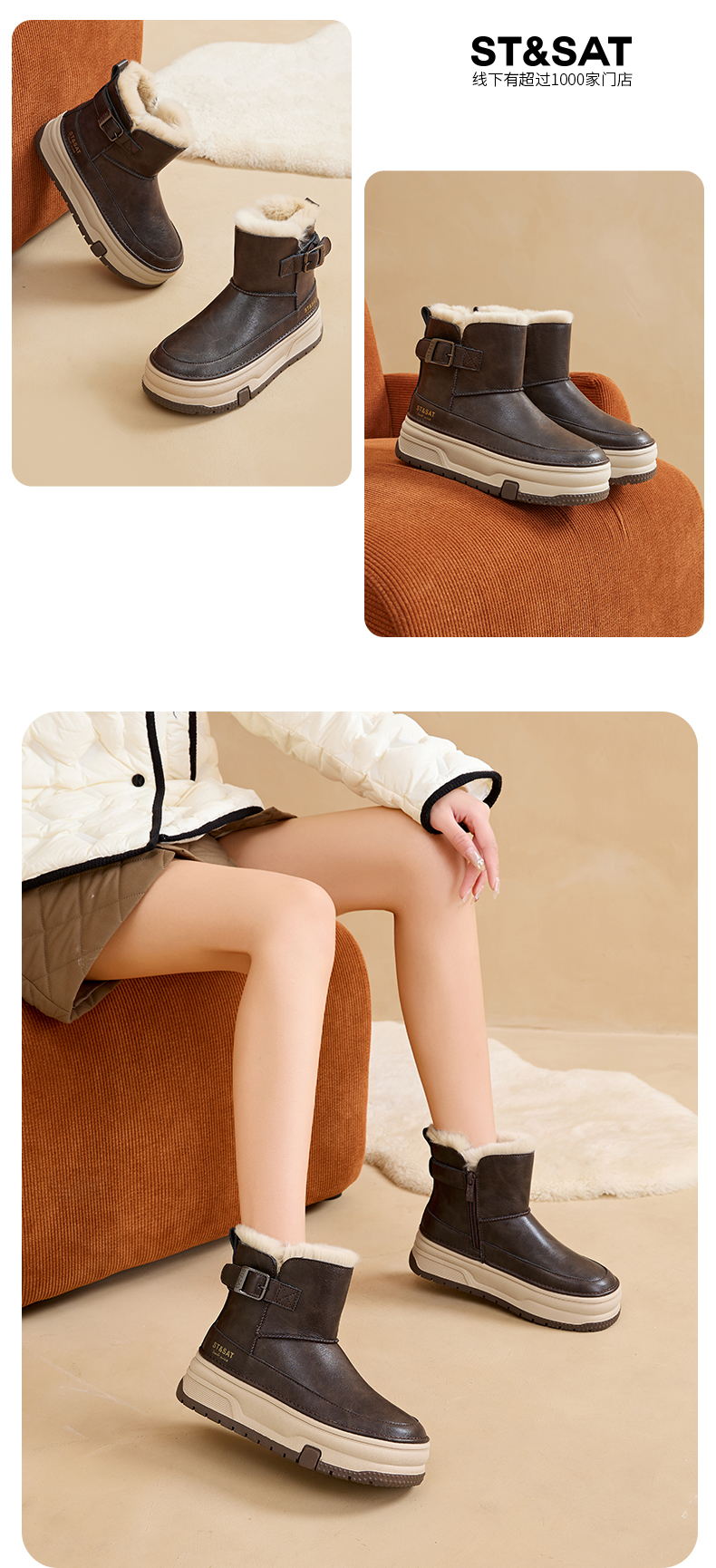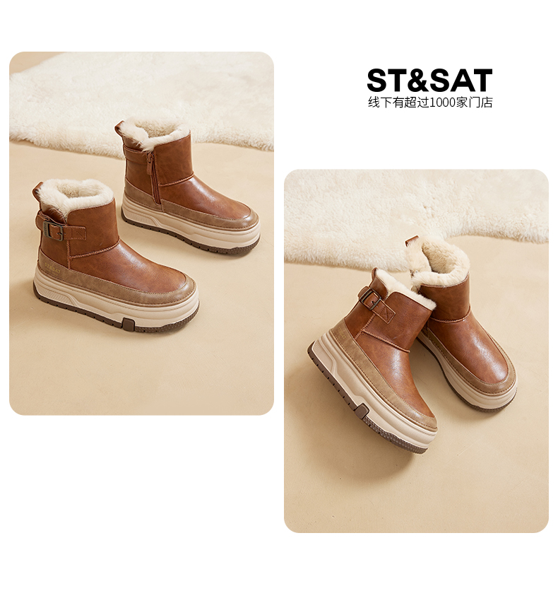 星期六复古皮面扣单厚底加绒雪地靴SSC1118Y68